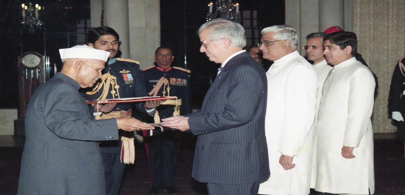 The High Commissioner-Designate of New Zealand to India, HE Mr. Adrian Simrock presenting his credentials to the President of India, Dr. Shankar Dayal Sharma at Rashtrapati Bhavan in New Delhi on May 24, 1997