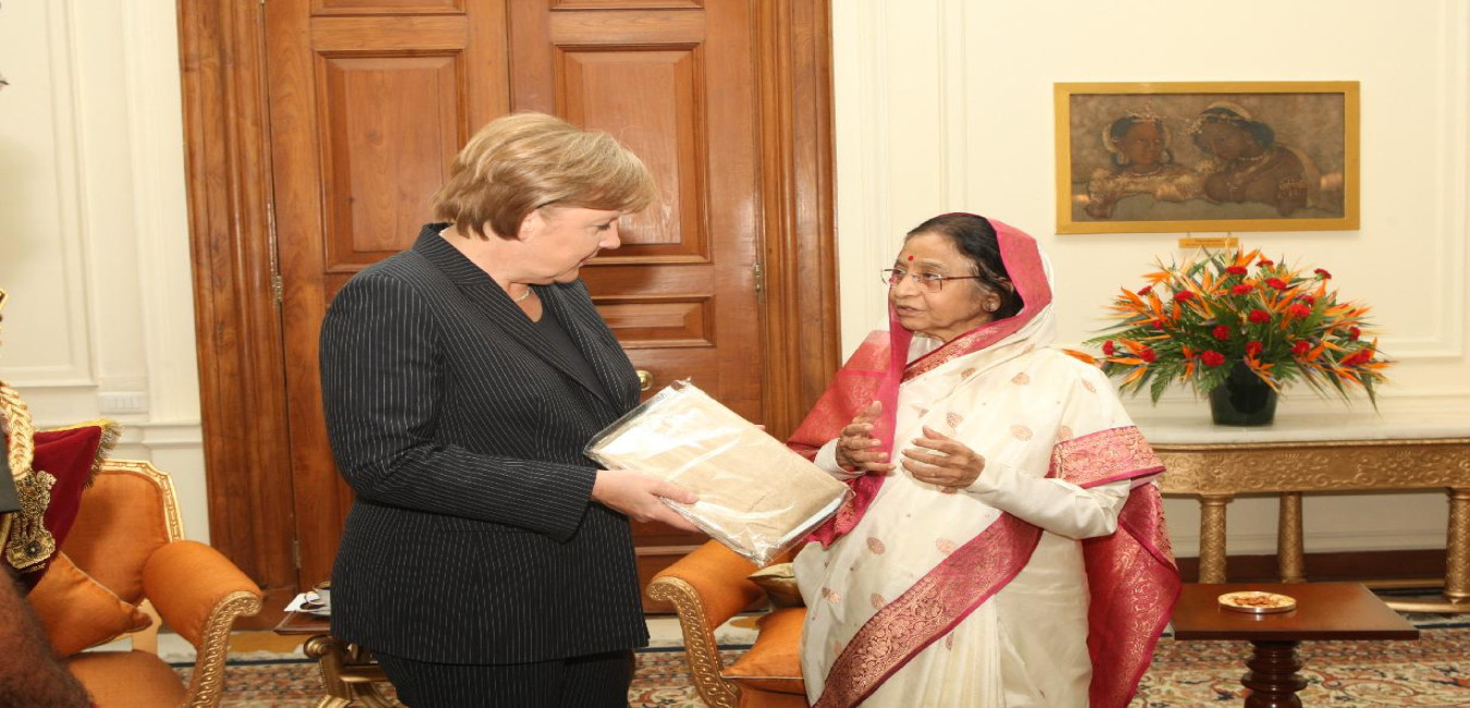 The Chancellor of the Federal Republic of Germany, HE Mrs Angela Dorothea Merkel calling on the President of India, Smt Pratibha Devisingh Patil at Rashtrapati Bhavan in New Delhi on May 31, 2011