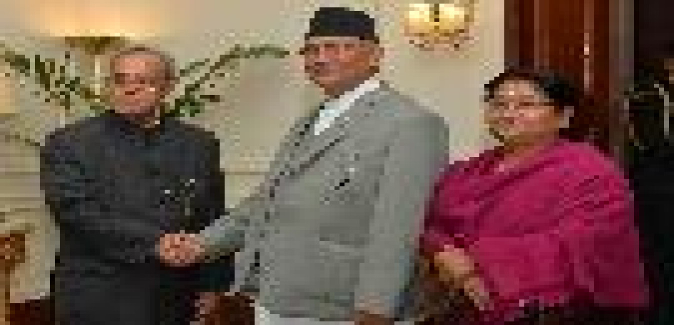 The Prime Minister of Nepal, Rt. Honourable, Mr. K.P. Sharma Oli calling on the President of India, Shri Pranab Mukherjee, at Rashtrapati Bhavan on February 20, 2016.