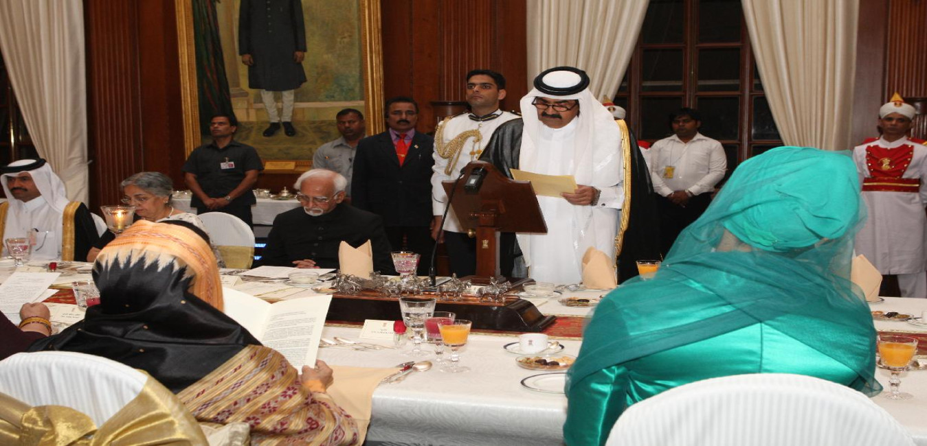 The President of India, Smt Pratibha Devisingh Patil at the Banquet Hosted in Honour of the Emir of the State of Qatar, His Highness Sheikh Hamad Bin Khalifa Al-Thani at Rashtrapati Bhavan in New Delhi on April 09, 2012