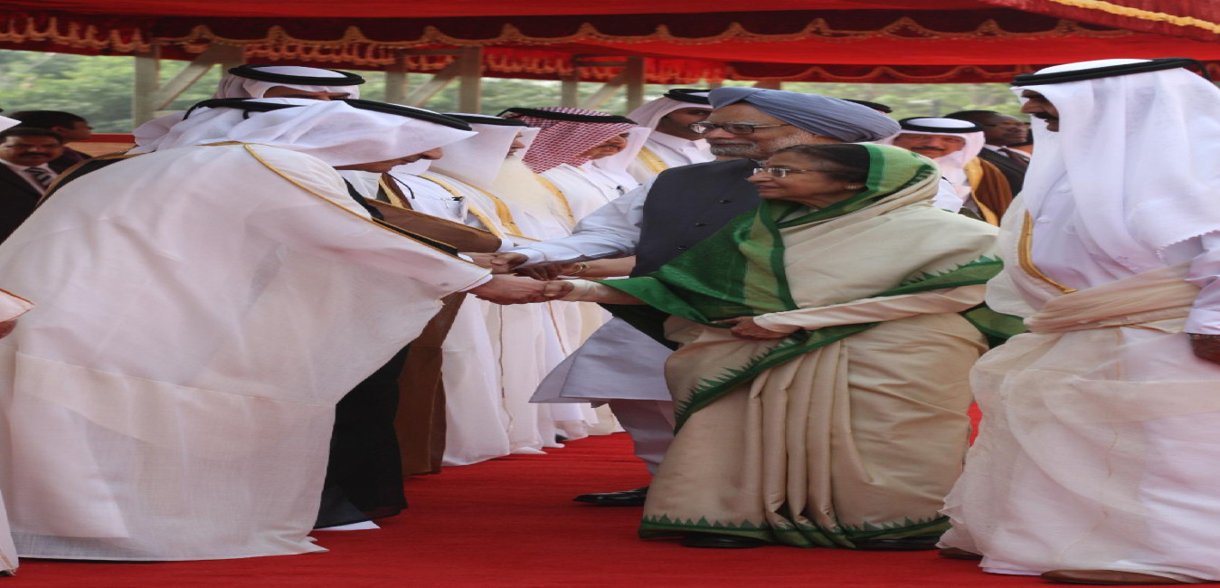 The Emir of the State of Qatar, His Highness Sheikh Hamad Bin Khalifa Al-Thani calling on the President of India, Smt Pratibha Devisingh Patil at Rashtrapati Bhavan in New Delhi on April 09, 2012