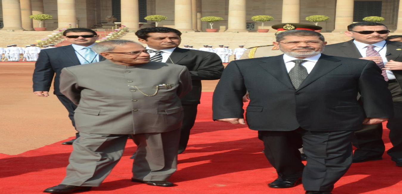 The President of India, Shri Pranab Mukherjee receives HE Dr Mohamed Morsy President of The Arab Republic of Egypt on March 18, 2013