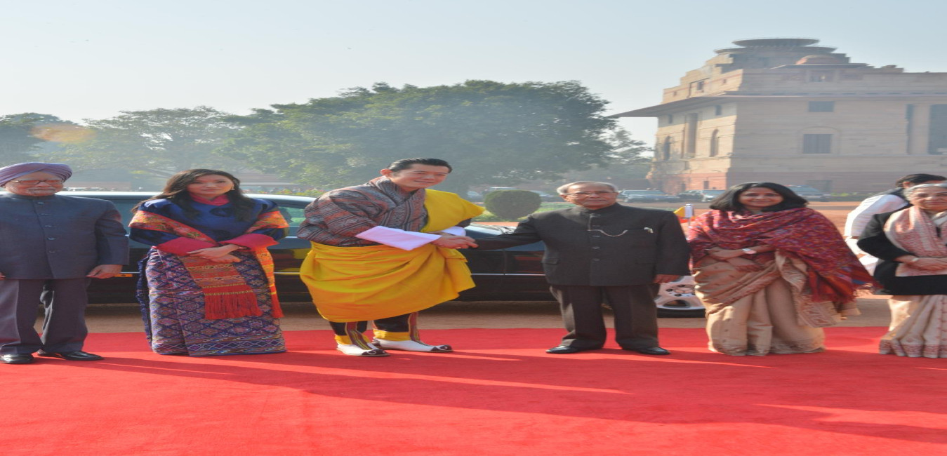 The President of India, Shri Pranab Mukherjee receives HE Jigme Khesar Namgyel Wangchuck King of Bhutan to India on January 30, 2013