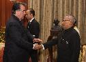 The President of India, Shri Pranab Mukherjee receives HE Mr Francois Hollande President of The Republic of France and Ms Valerie Trierweiler on February 14, 2013