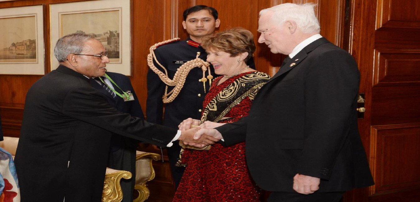 The President of India, Shri Pranab Mukherjee at the Banquet Hosted in Honour of the General of Canada, HE The Rt Hon David Johnston at Rashtrapati Bhavan in New Delhi on Feb 24, 2014