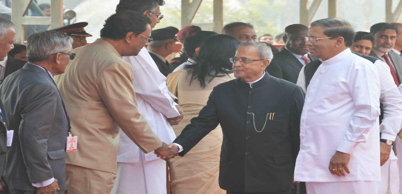 The President of the Democratic Socialist Republic of Sri Lanka, HE Mr Maithripala Sirisena, calling on the President of India, Shri Pranab Mukherjee, at Rashtrapati Bhavan, in New Delhi on Feb 16, 2015.