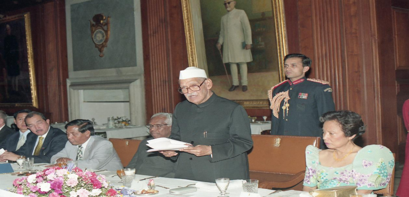 The President of India, Dr. Shankar Dayal Sharma hosting a Banquet in honour of the President of the Republic of Peru, Mr. Alberto Fujimori, at Rashtrapati Bhavan in New Delhi on May 26, 1997
