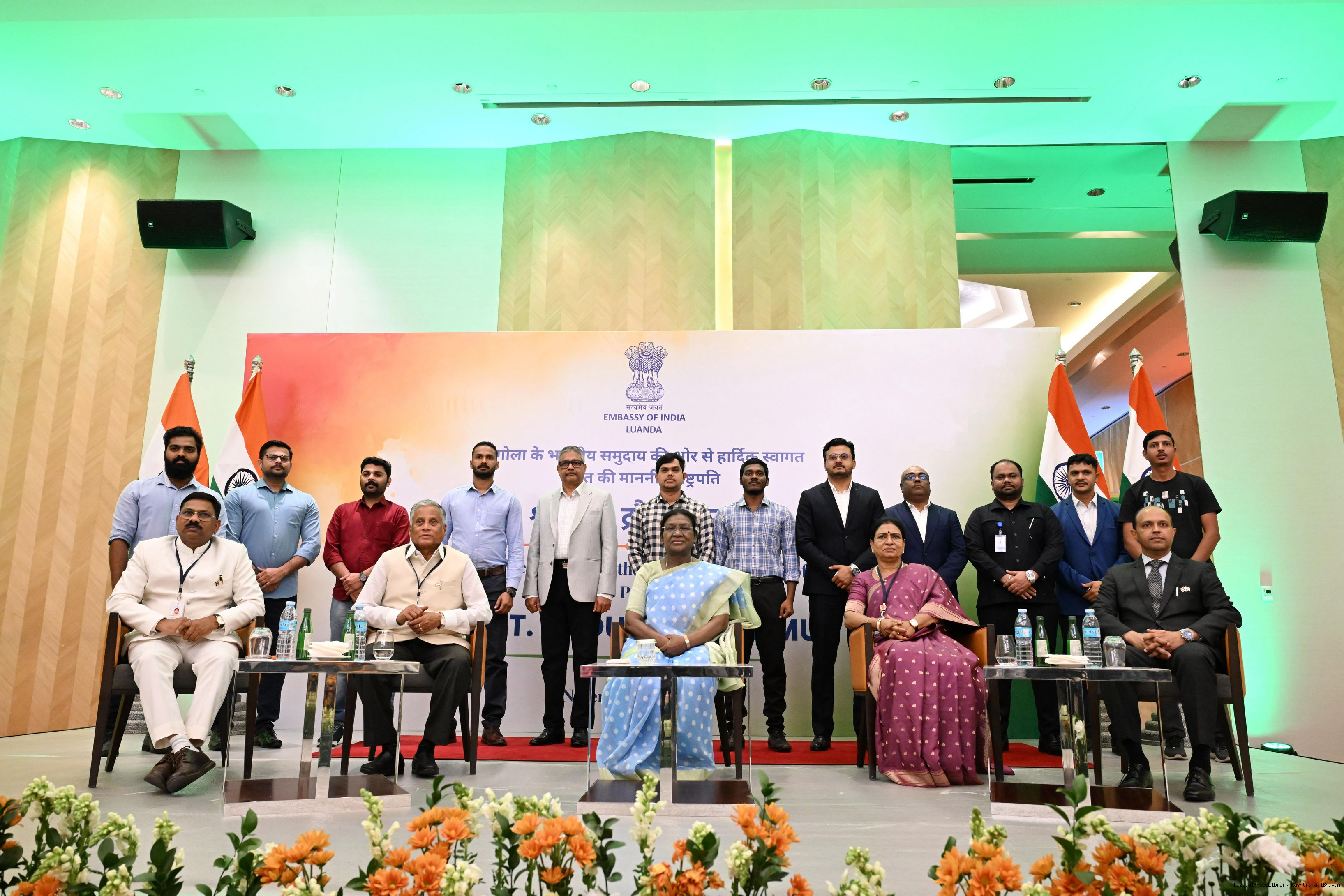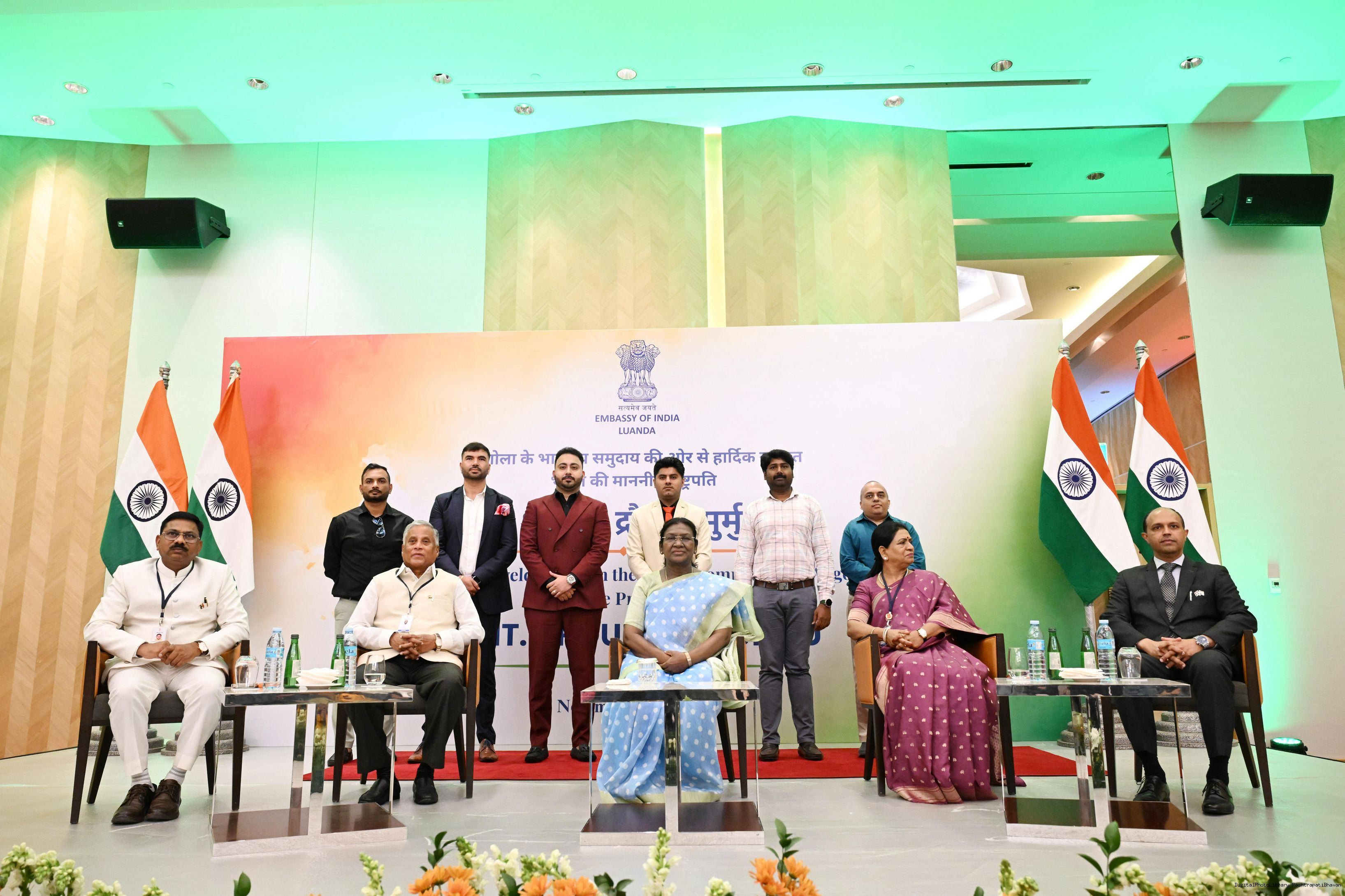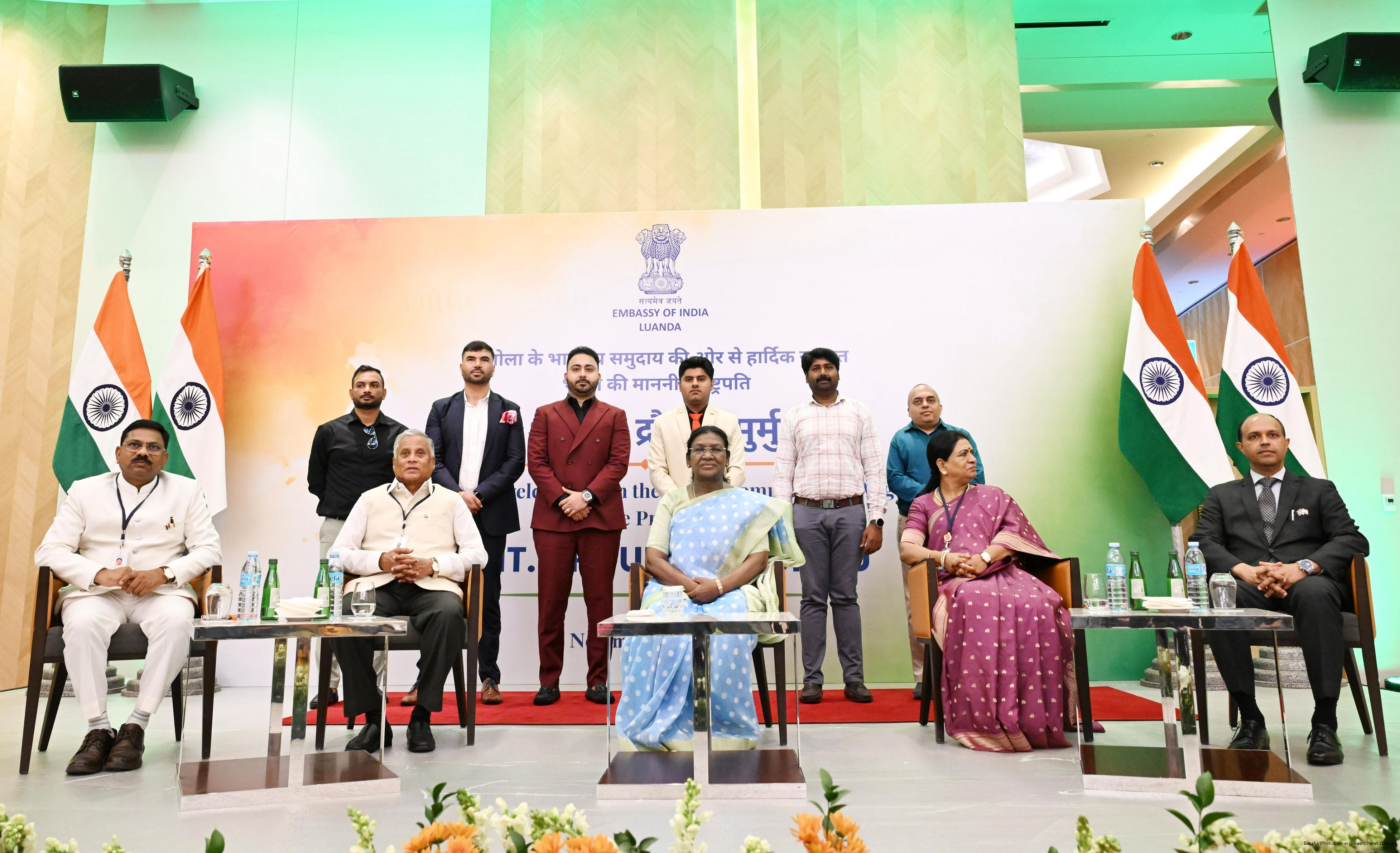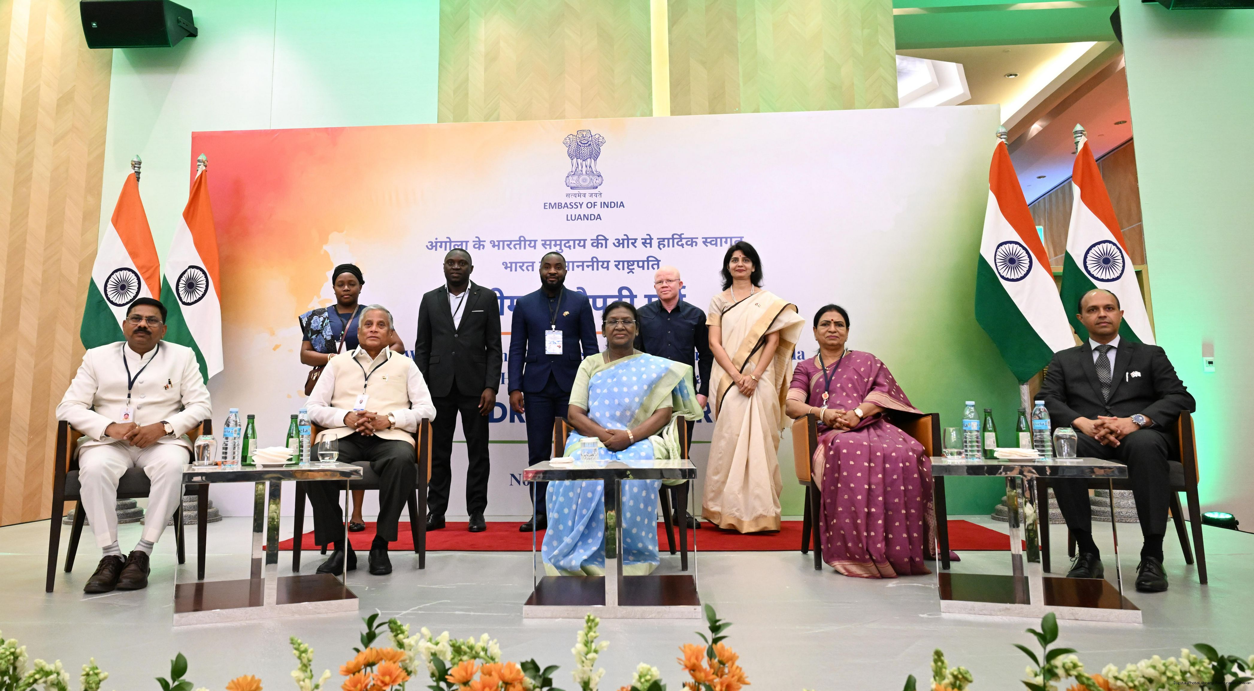 | Caption: | The President of India, Smt. Droupadi Murmu addressed the members of the Indian Community at a Reception hosted by the Ambassador of India to Angola at Luanda on November 10, 2025. |