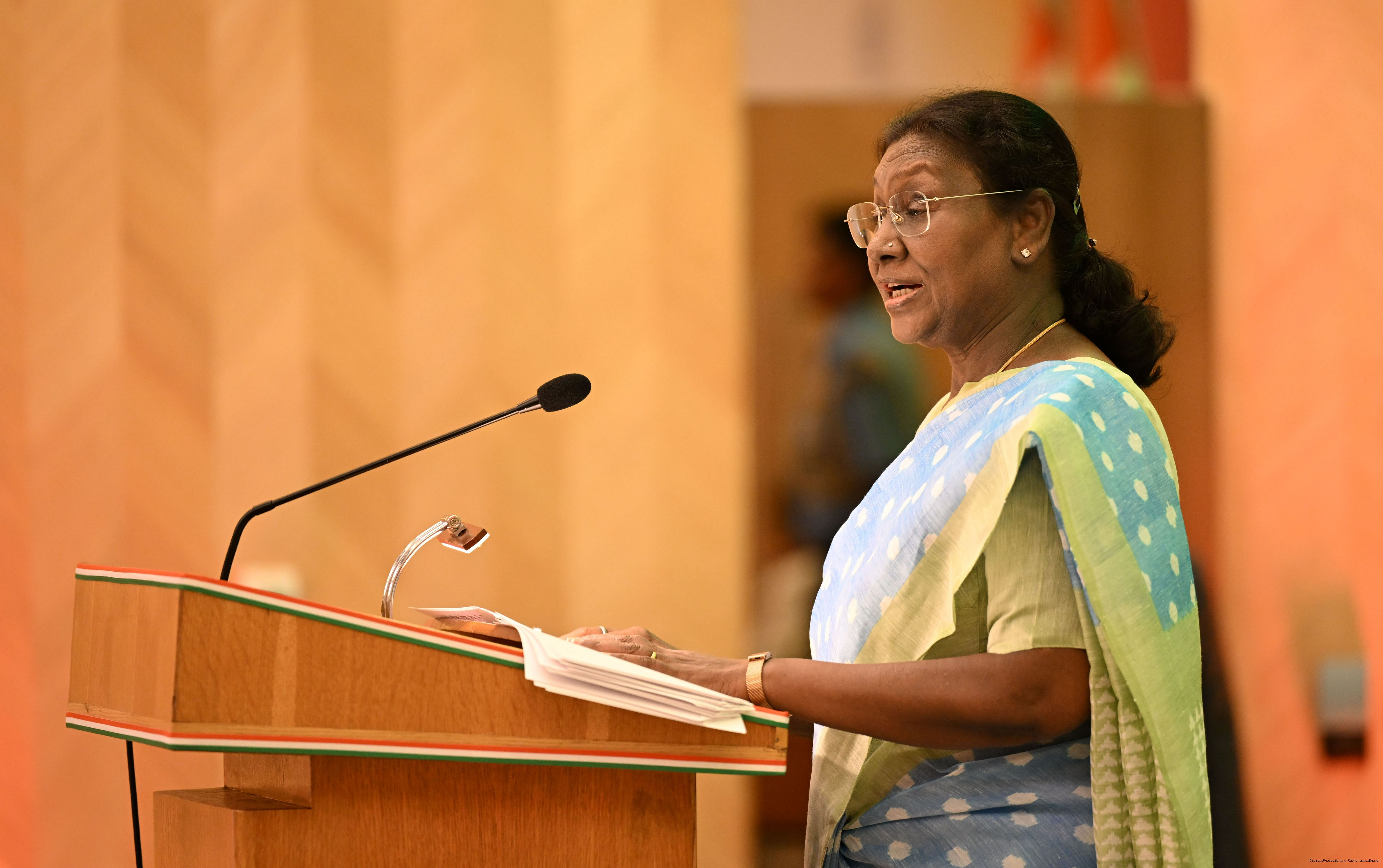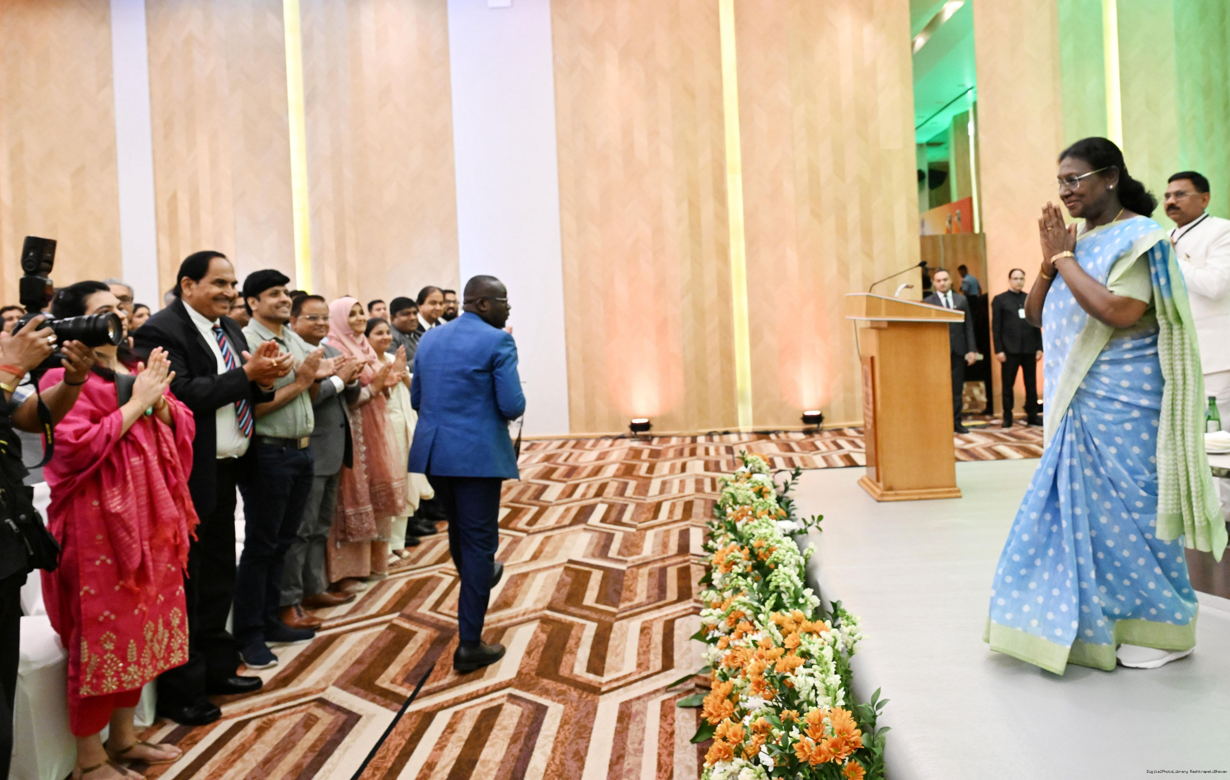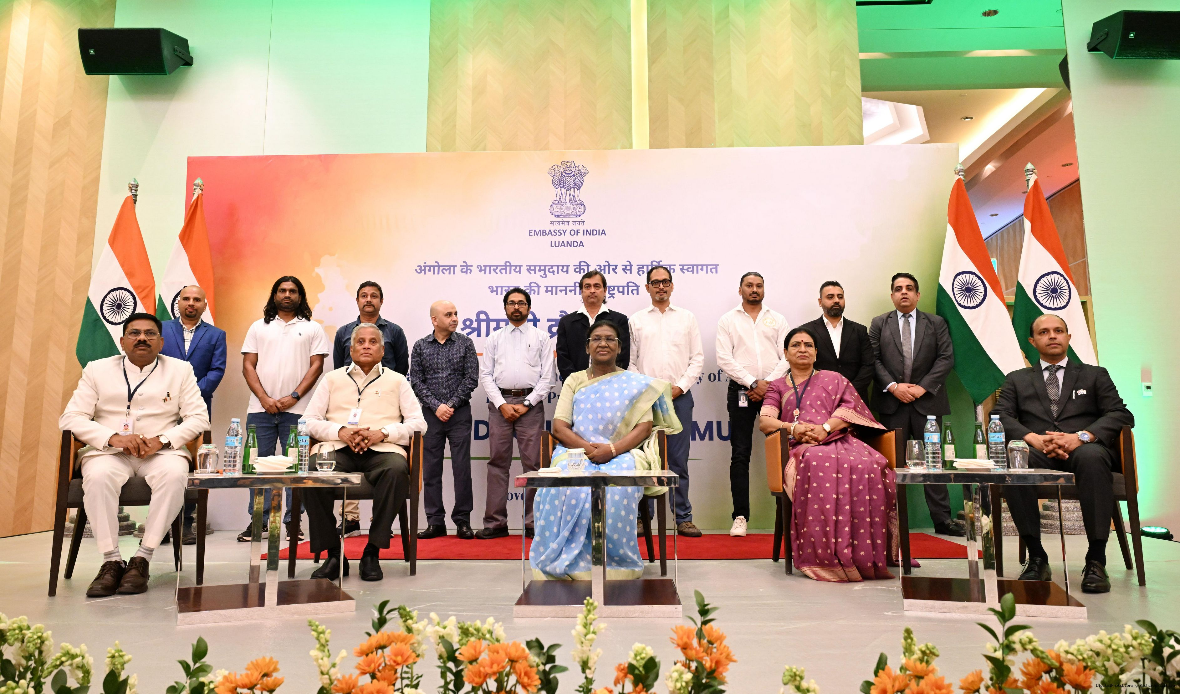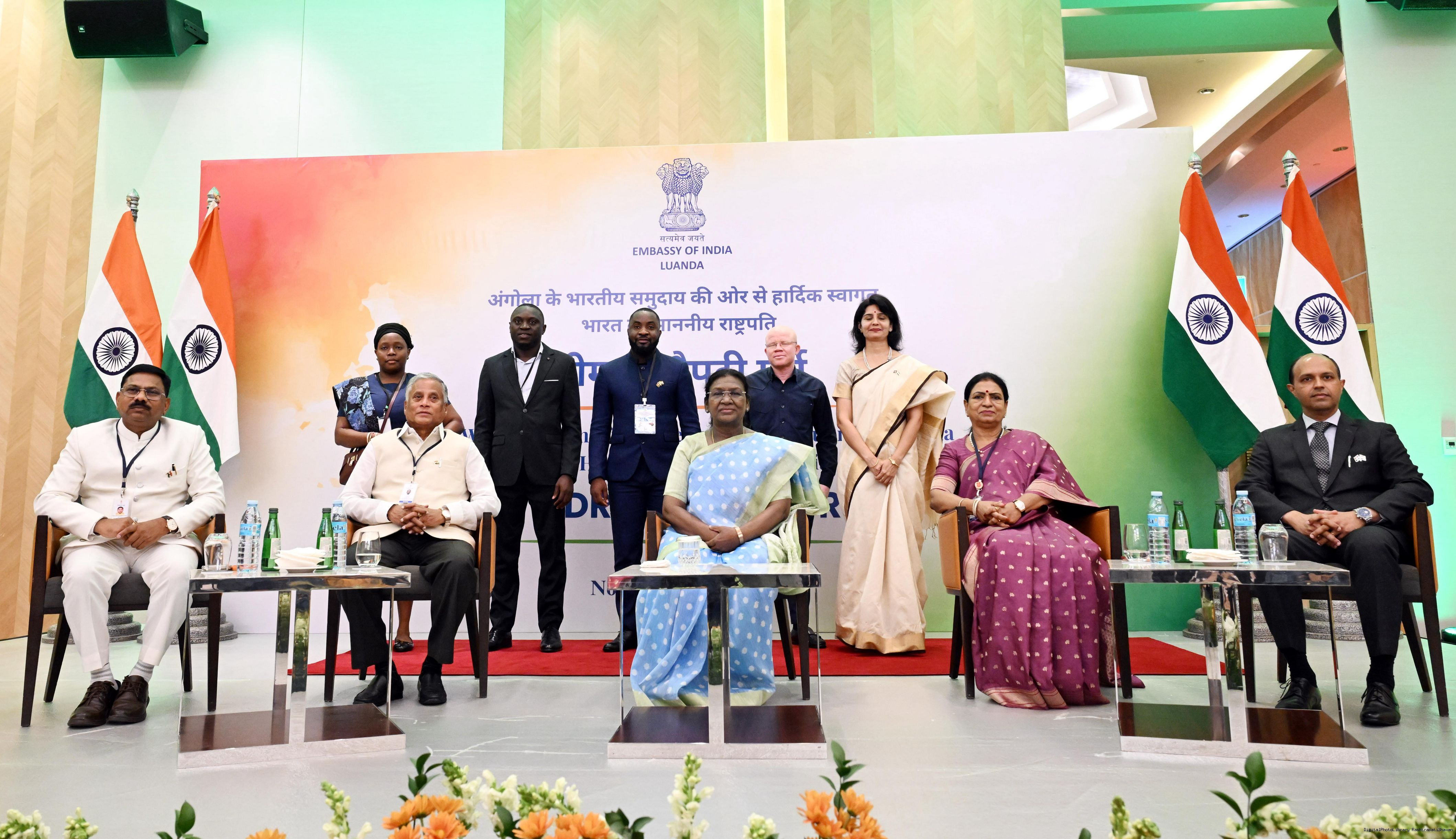 | Caption: | The President of India, Smt. Droupadi Murmu addressed the members of the Indian Community at a Reception hosted by the Ambassador of India to Angola at Luanda on November 10, 2025. |
