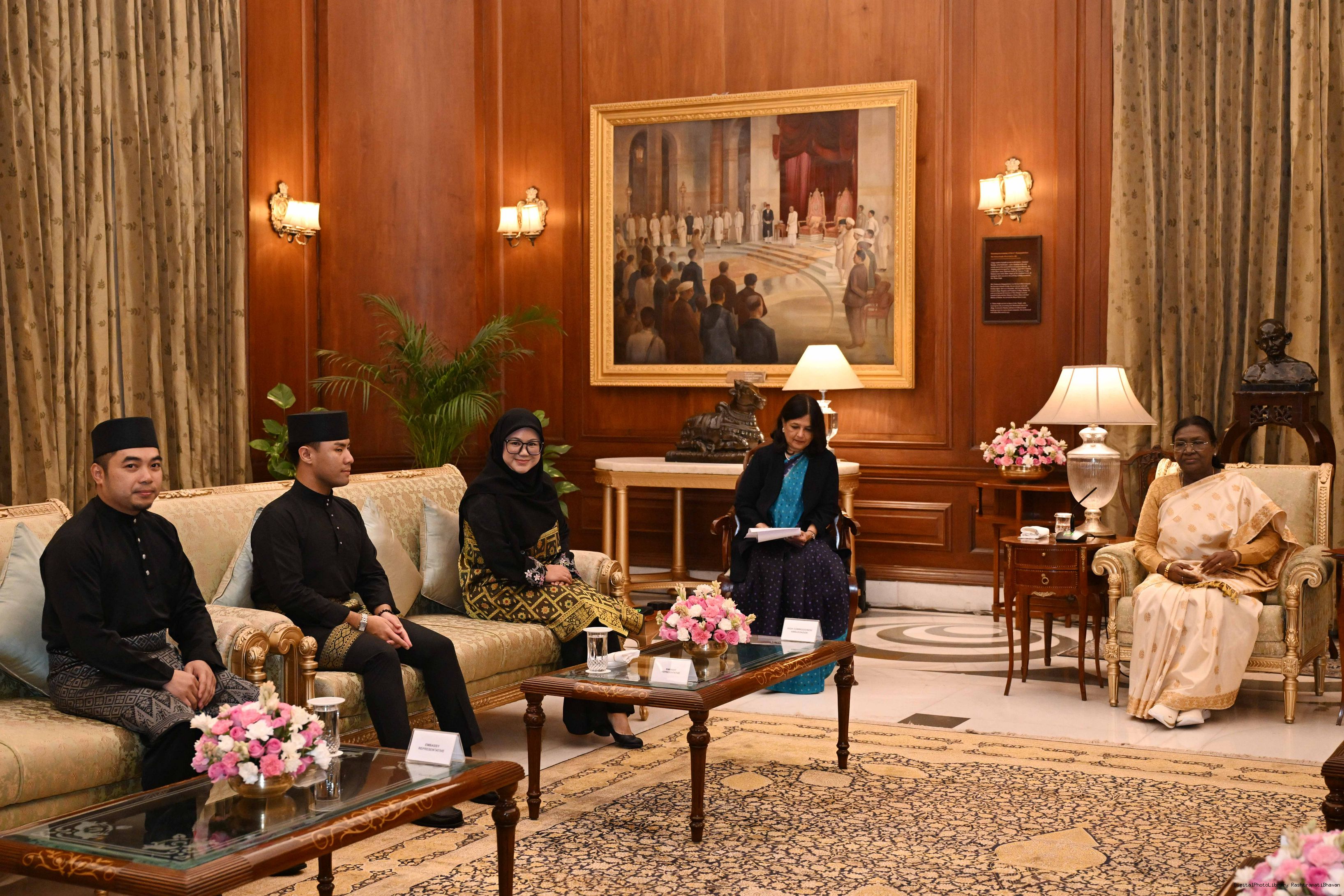 | Caption: | The High Commissioner designate of Brunei Darusslam, Mrs. Siti Arnyfaria Jaji Mohd. Jaini presenting her credentials to the President of India, Smt Droupadi Murmu at Rashtrapati Bhavan in New Delhi on December 15, 2025. |