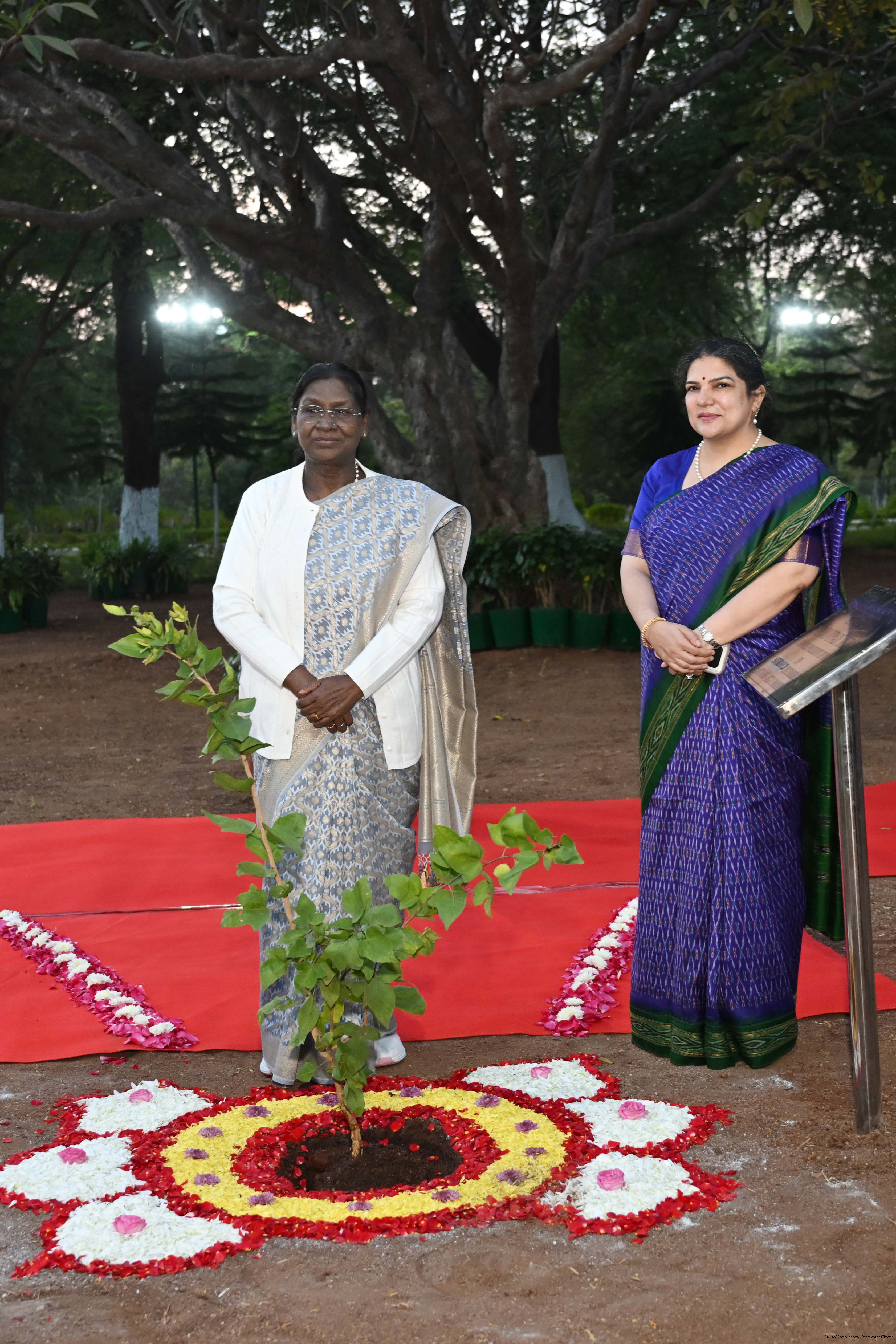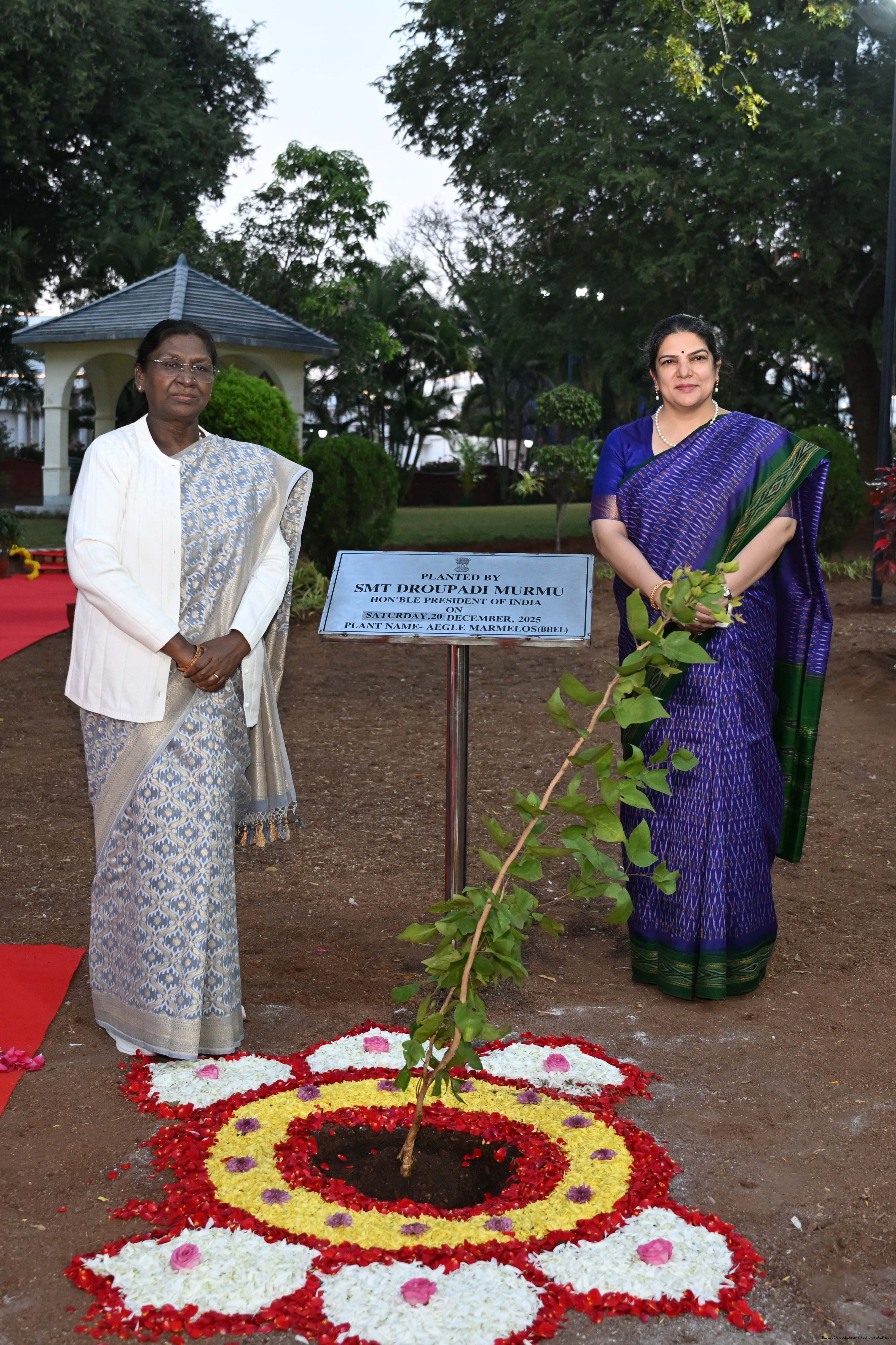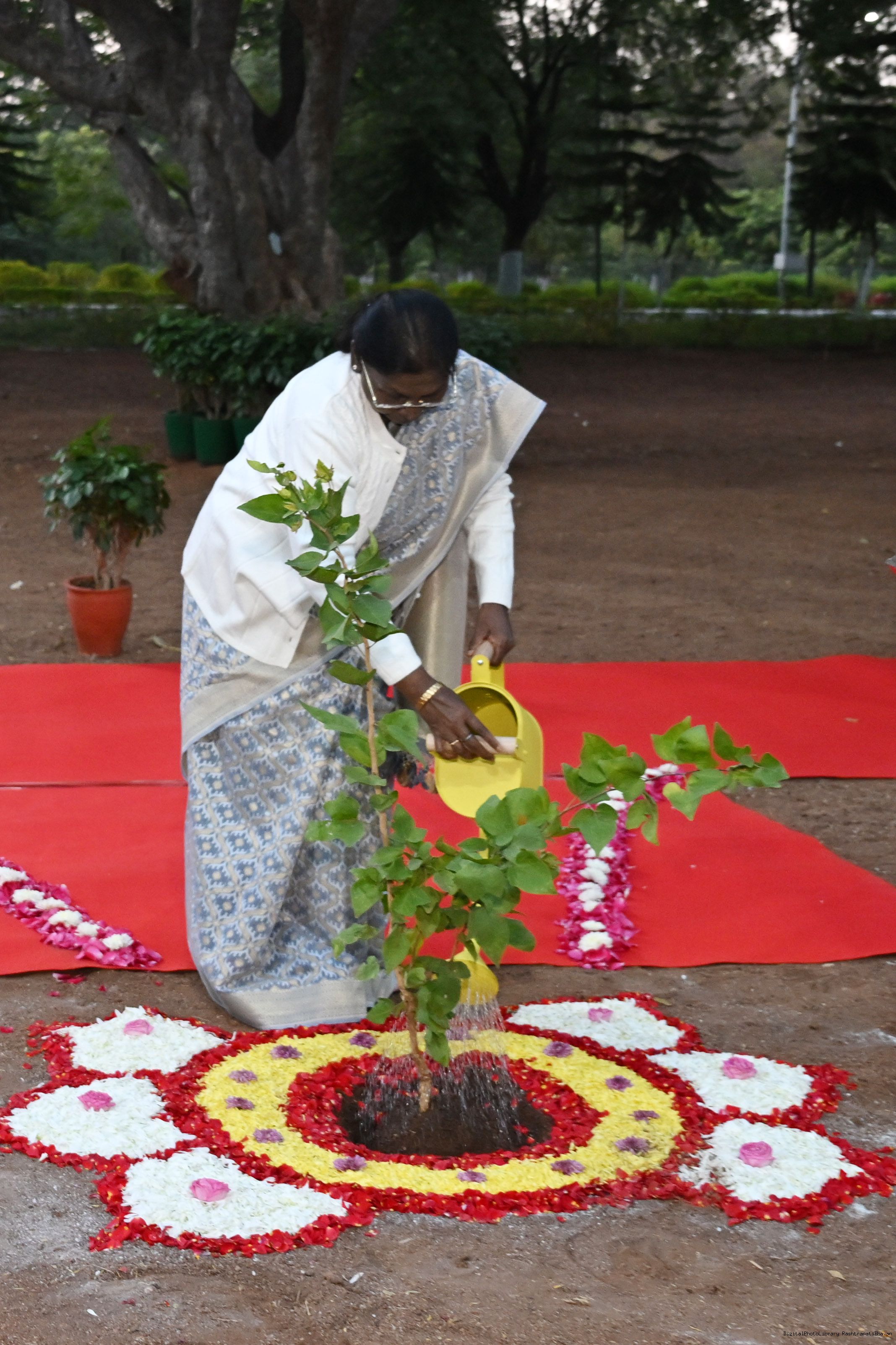 | Caption: | The President of India Smt Droupadi Murmu planting a Tree at Rashtrapati Nilayam, visited to Nikunj Rashtrapati Nilayam and inaugurated of Multi Purpose Hall, Rashtrapati Nilayam at Hyderabad December 20, 2025. |