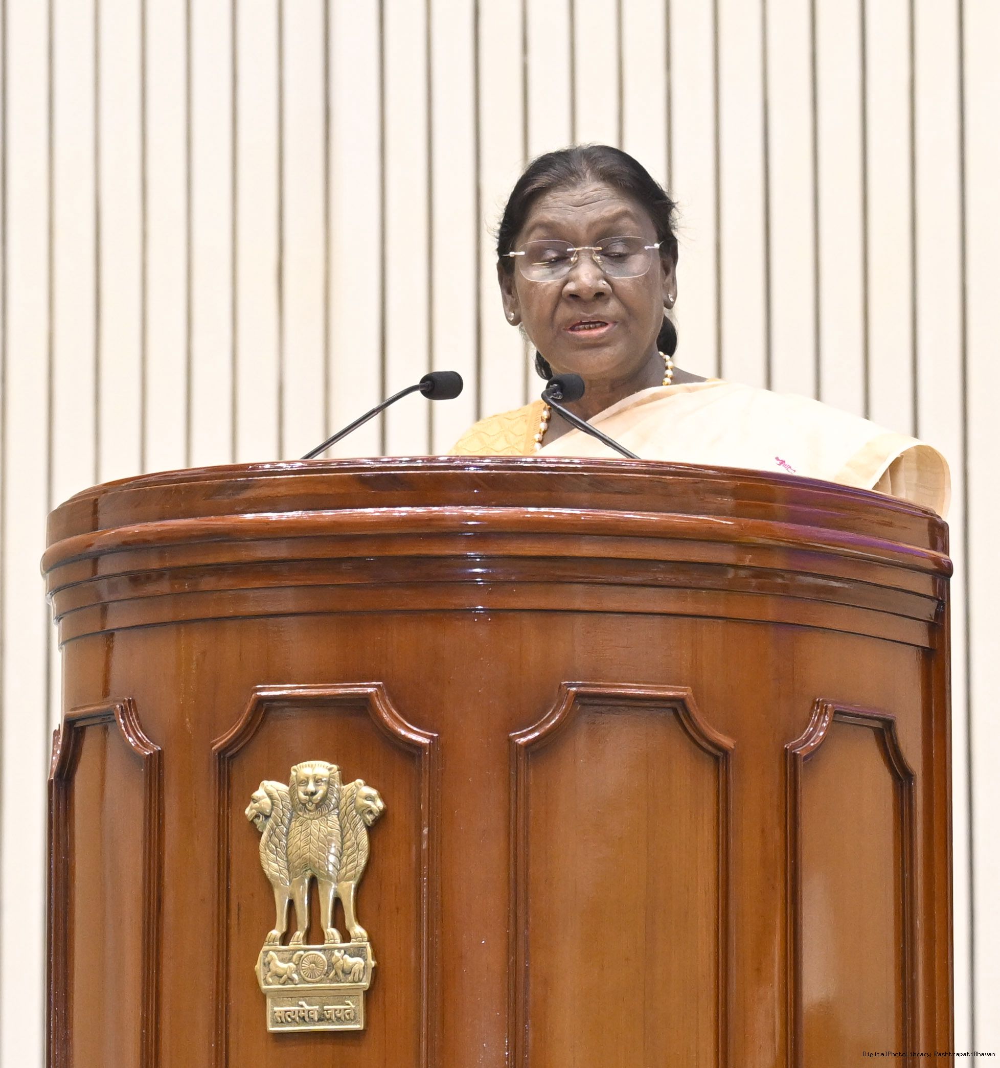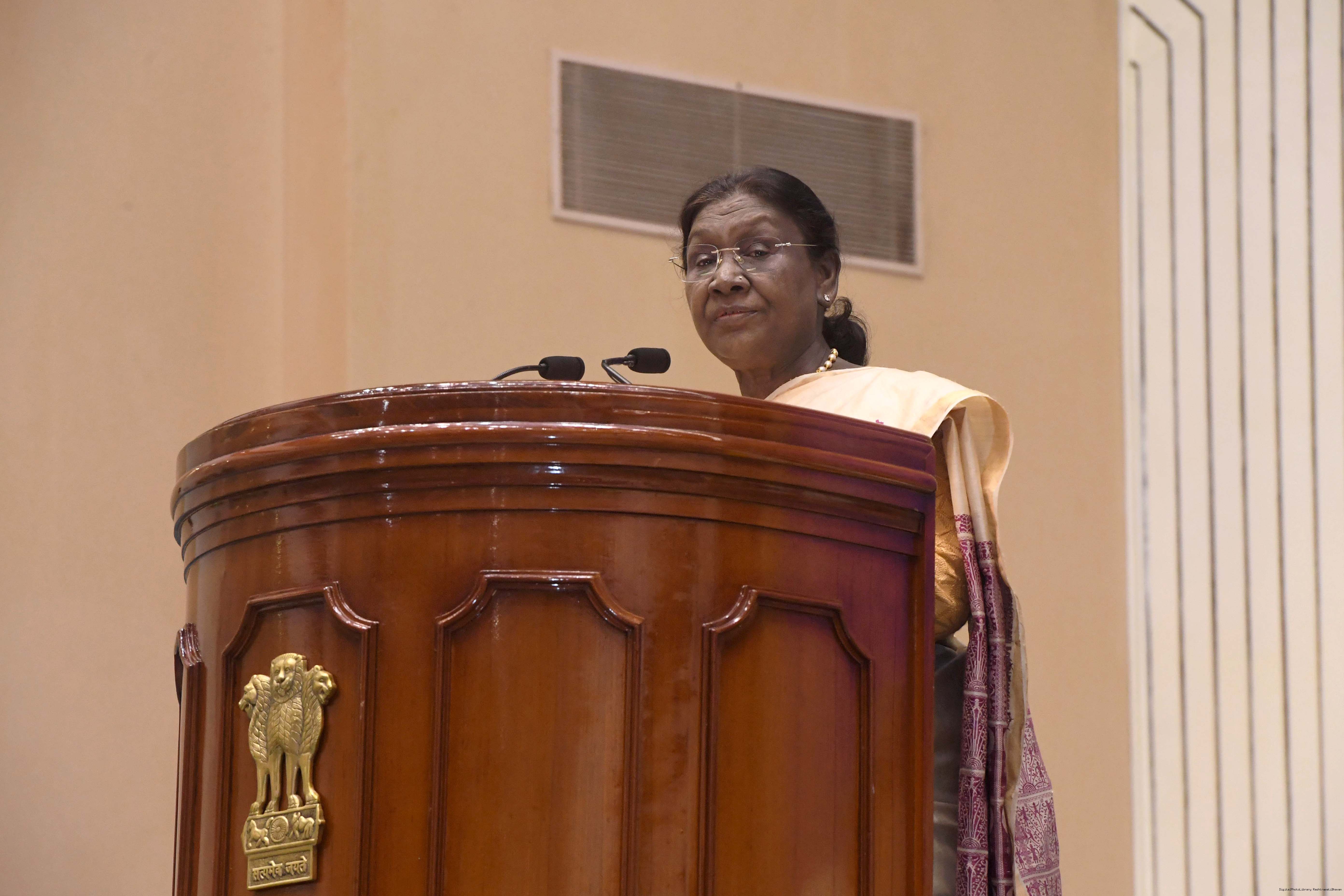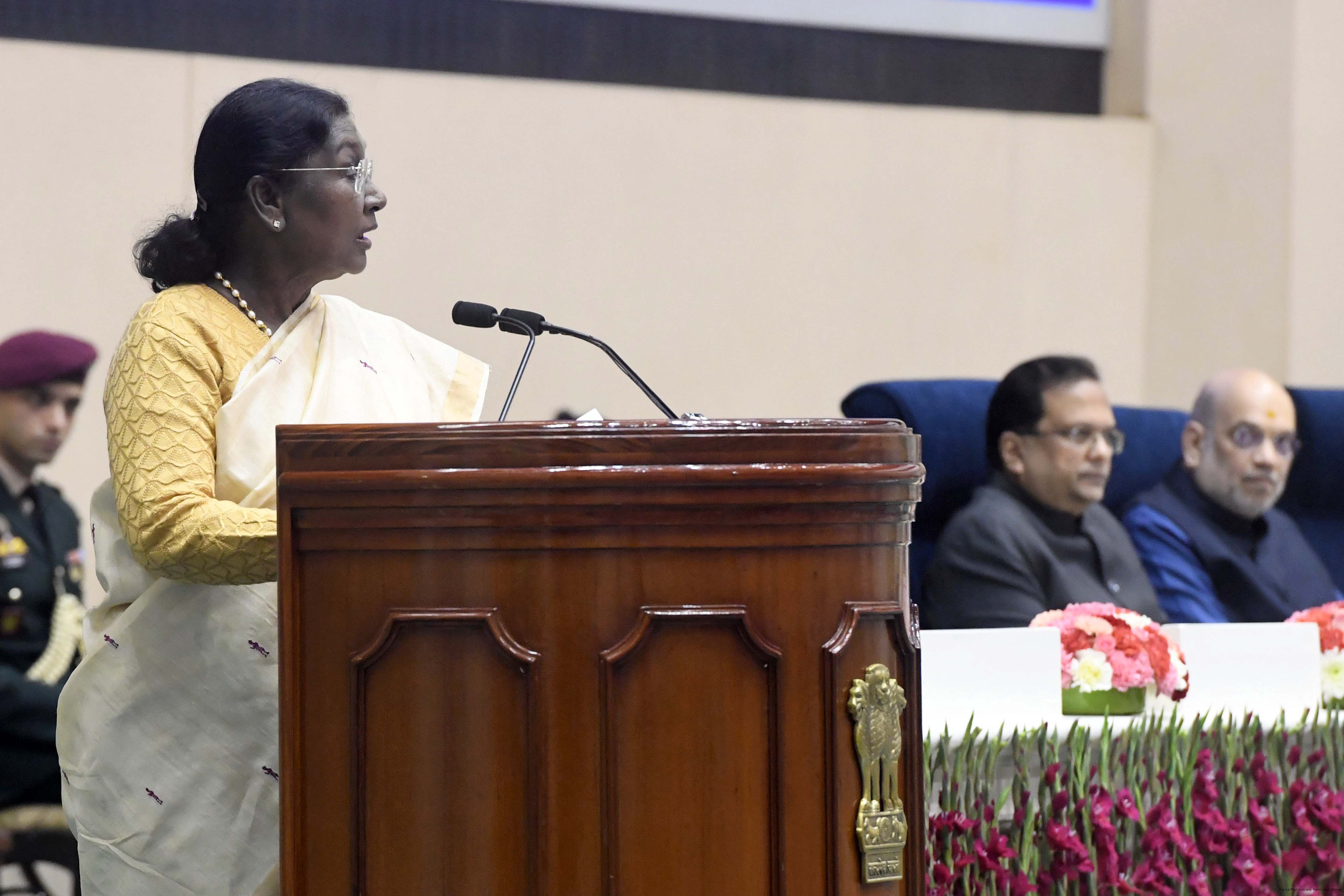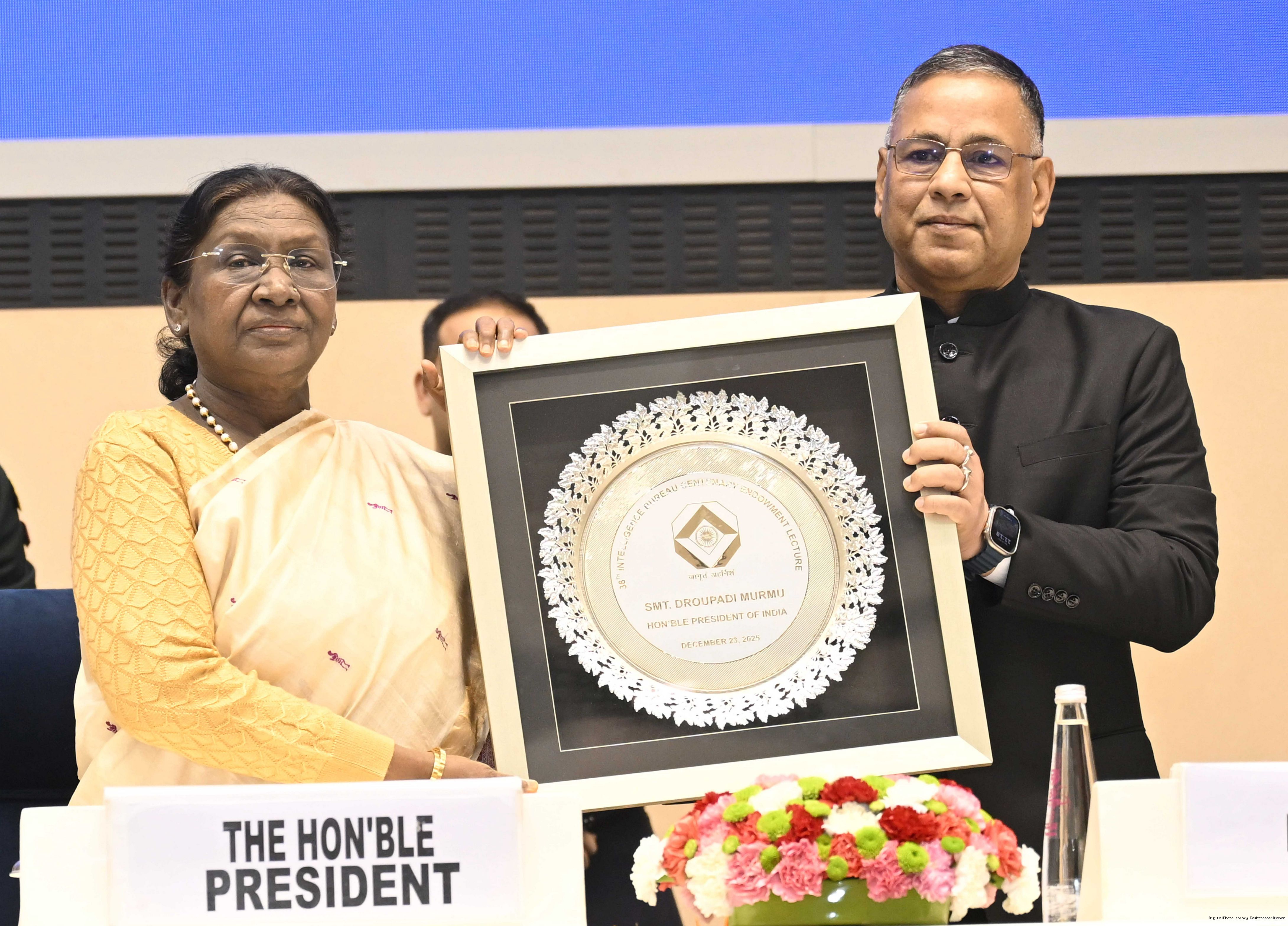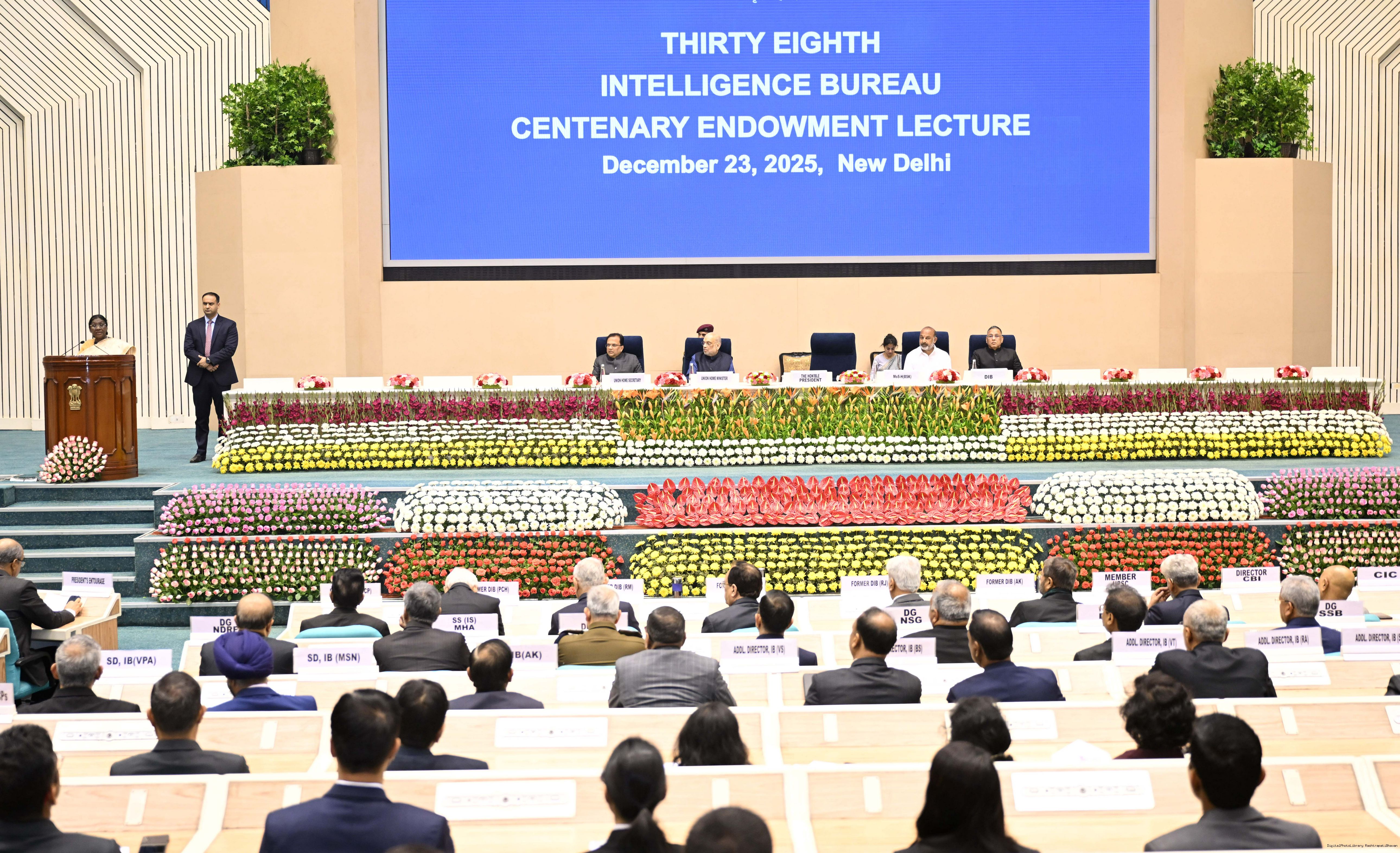 | Caption: | The President of India, Smt Droupadi Murmu, addressed the IB Centenary Endowment Lecture on the subject ‘People-Centric National Security: Community Participation in Building Viksit Bharat’ in New Delhi on December 23, 2025. |