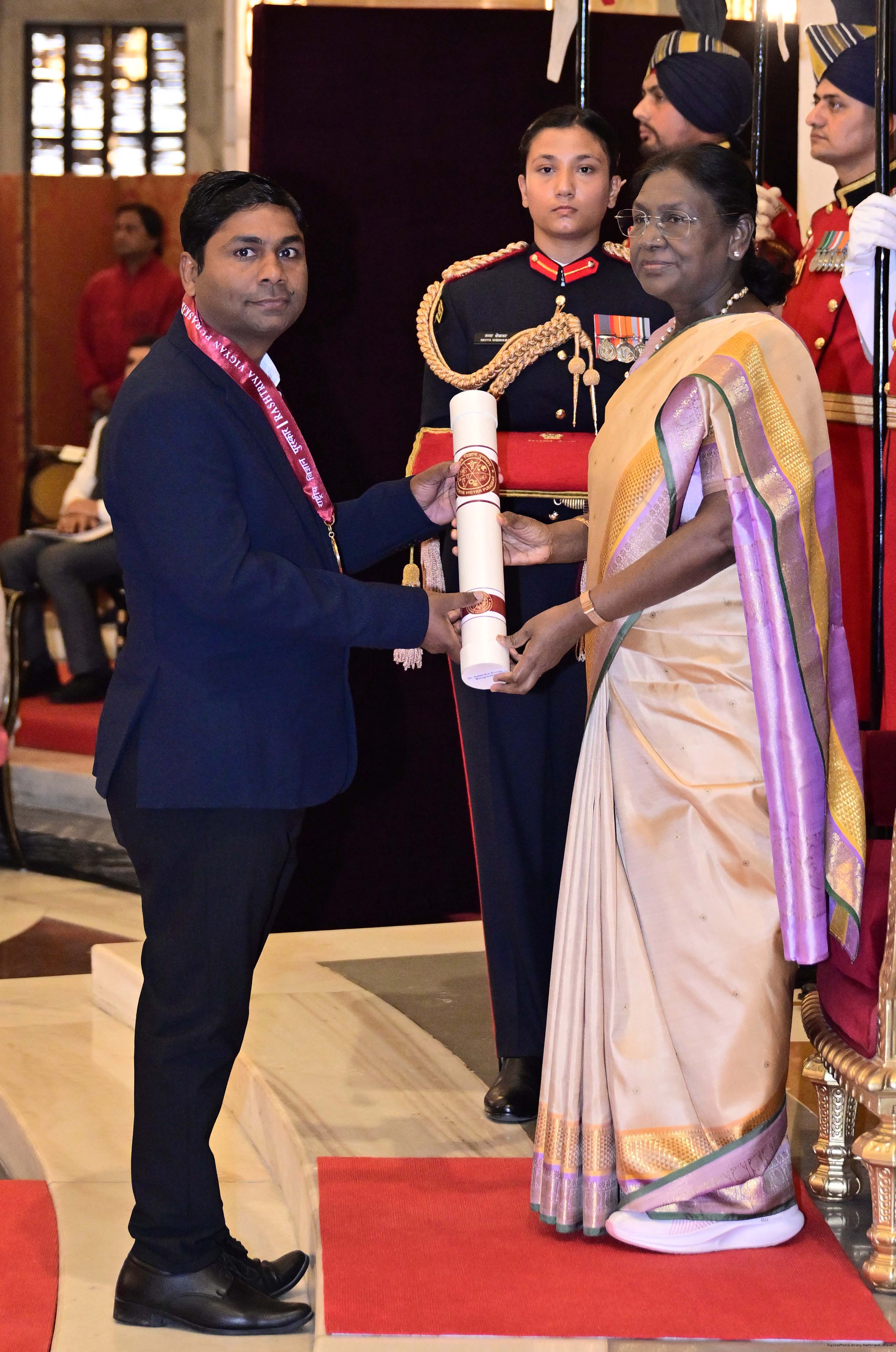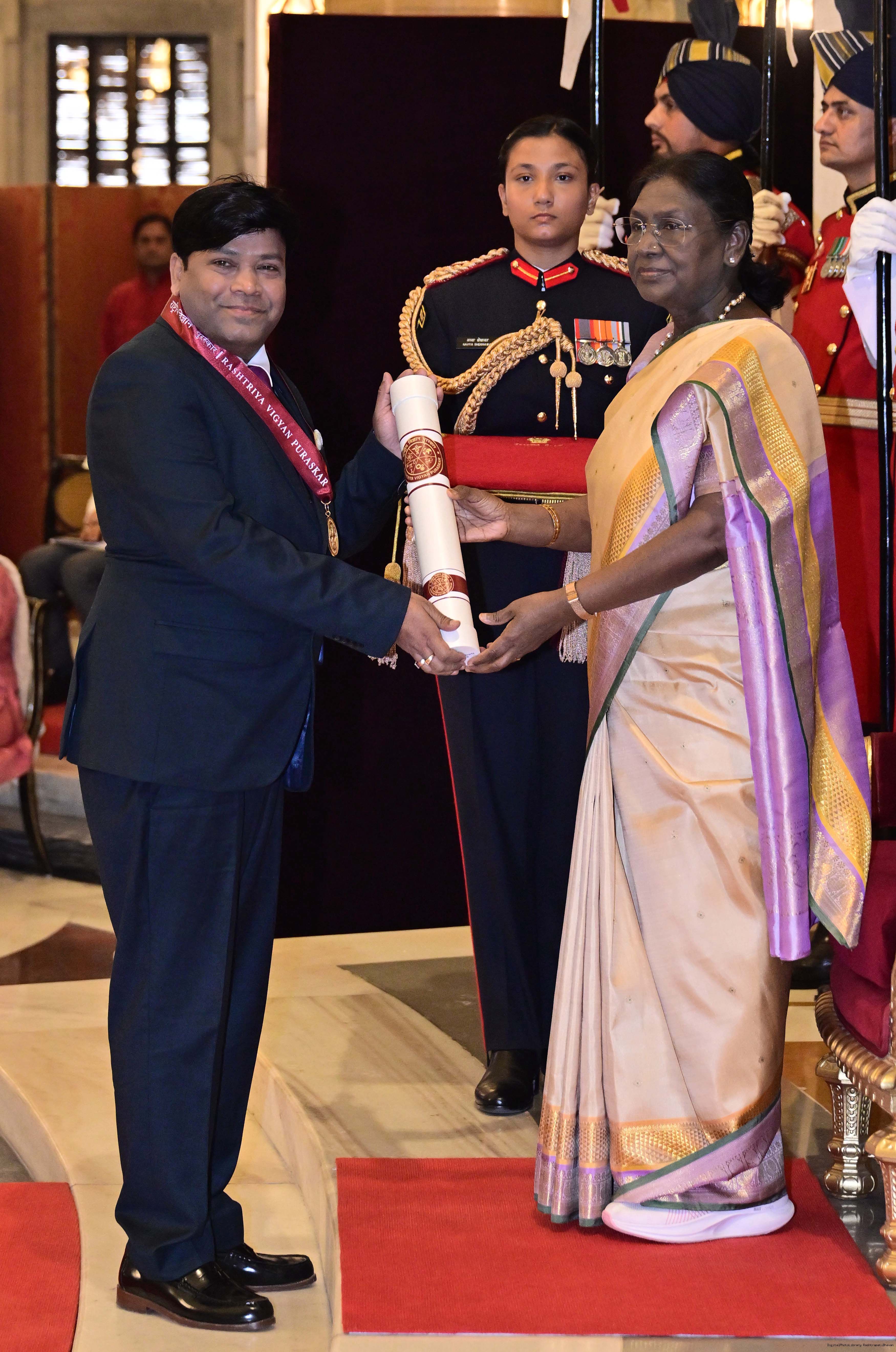 Caption: The President of India, Smt. Droupadi Murmu presented the Rashtriya Vigyan Puraskar- 2025 at an award ceremony held at Gantantra Mandap, Rashtrapati Bhavan on December 23, 2025.