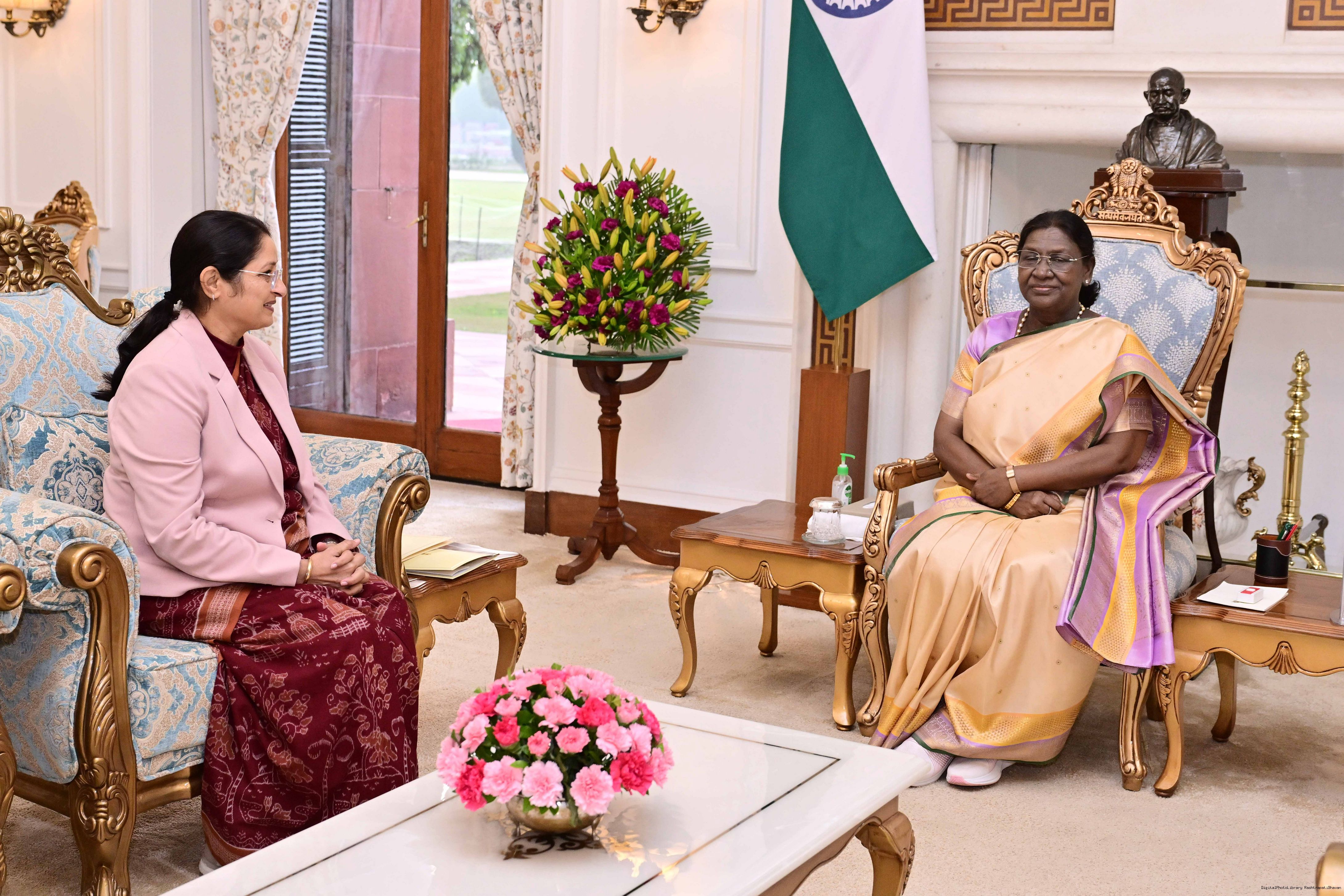| Caption: | Smt. Annpurna Devi, Minister of Women and Child Development called on the President of India, Smt Droupadi Murmu at Rashtrapati Bhavan on December 23, 2025. |