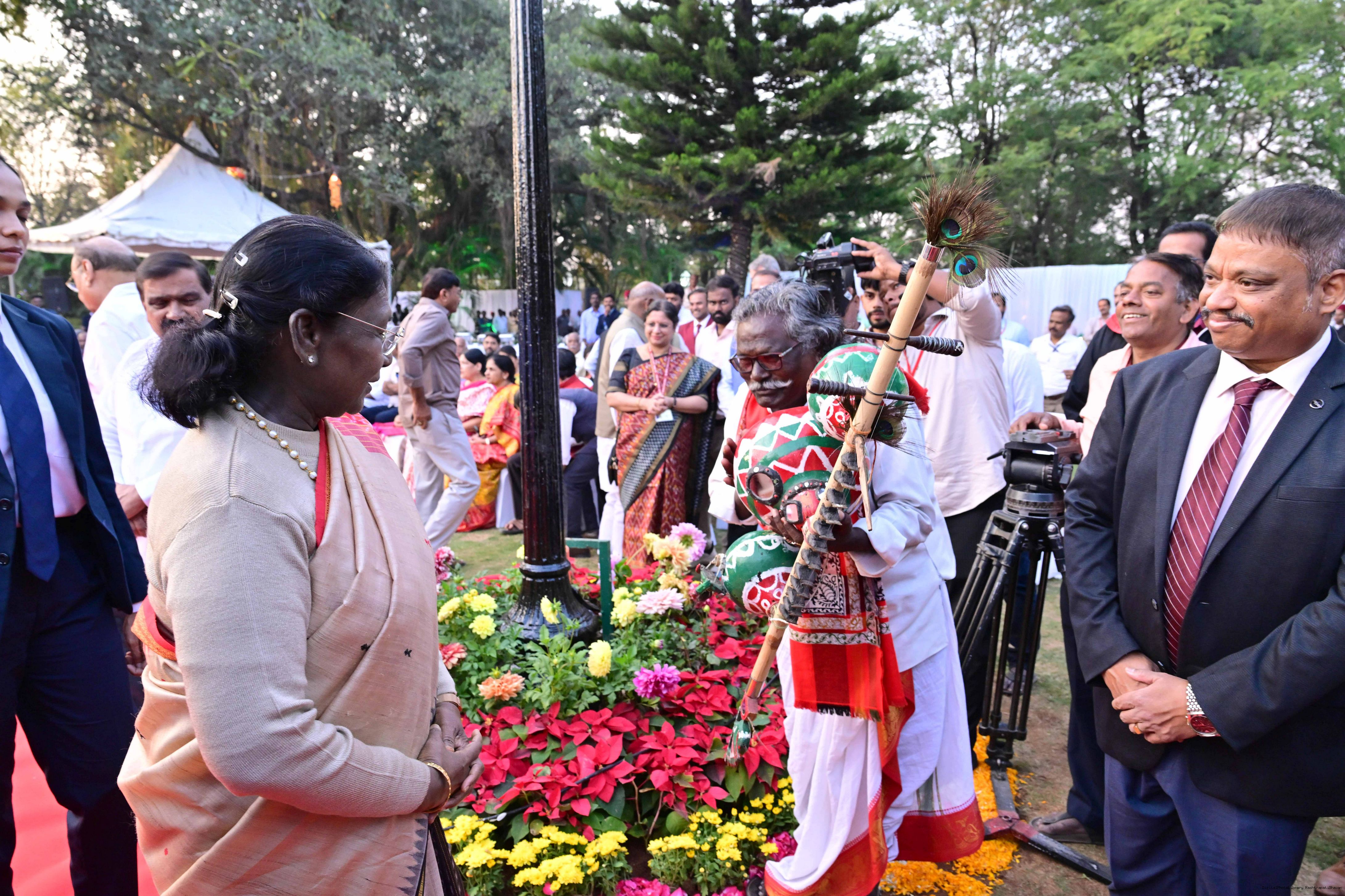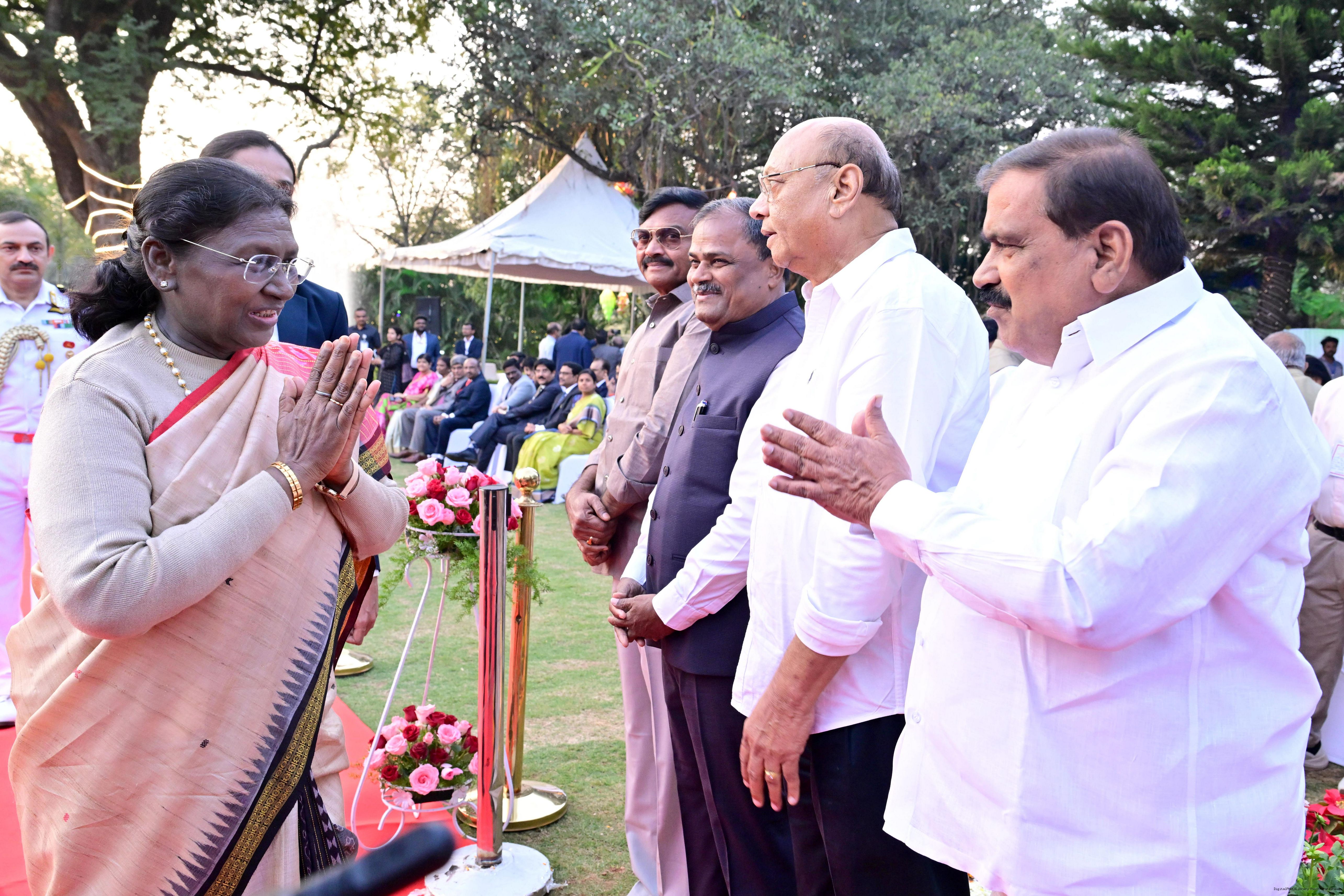 | Caption: | The President of India Smt Droupadi Murmu hosted an 'At Home' reception at Rashtrapati Nilayam, Secunderabad, Telangana 21, 2025. |