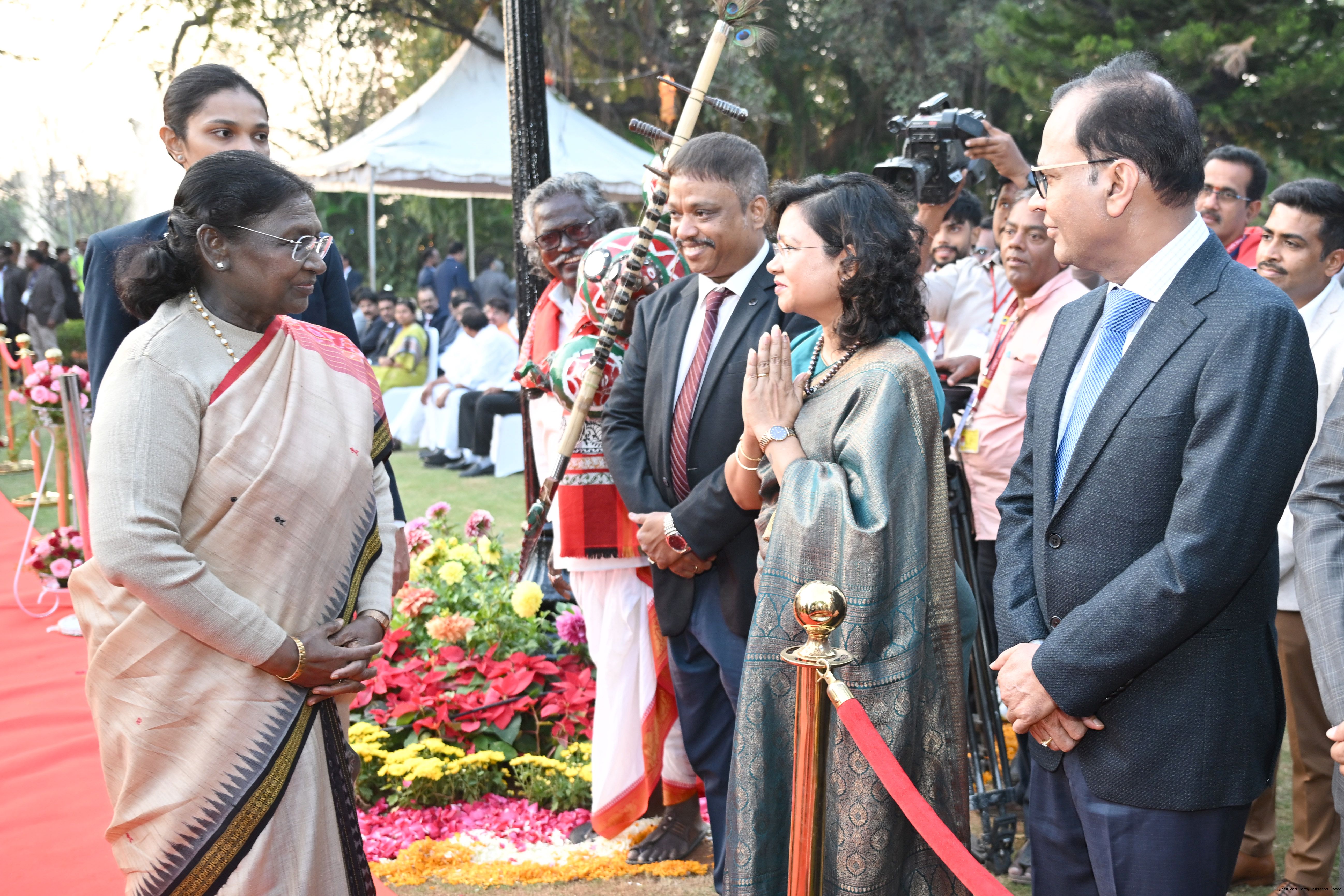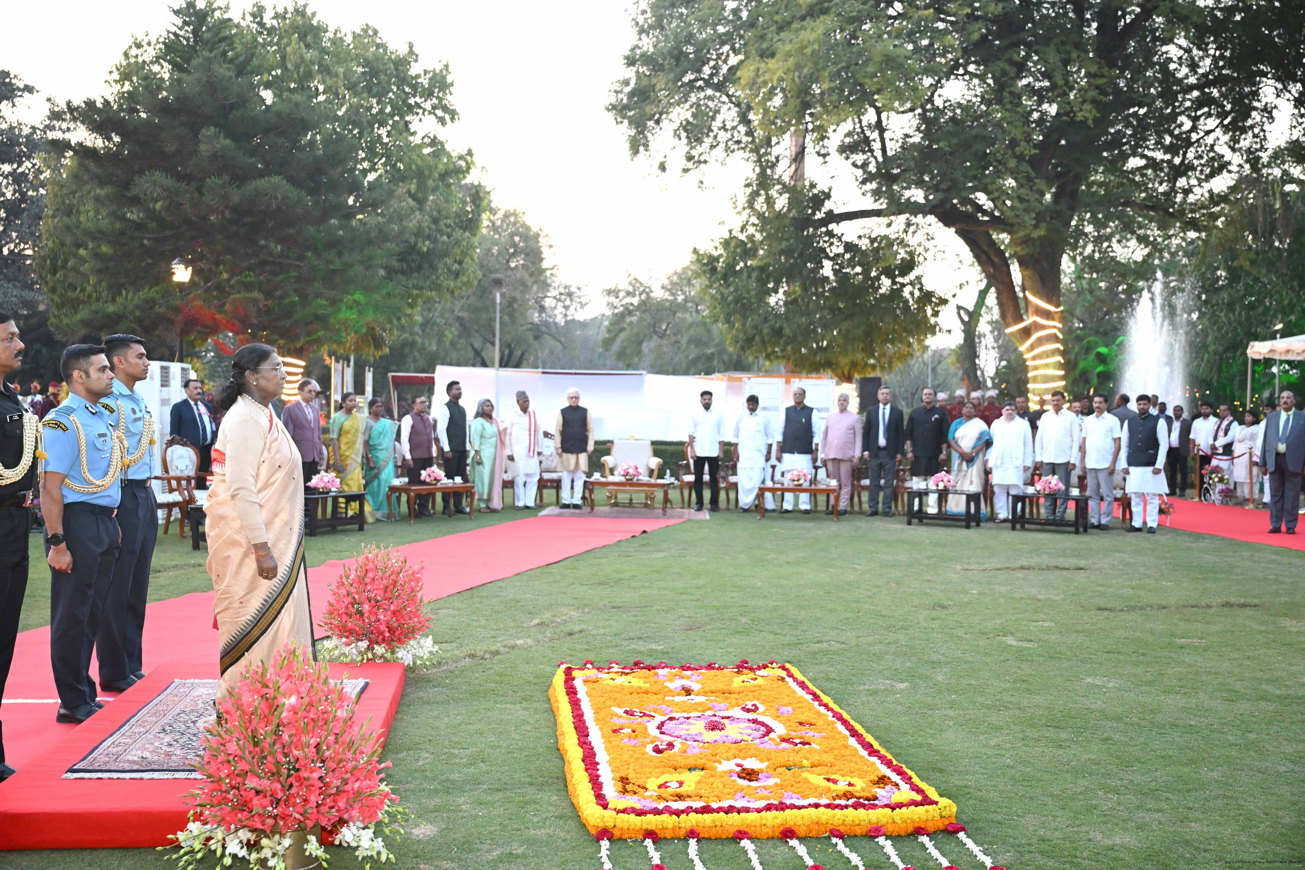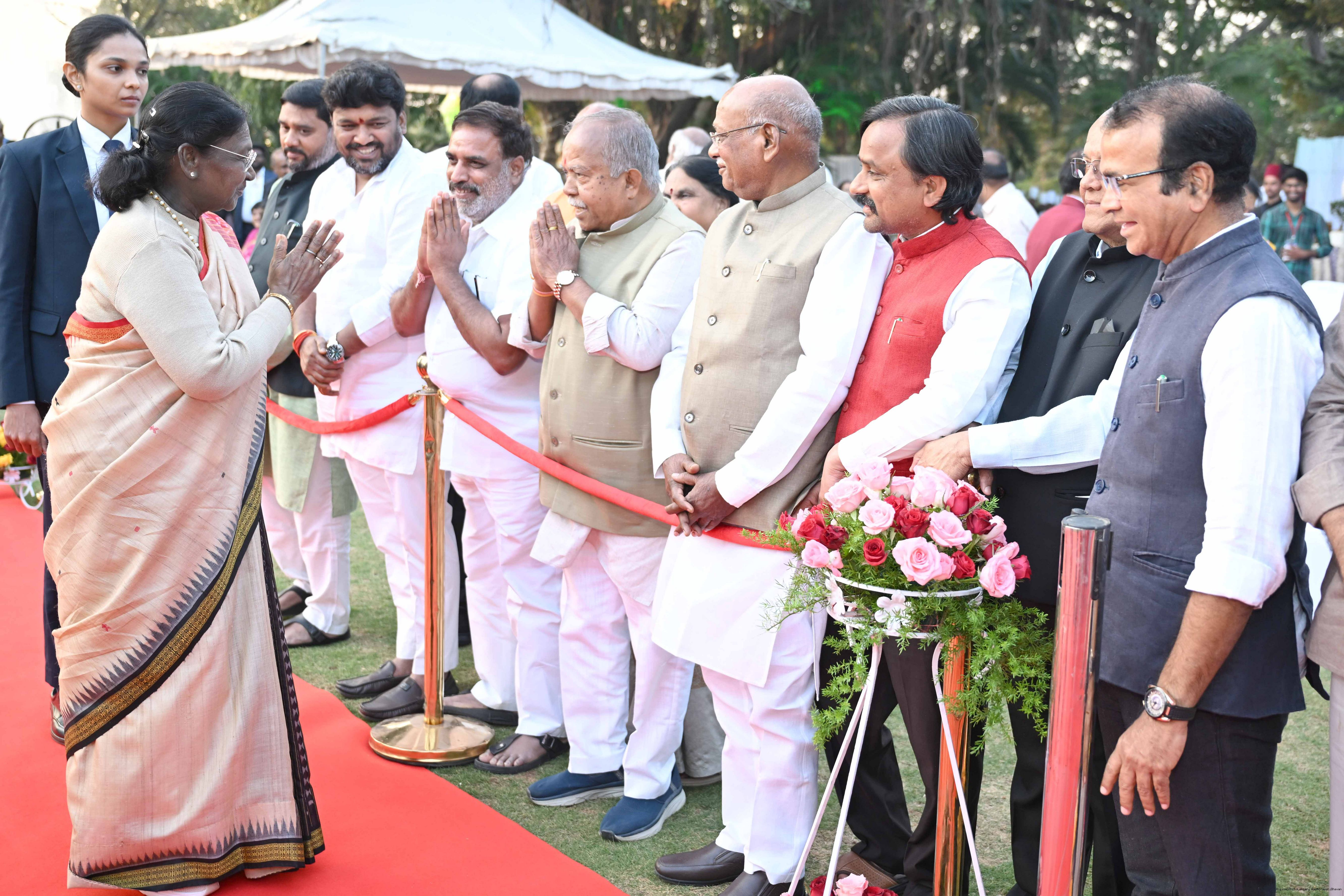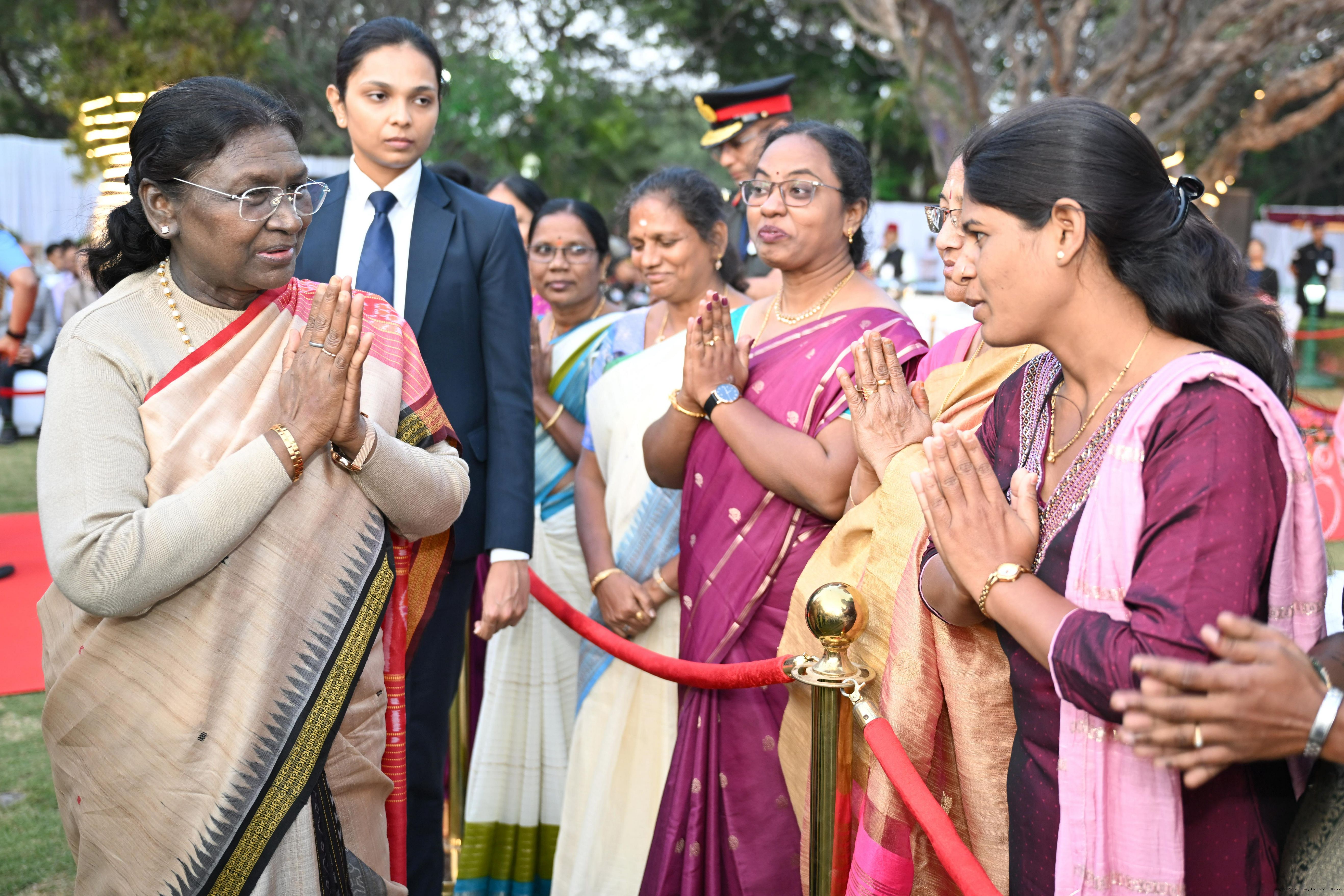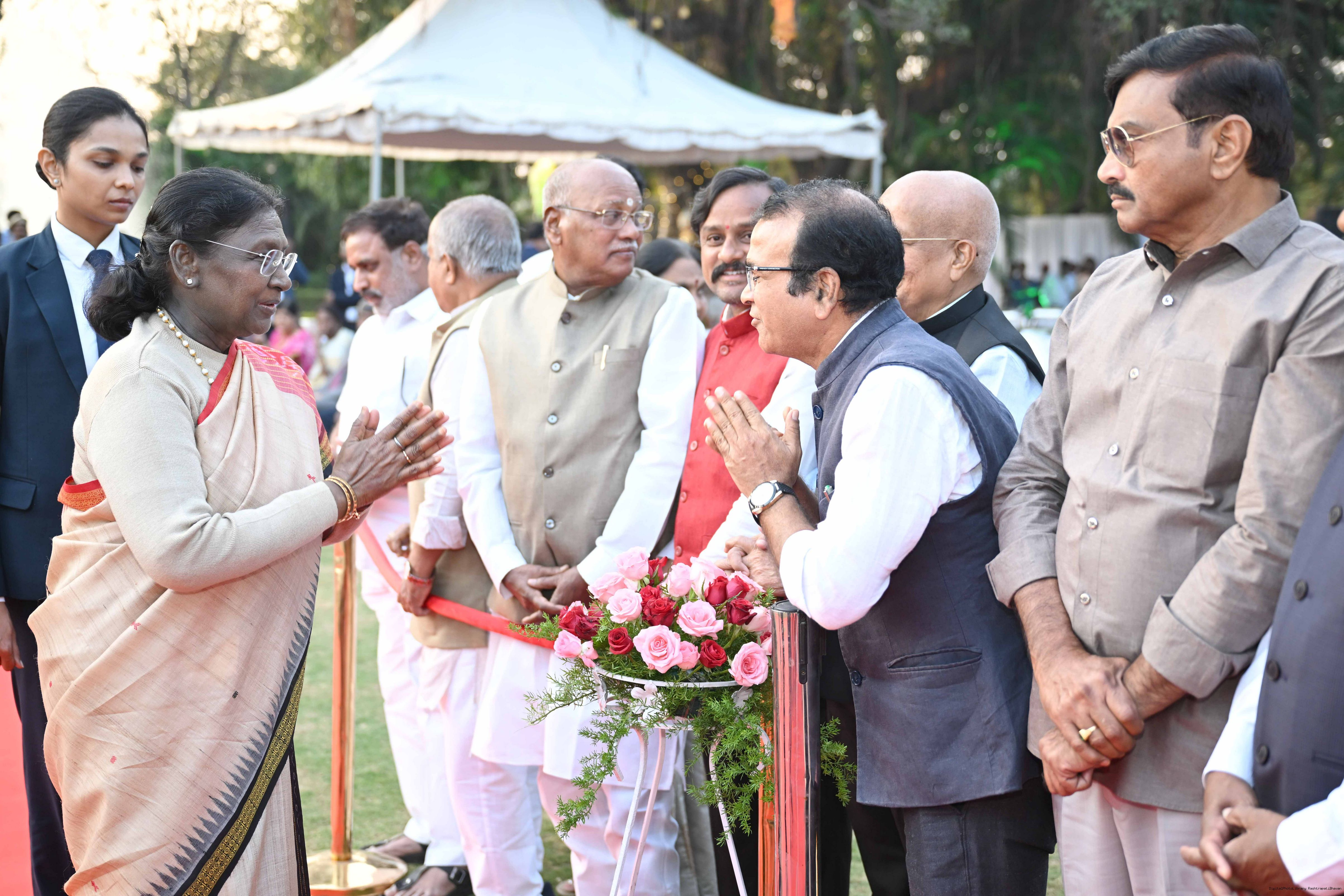 Caption: The President of India Smt Droupadi Murmu hosted an 'At Home' reception at Rashtrapati Nilayam, Secunderabad, Telangana 21, 2025.