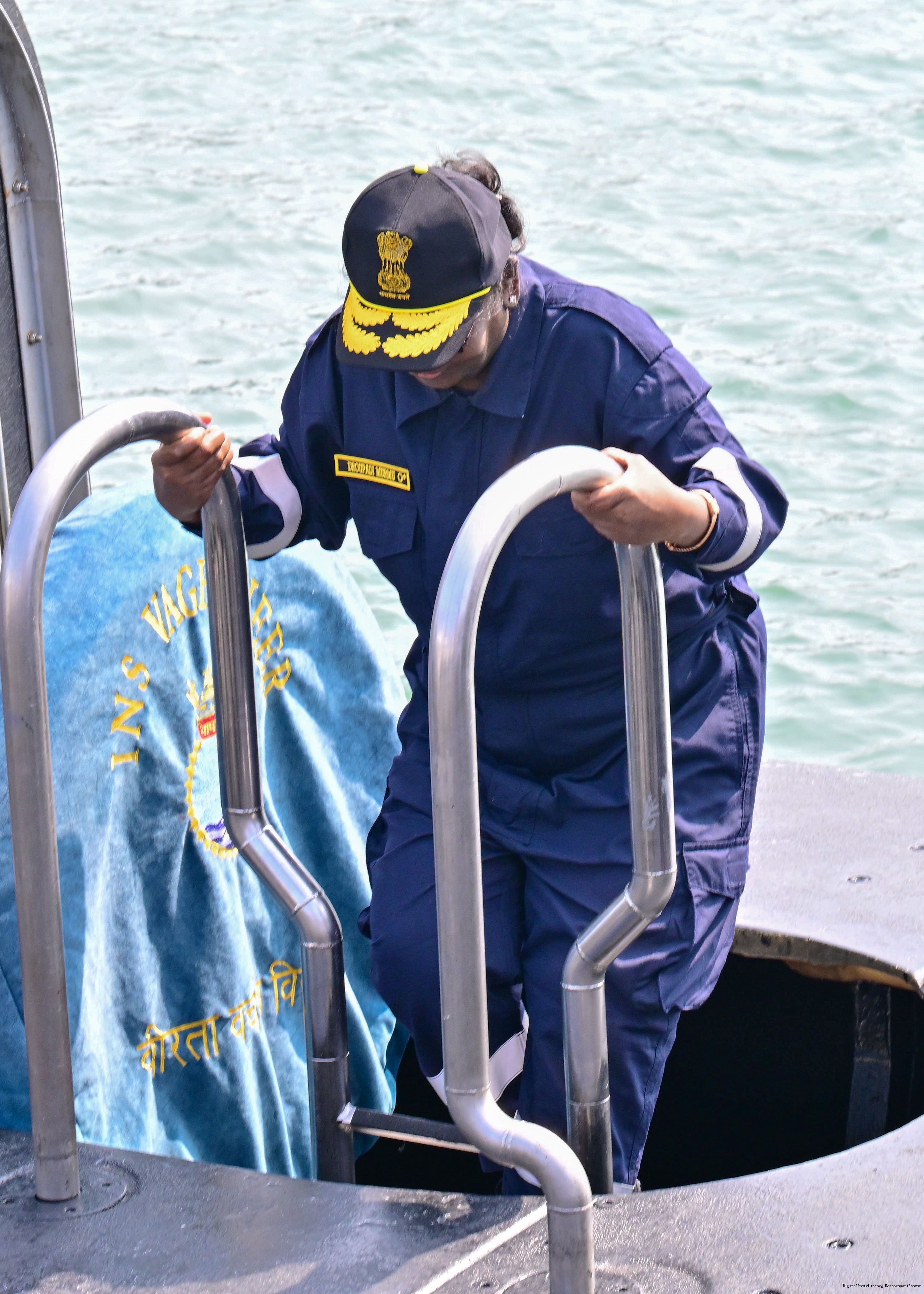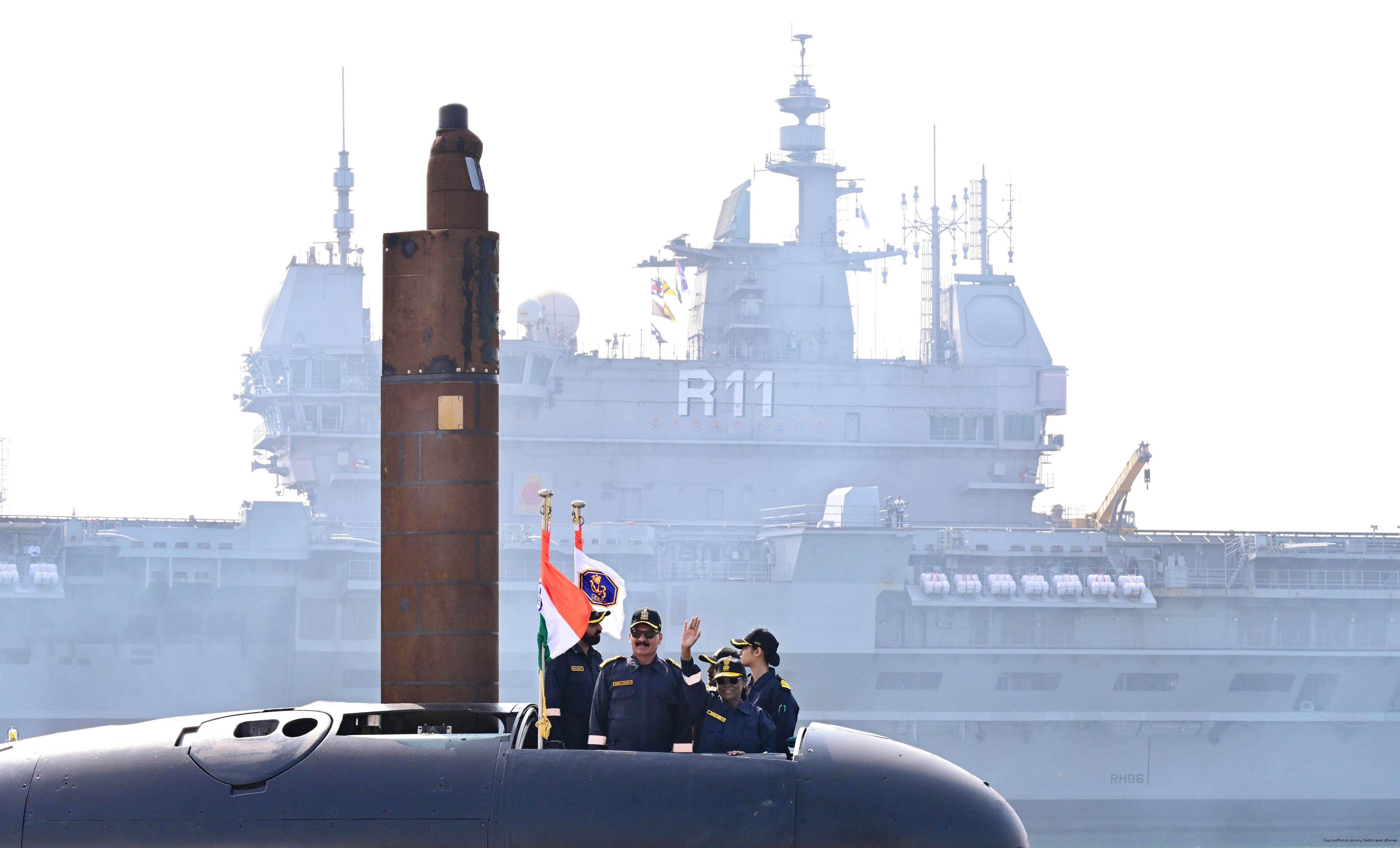 | Caption: | The President of India, Smt Droupadi Murmu undertook a dived sortie onboard Submarine – INS Vaghsheer on Western Seaboard at Karwar Naval Harbour, Karnataka on December 28, 2025. |