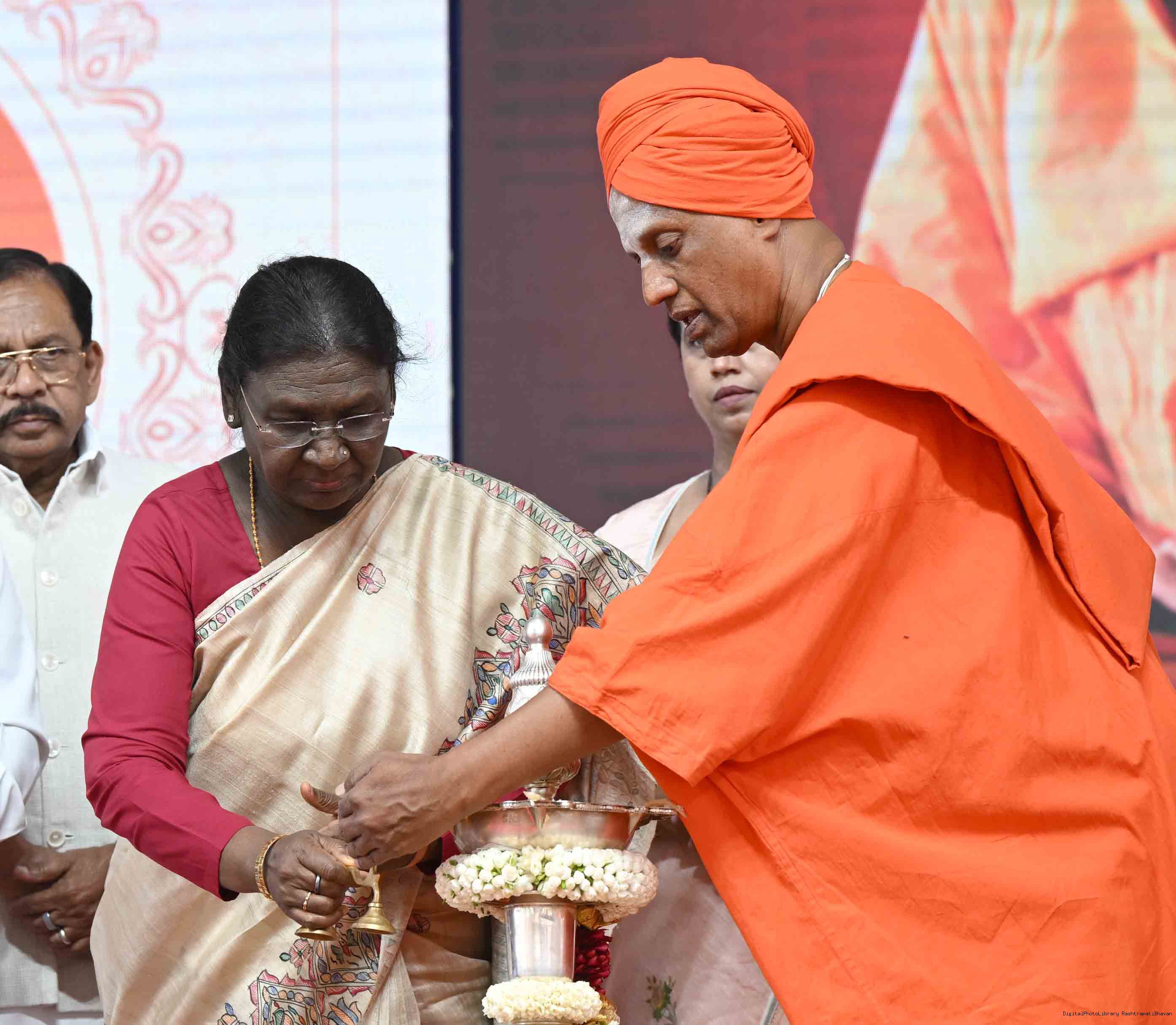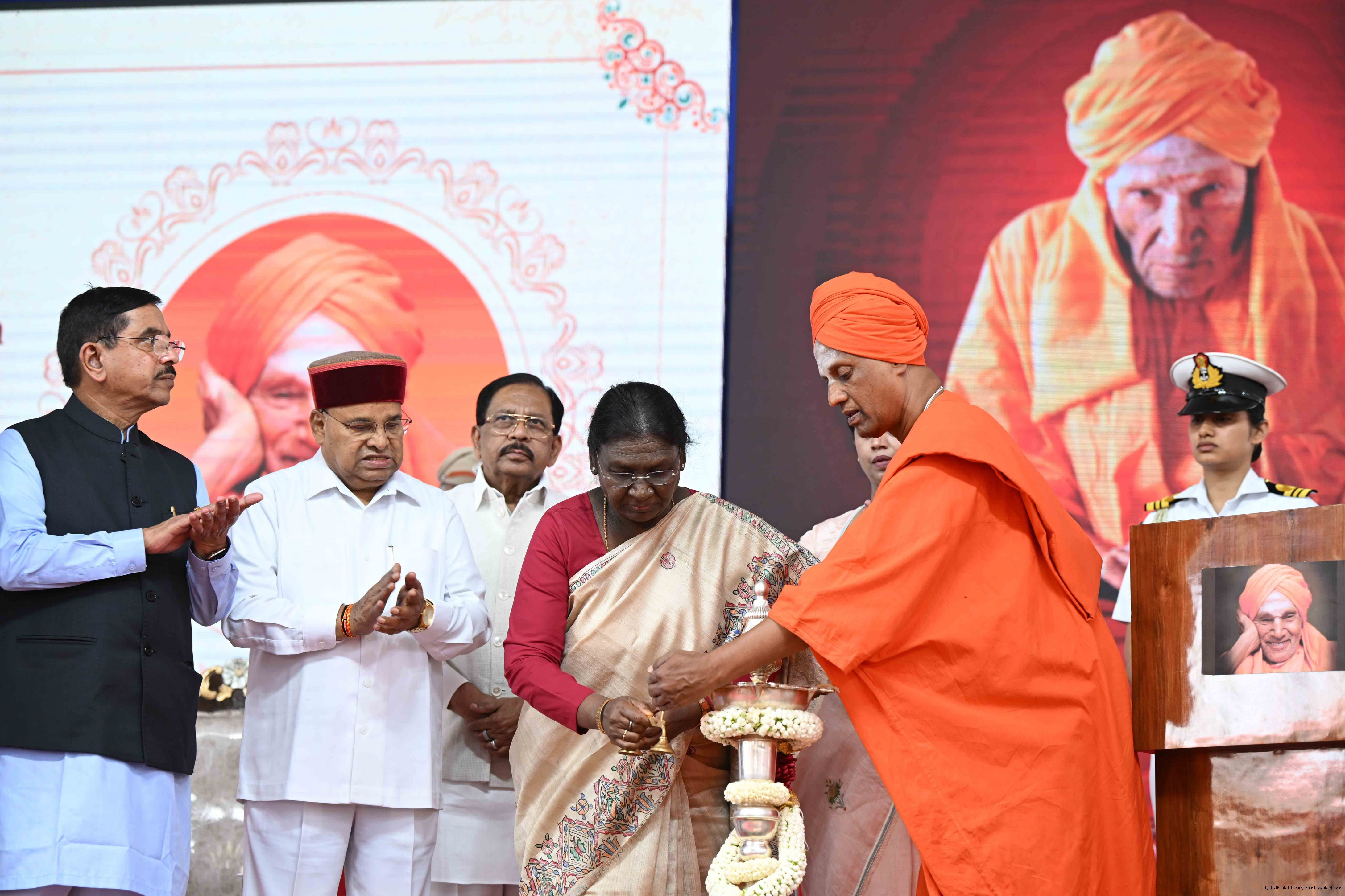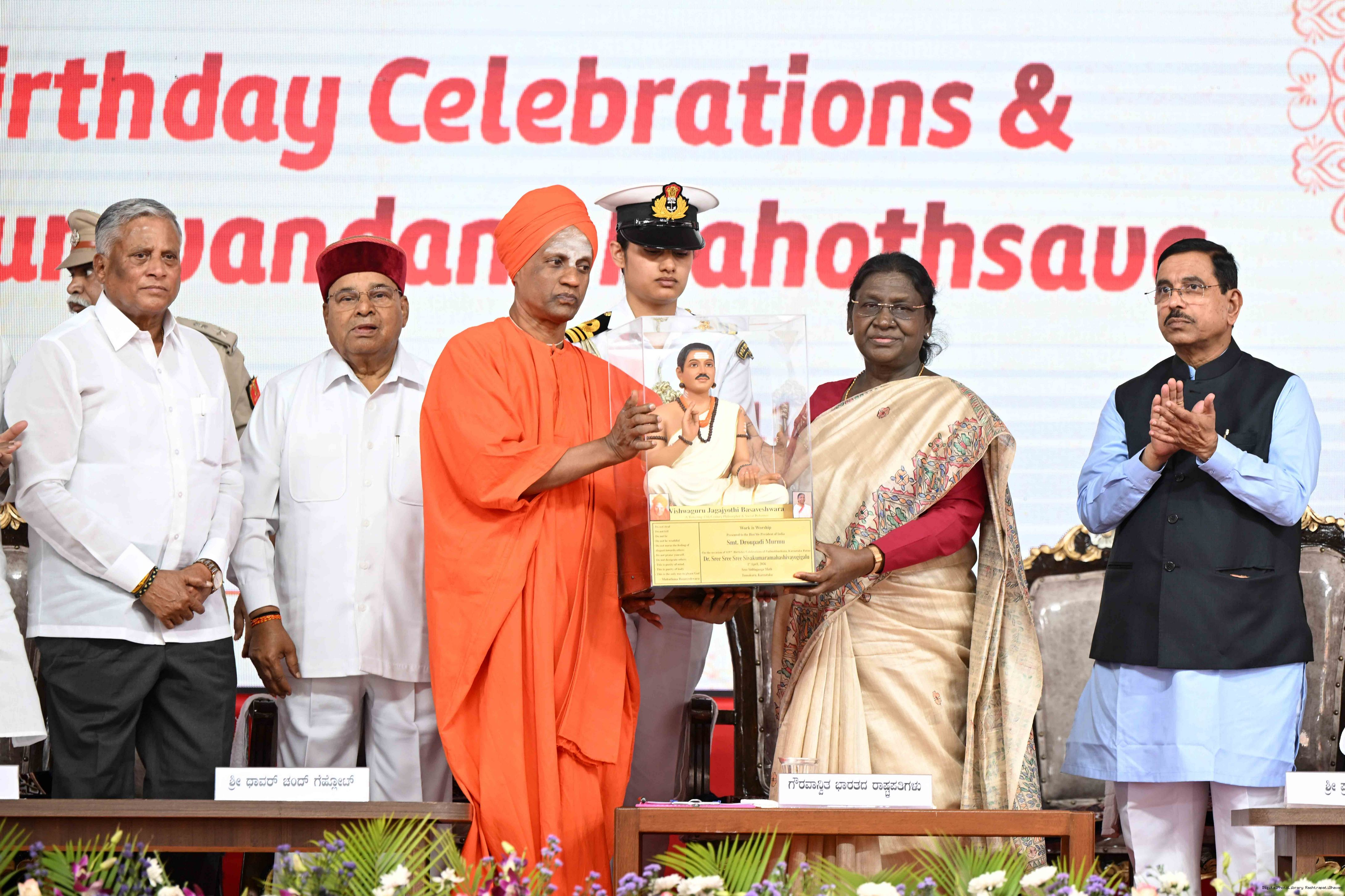 | Caption: | The President of India, Smt Droupadi Murmu graced the 119th birthday celebrations and Guruvandana mahotsava of Dr Sree Sree Sivakumara Mahaswamiji at Sree Siddaganga Math, Tumakuru, Karnataka on April 1, 2026. |