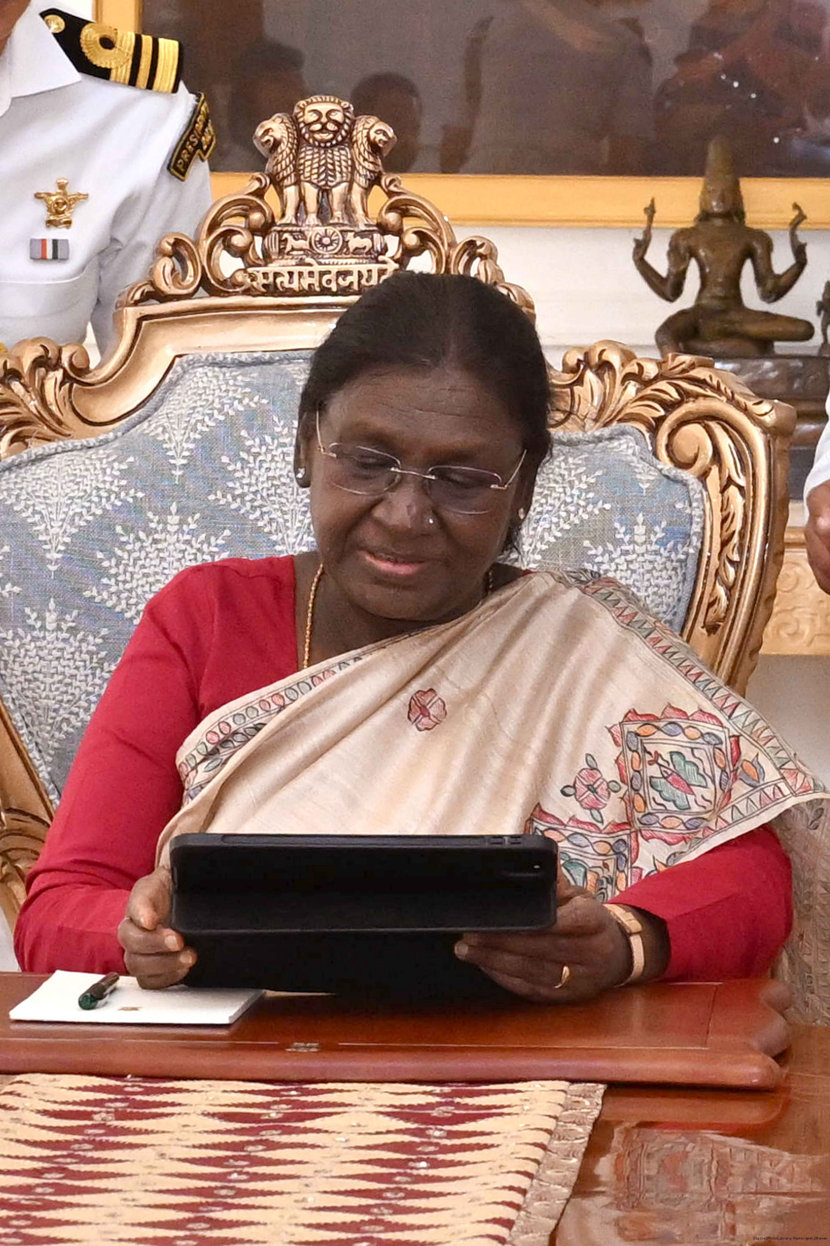 | Caption: | The President of India, Smt Droupadi Murmu participated in the self-enumeration initiative of the Government of India for Census 2027 at Rashtrapati Bhavan in the presence of Home Secretary Shri Govind Mohan, Registrar General and Census Commissioner of India Shri Mritunjay Kumar Narayan and other senior officials on April 1, 2026. |