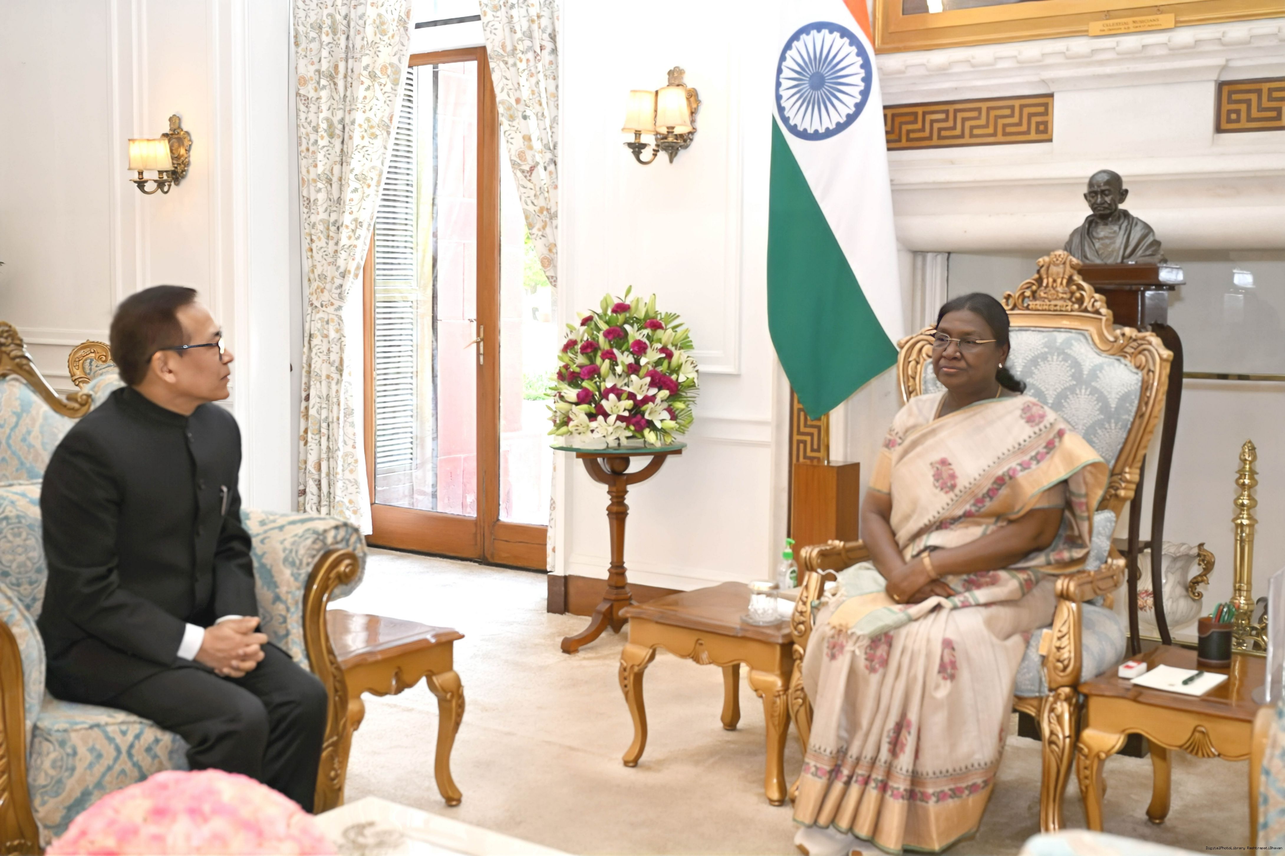 | Caption: | The Ambassador of India to the Democratic Republic of Timor Leste, Shri Mahendra Singh Patiyal meeting with the President of India Smt Droupadi Murmu at Rashtrapati Bhavan on April 6, 2026. |
