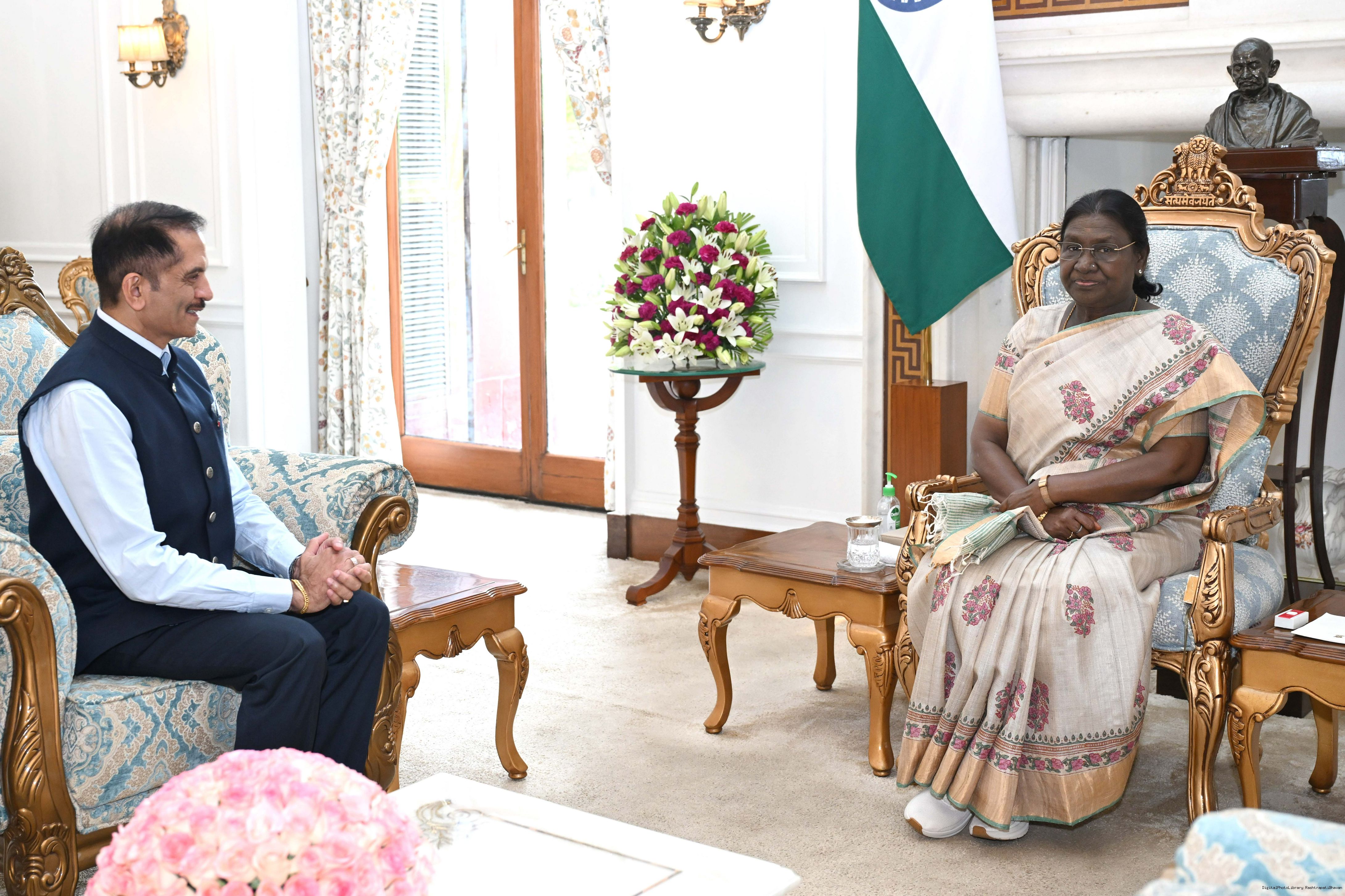 | Caption: | Prof (Dr.) Bimal N Patel, Vice Chancellor, Rashtriya Raksha University, Lavad-Gandhinagar, Gujarat meeting with the President of India, Smt Droupadi Murmu at Rashtrapati Bhavan on April 6, 2026. |