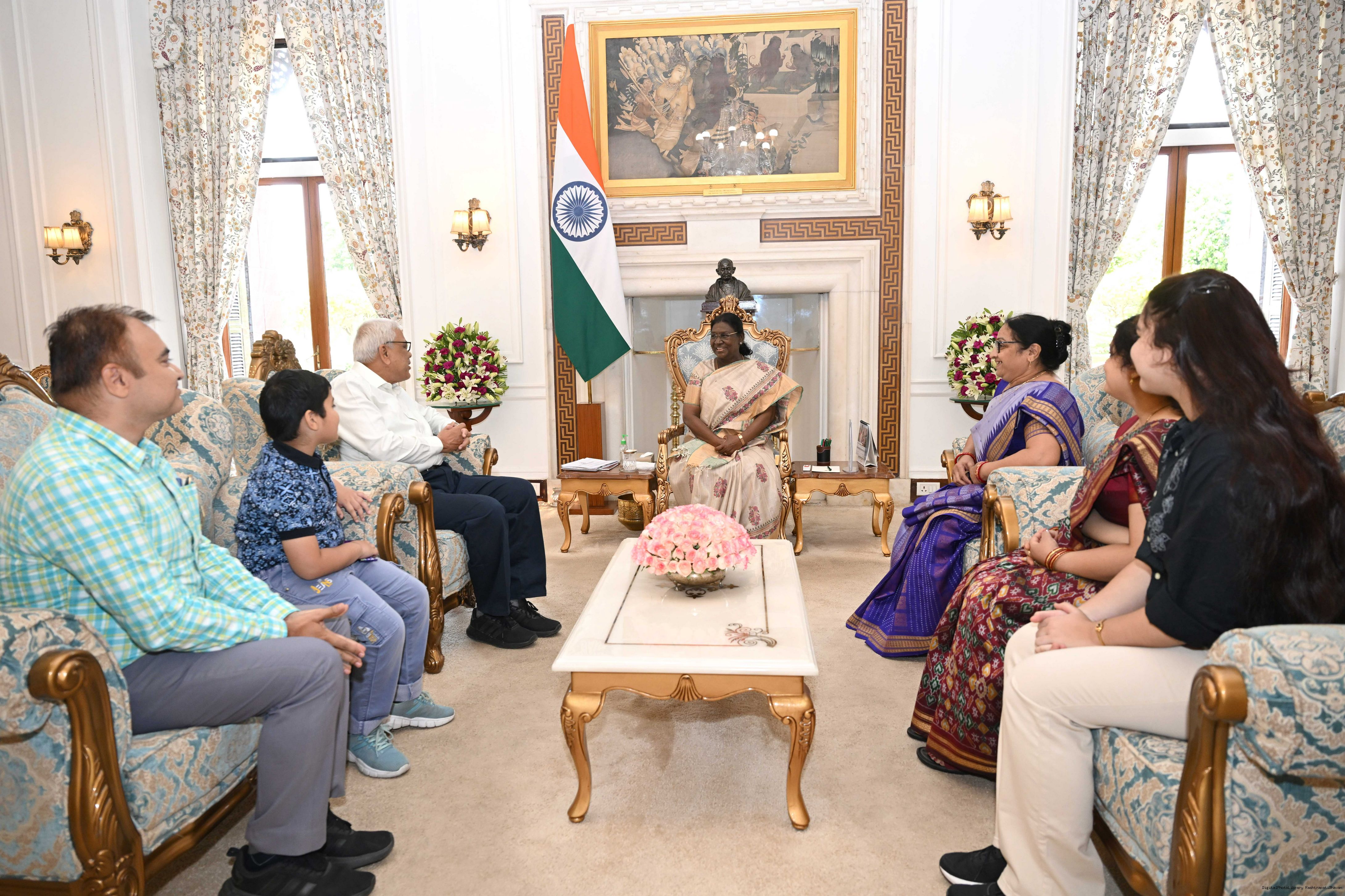| Caption: | Ms. Mohini Ranjan Hota along with Ms. Namita Hota and others meeting with the President of India, Smt Droupadi Murmu at Rashtrapati Bhavan on April 6, 2026. |
