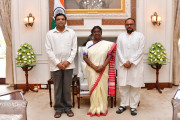 | Caption: | Dr. Digant Amte along with his brother Shri Aniket Amte from Lok Biradari Prakalp, Gadchiroli, Maharashtra meeting with the President of India, Smt. Droupadi Murmu, at Rashtrapati Bhavan on March 13, 2023 |