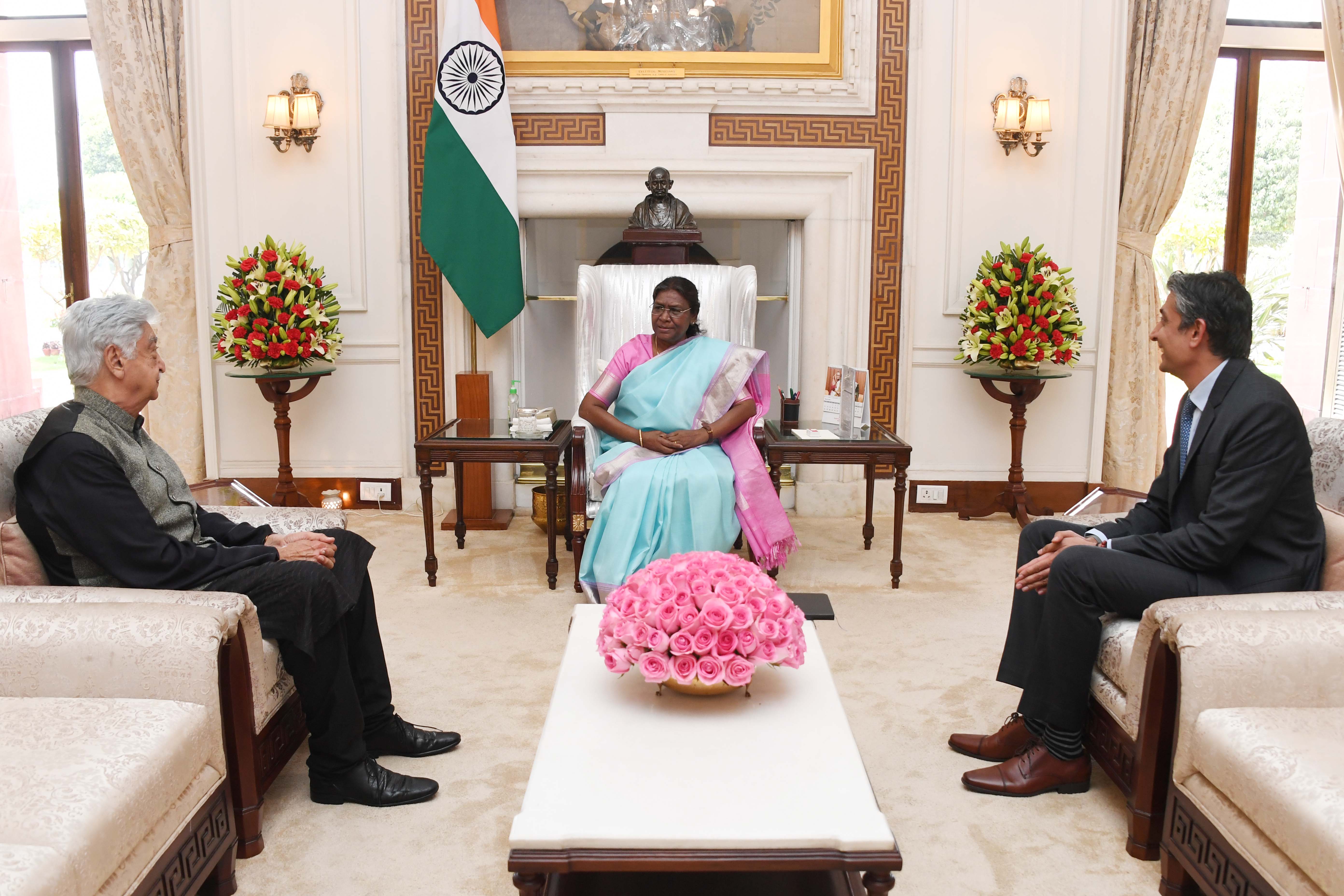 | Caption: | Shri Azim Premji, Founder Chairman , Wipro along with his son Shri Rishad Premji, Executive Chairman, Wipro Limited meeting with the President of India, Smt. Droupadi Murmu, at Rashtrapati Bhavan on March 14, 2023 |