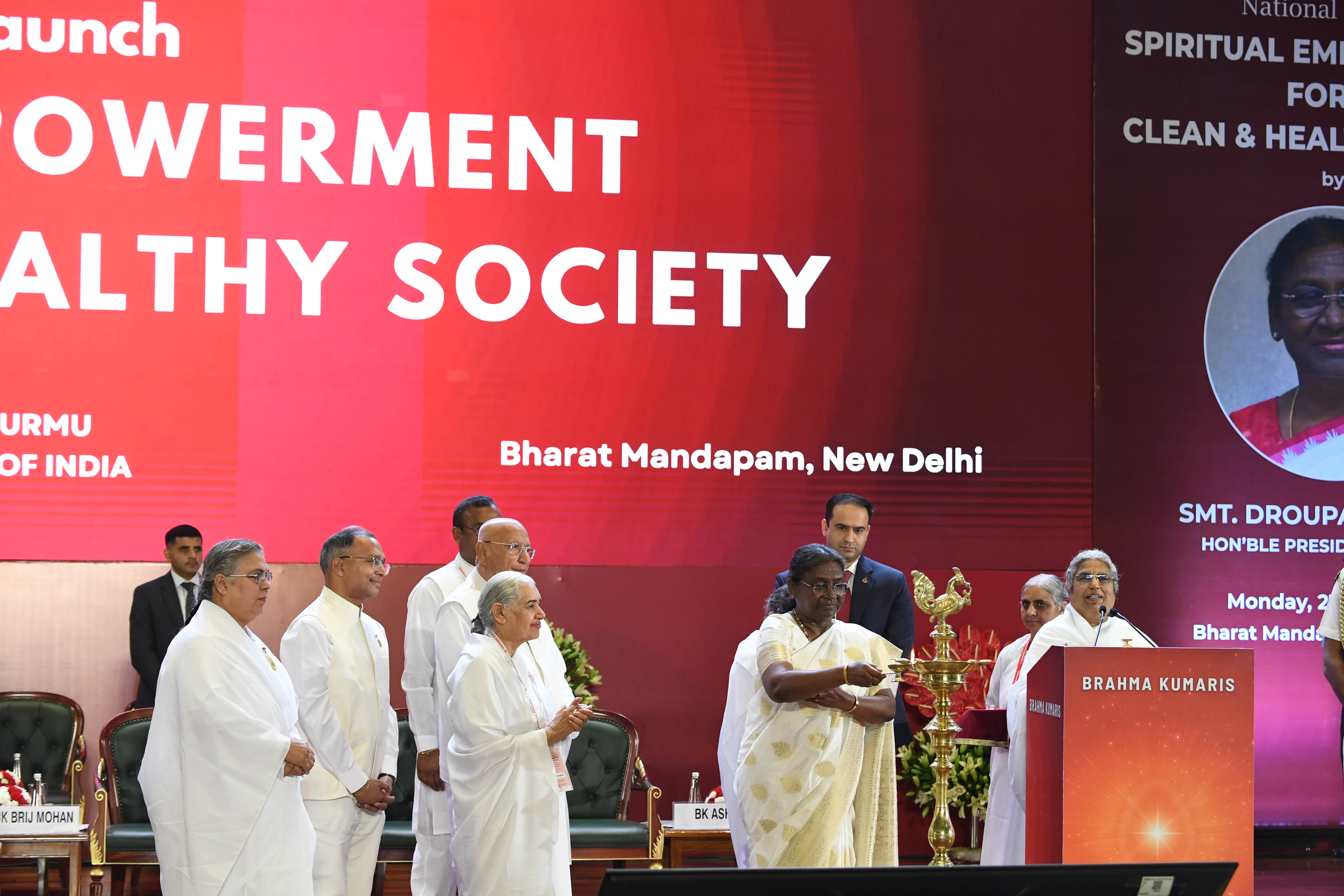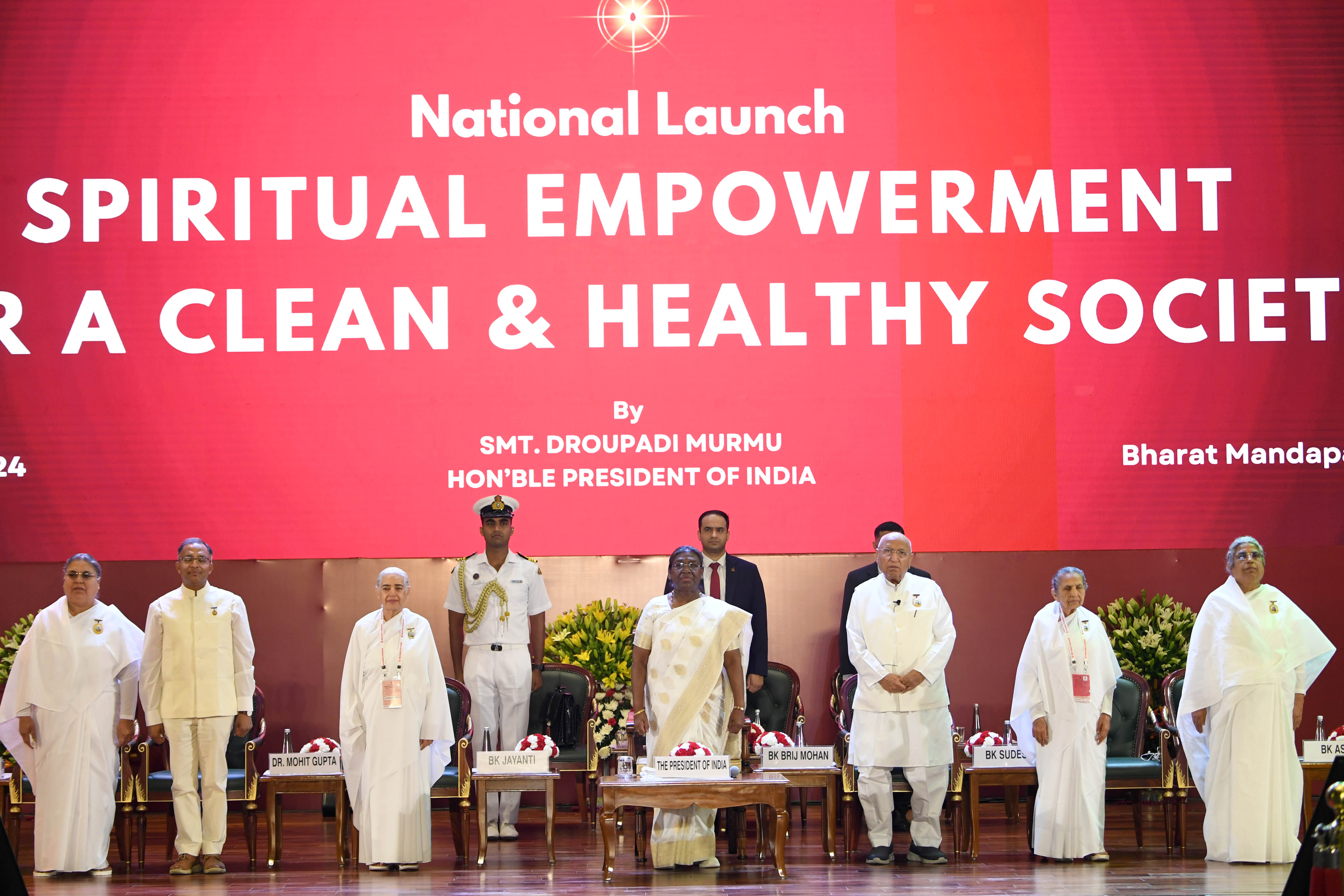 | Caption: | The President of India, Smt Droupadi Murmu graced the National Launch of ‘Spiritual Empowerment for a Clean and Healthy Society’ organised by Brahma Kumaris in New Delhi on May 27, 2024. |