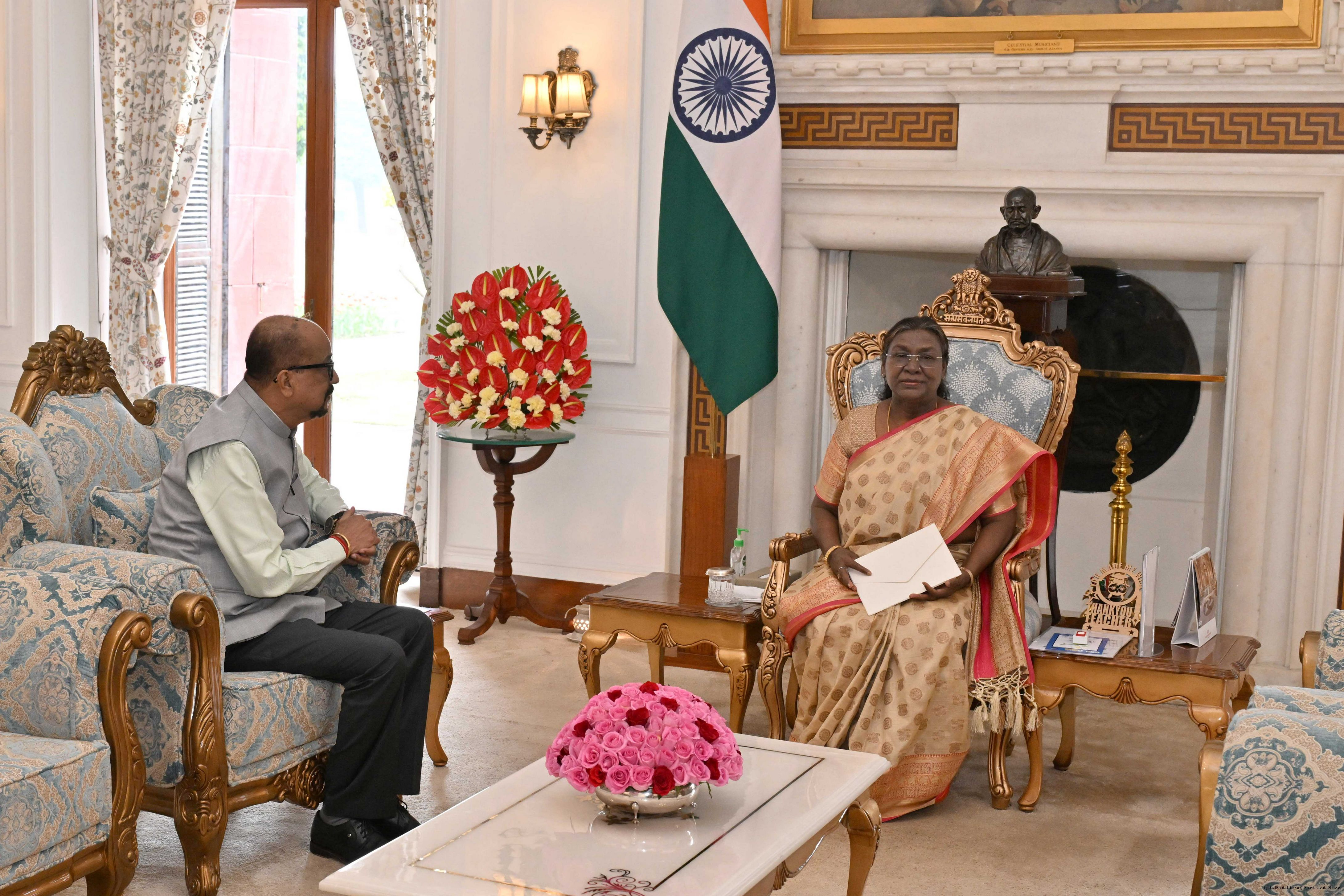 The Governor of Chhattisgarh, Shri Ramen Deka called on the President of India Smt. Droupadi Murmu at Rashtrapati Bhavan on February 04, 2025.