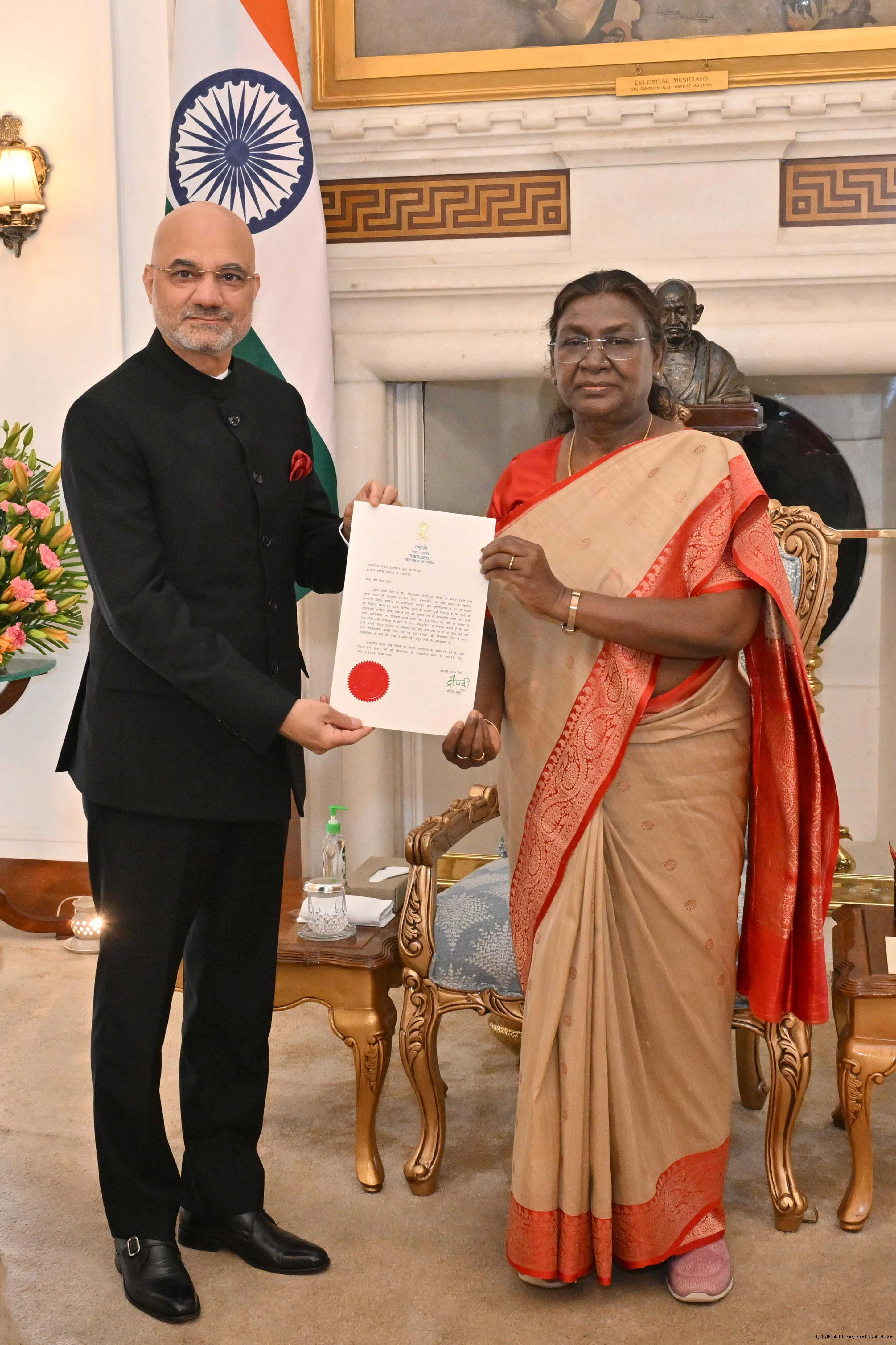 | Caption: | The Ambassador-designate of India to the Federative Republic of Brazil, Shri Dinesh Bhatia meeting with the President of India Smt. Droupadi Murmu at Rashtrapati Bhavan on February 21, 2025. |