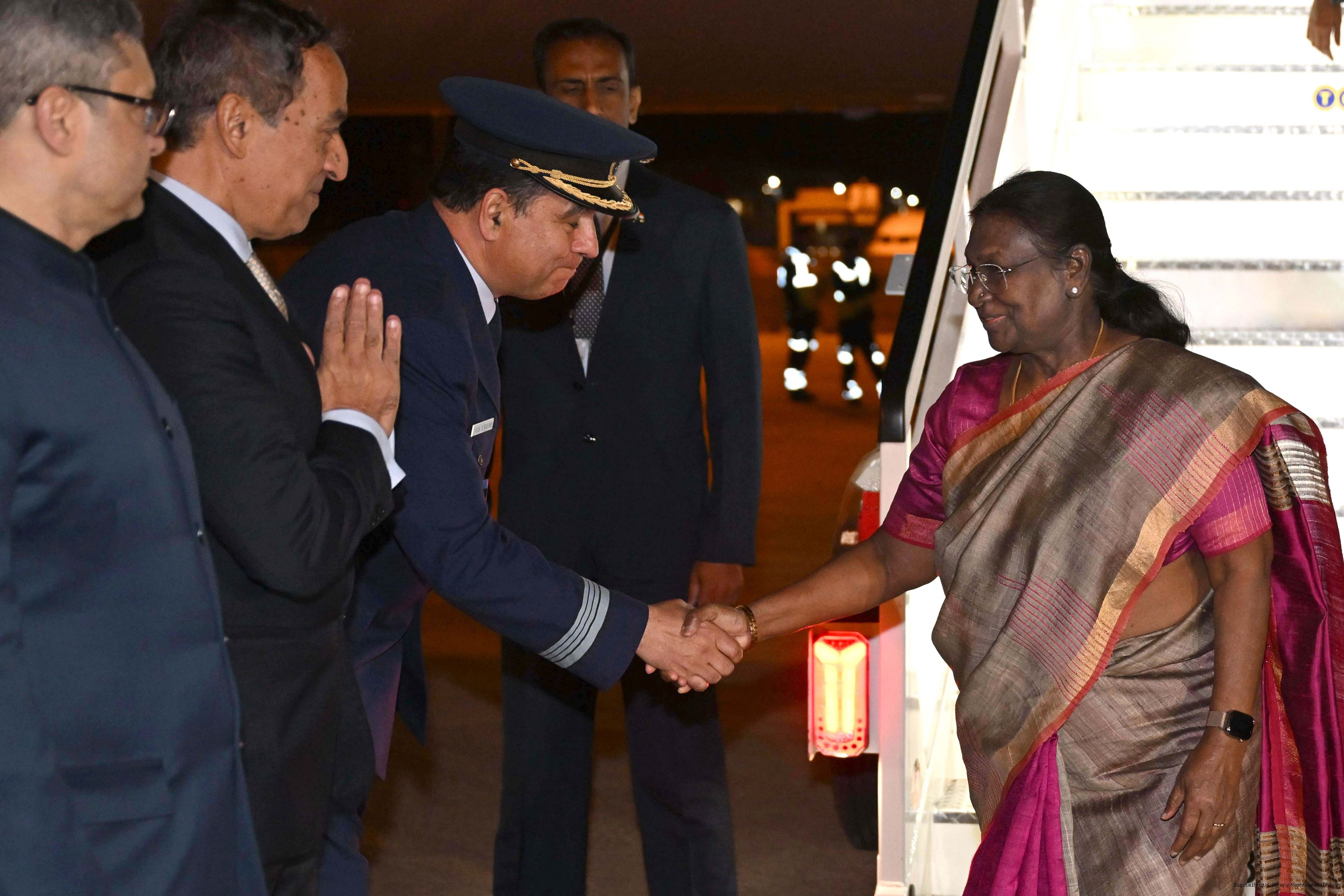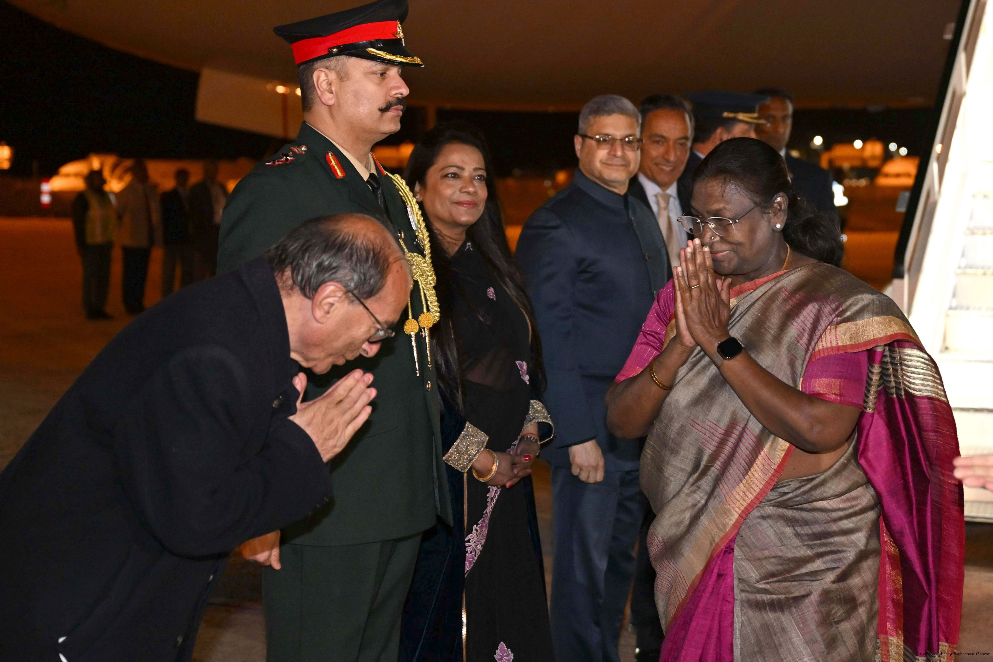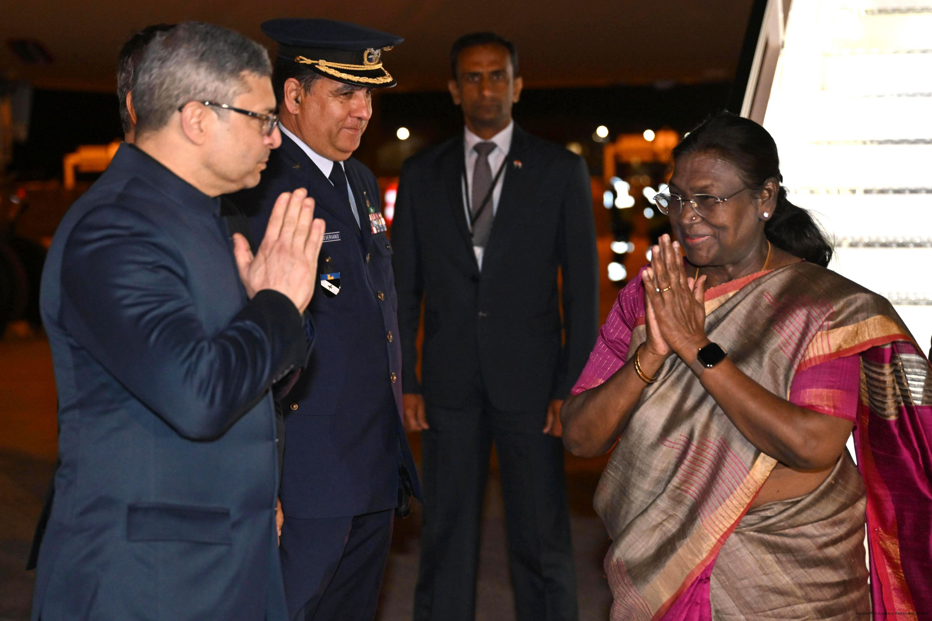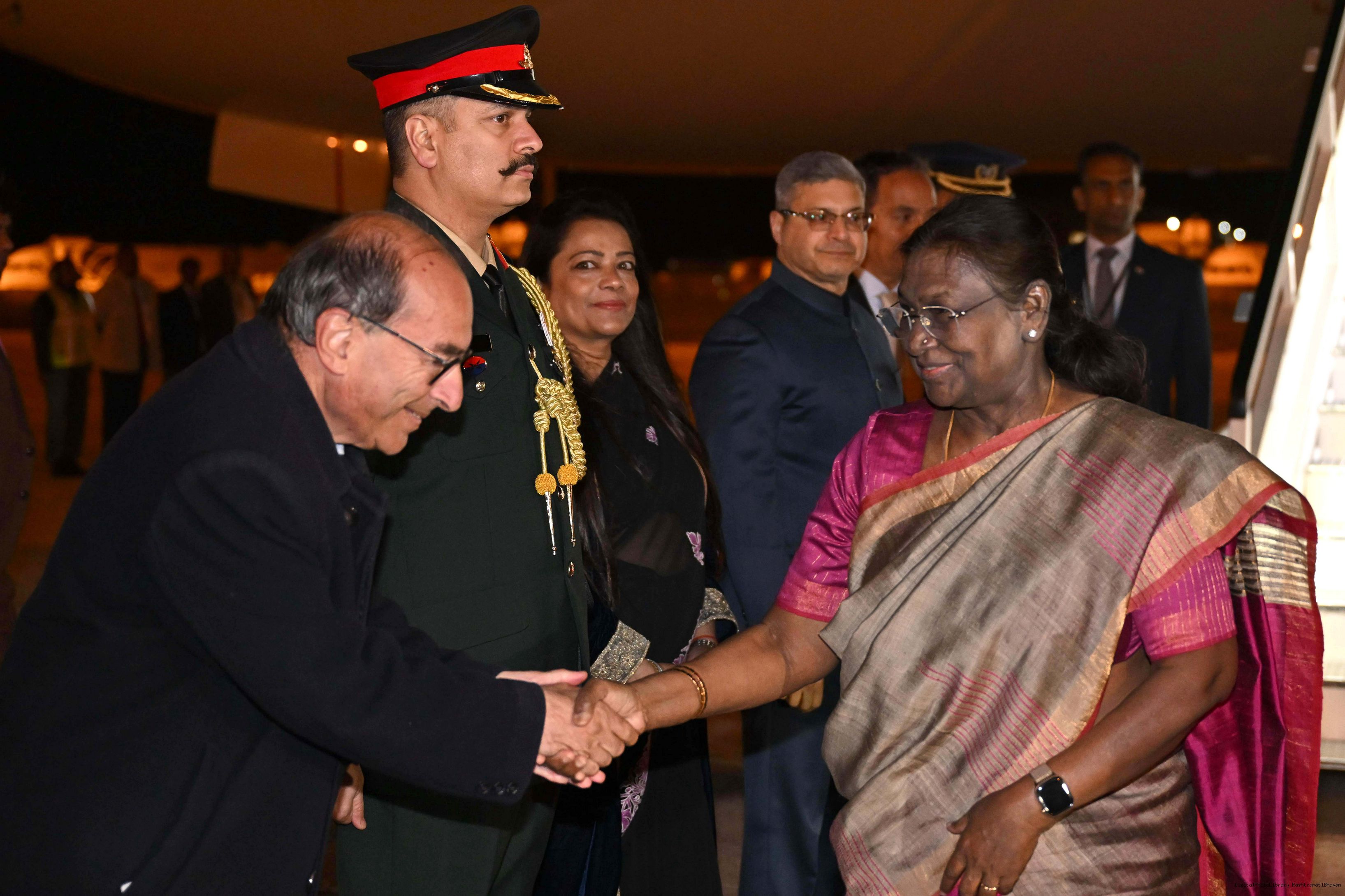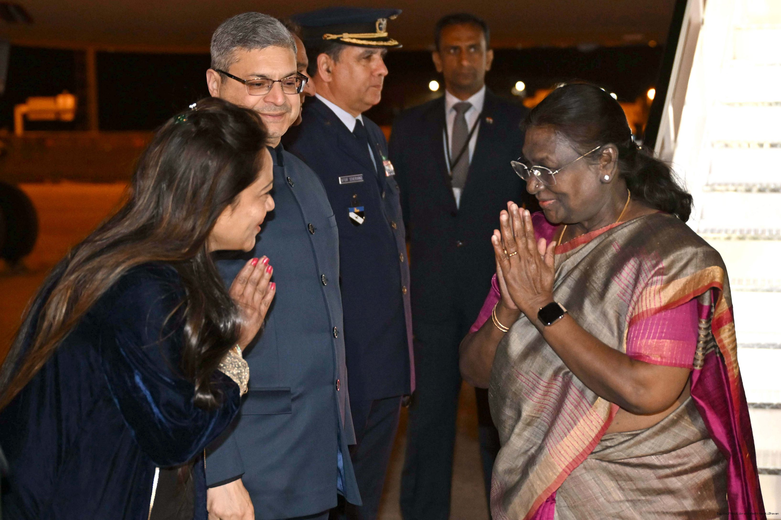 | Caption: | The President of India, Smt. Droupadi Murmu Arrives at Military Airport of Figo Maduro (AT1) at Portugal on April 6, 2025. |