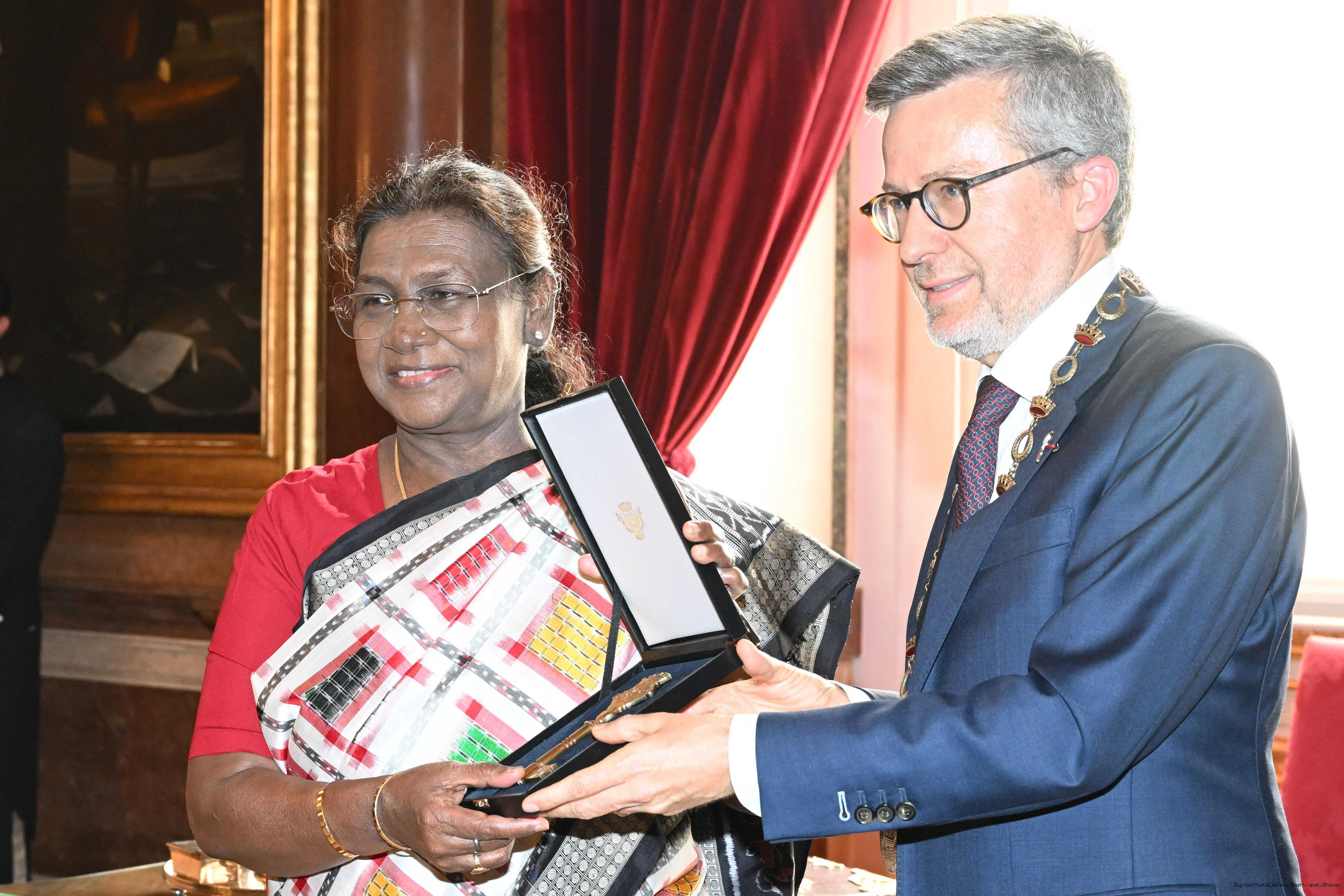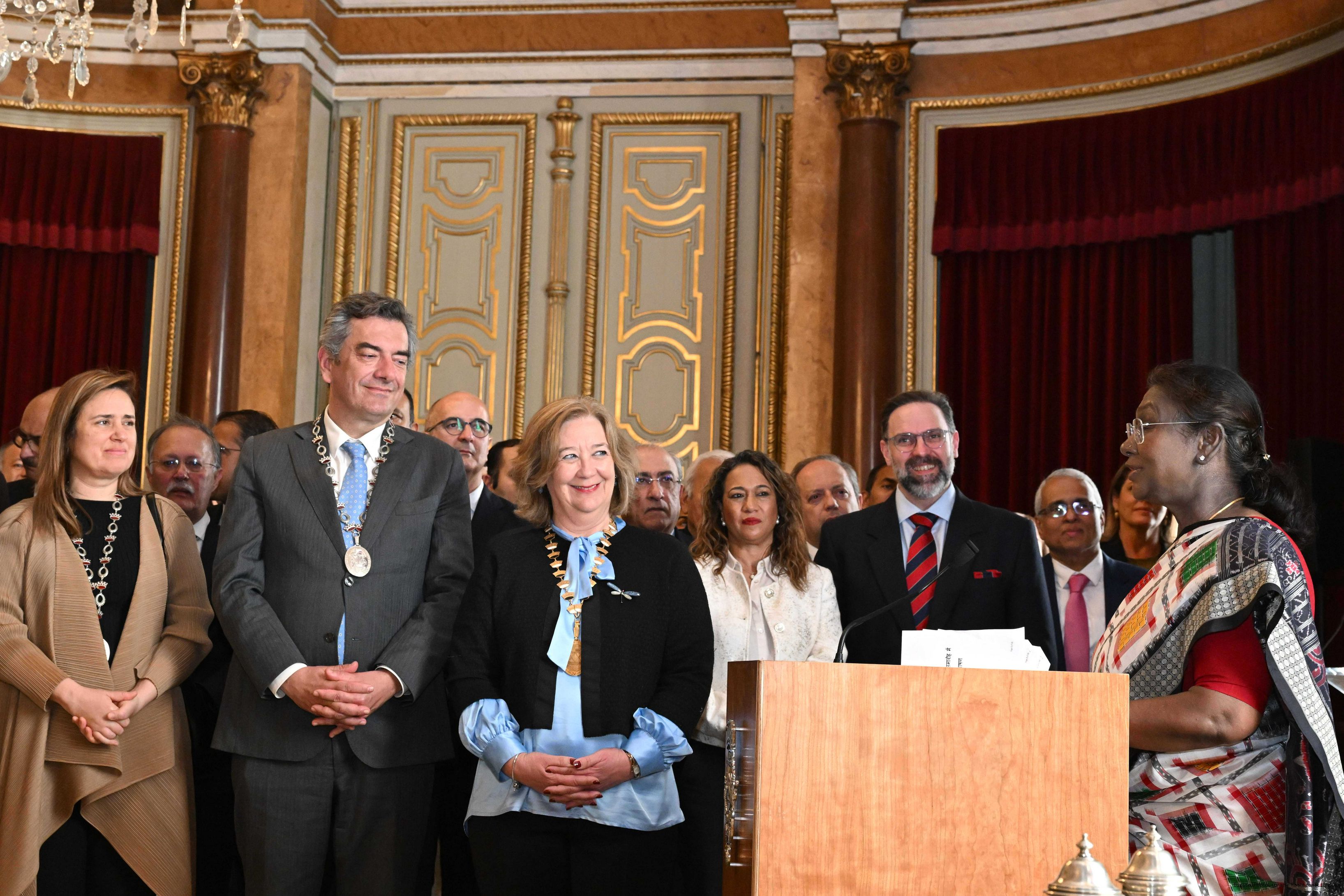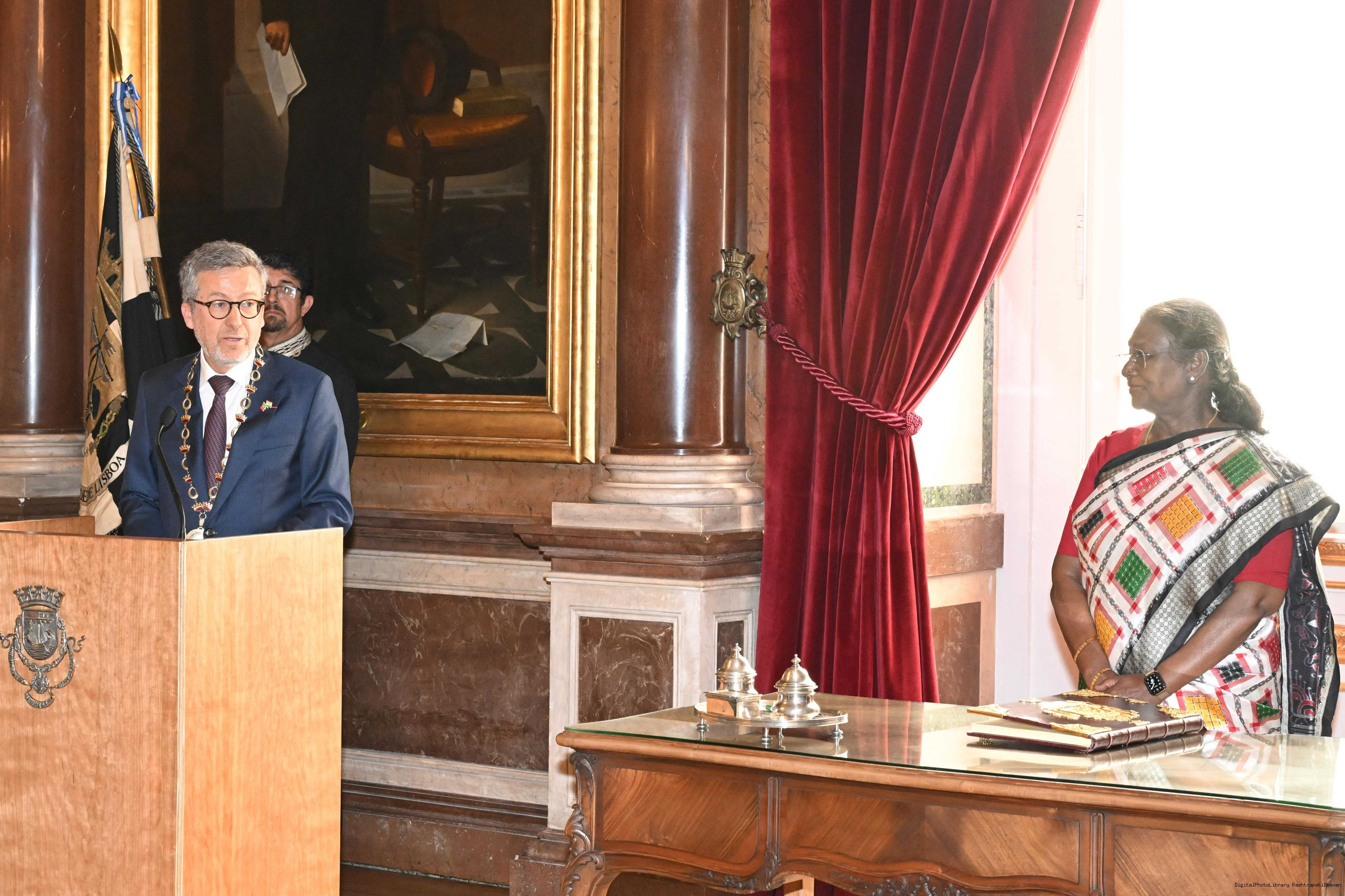 | Caption: | The President of India, Smt Droupadi Murmu received the ‘City Key of Honour’ of Lisbon City from the Mayor of Lisbon at a function held at the City Hall of Lisbon, Portugal on April 7, 2025. Vol-I |