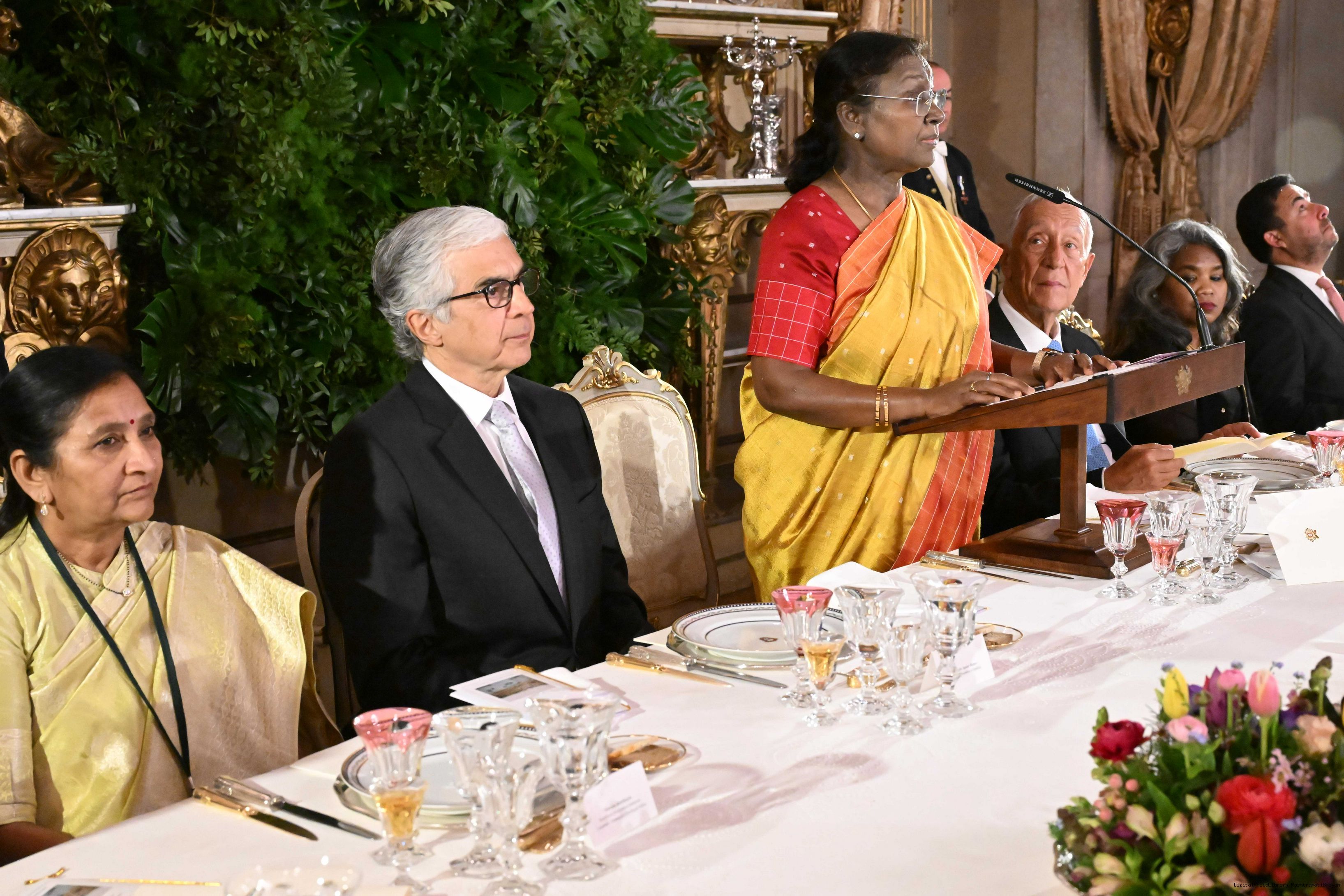 | Caption: | The President of India, Smt Droupadi Murmu attended a banquet hosted in her honour by President Marcelo Rebelo de Sousa of Portugal at Palacio da Ajuda, Lisbon on April 7, 2025. |