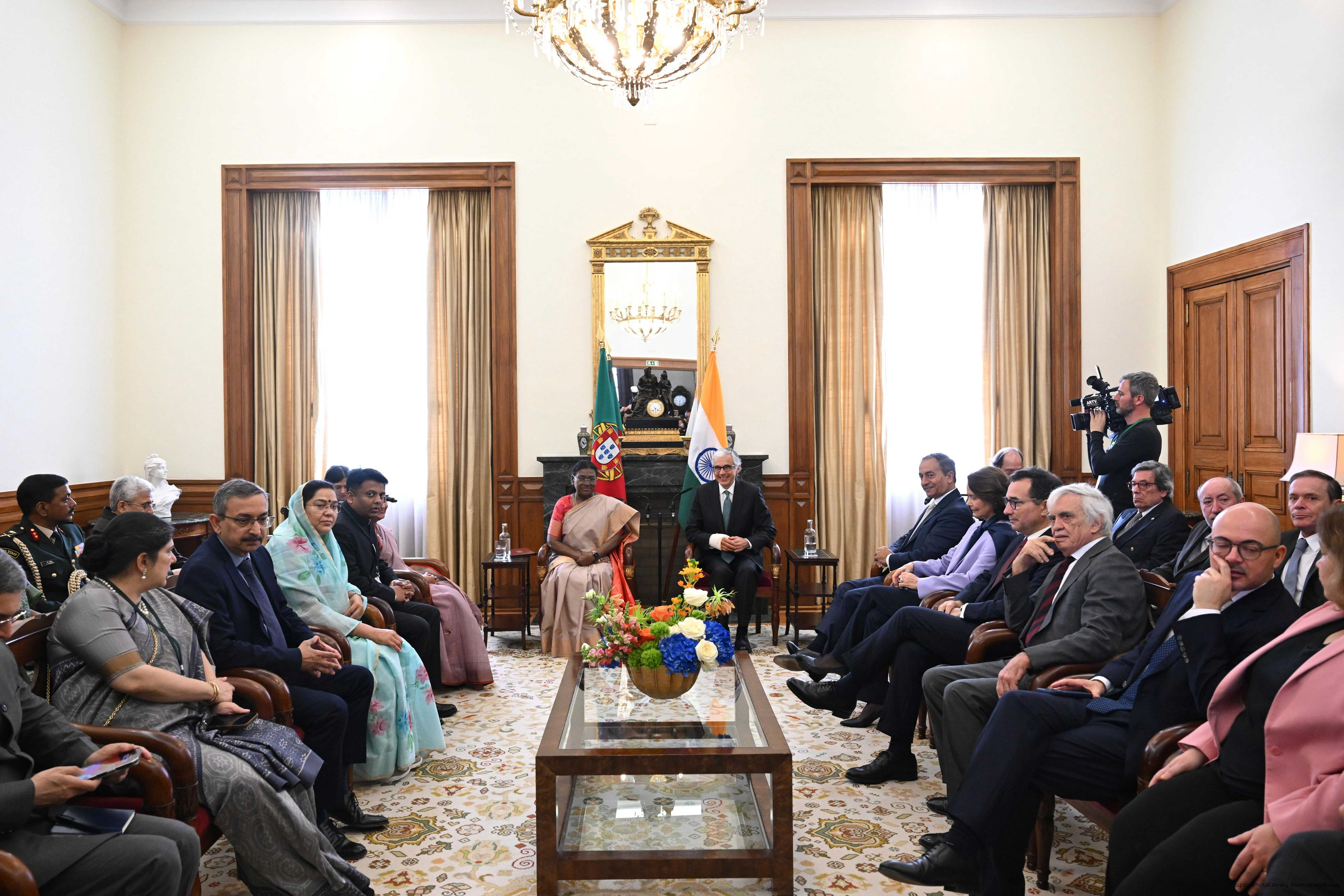 | Caption: | The President of India, Smt. Droupadi Murmu leads the Delegation Level Talks at Assembleia Da Republica Portugal on April 8, 2025. |