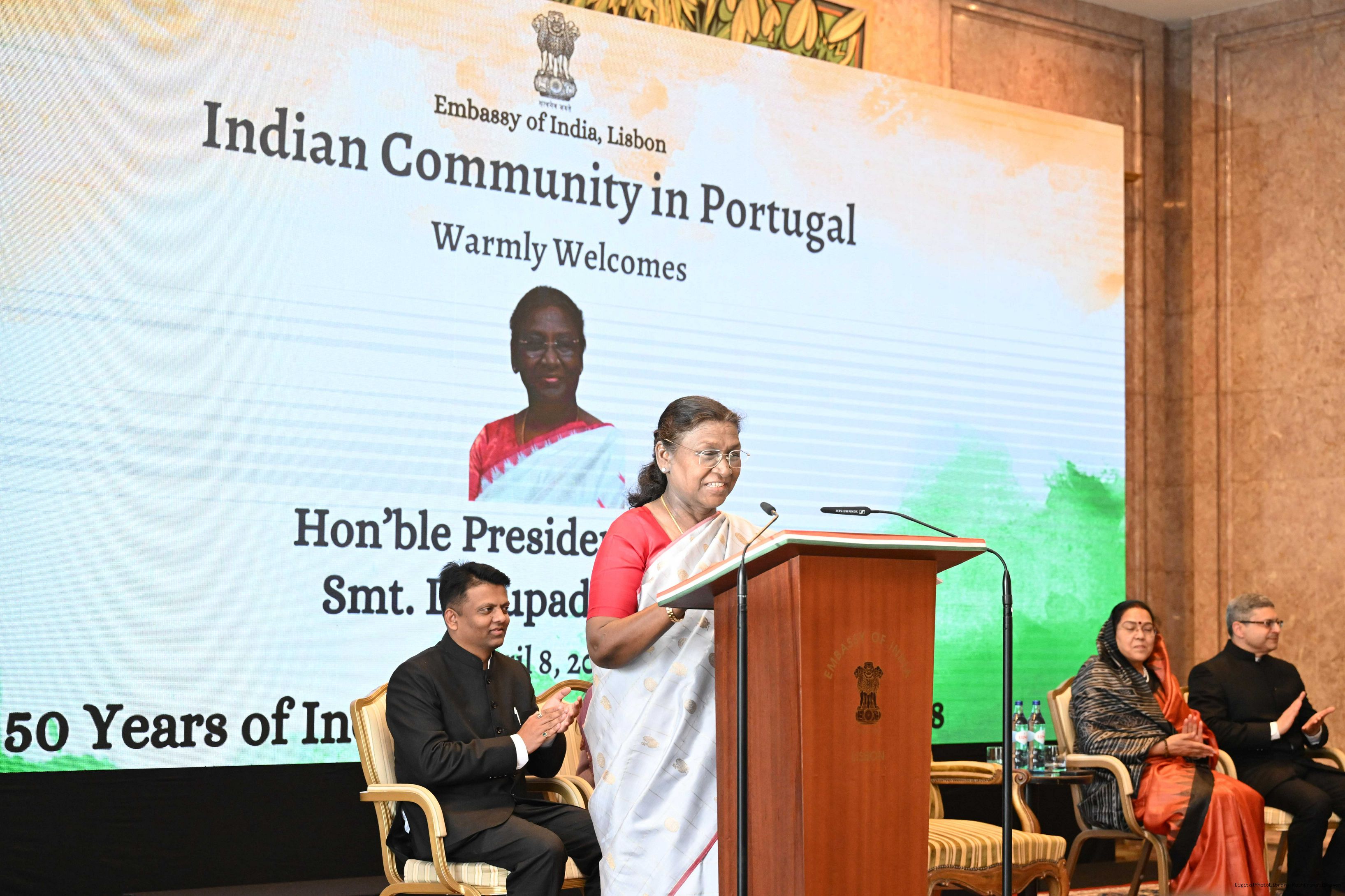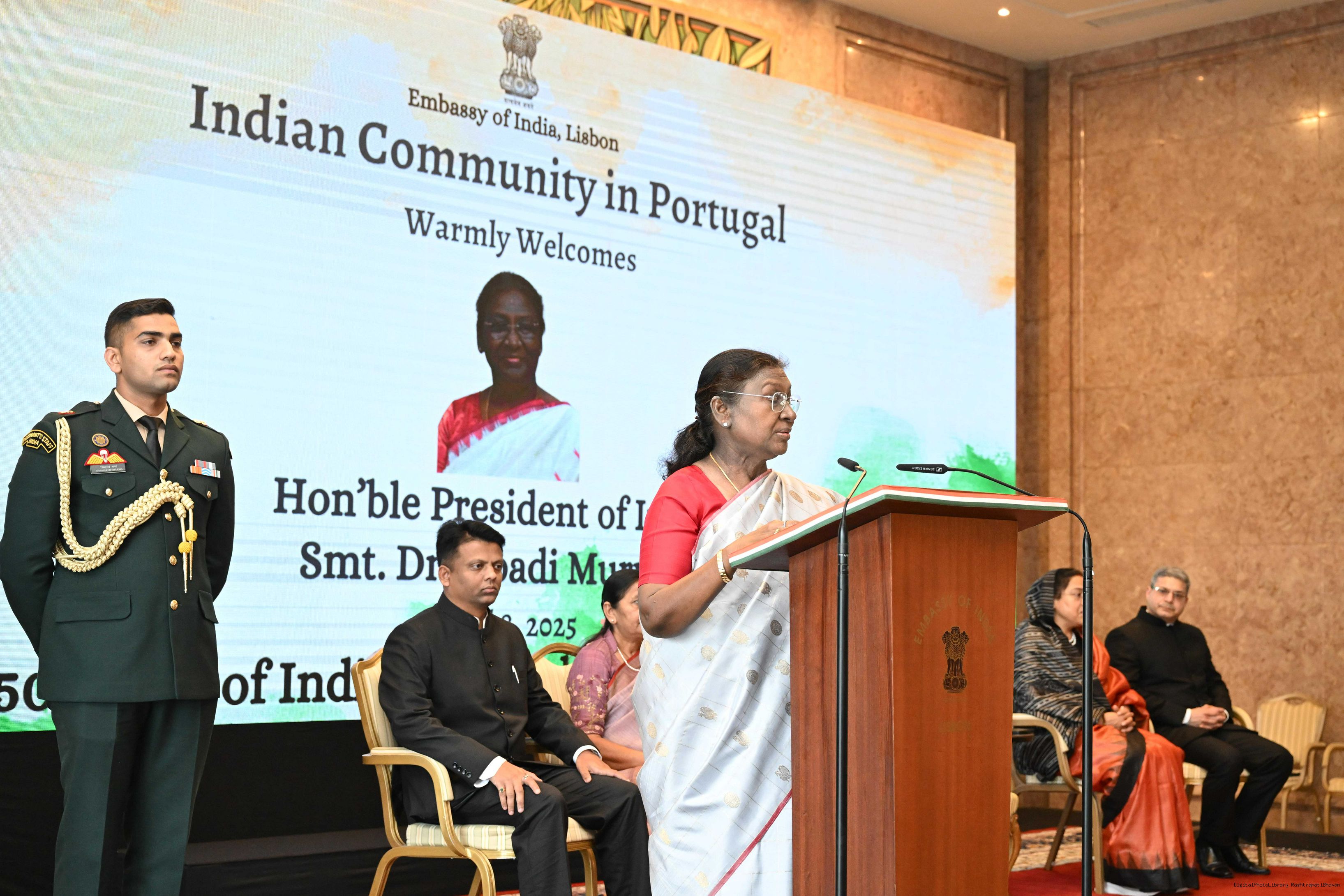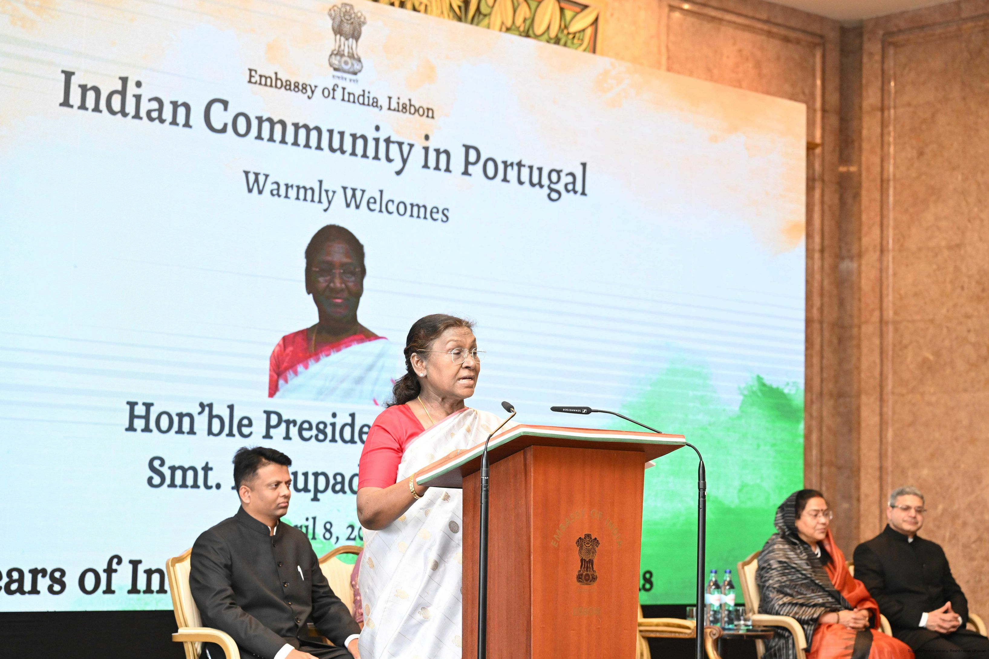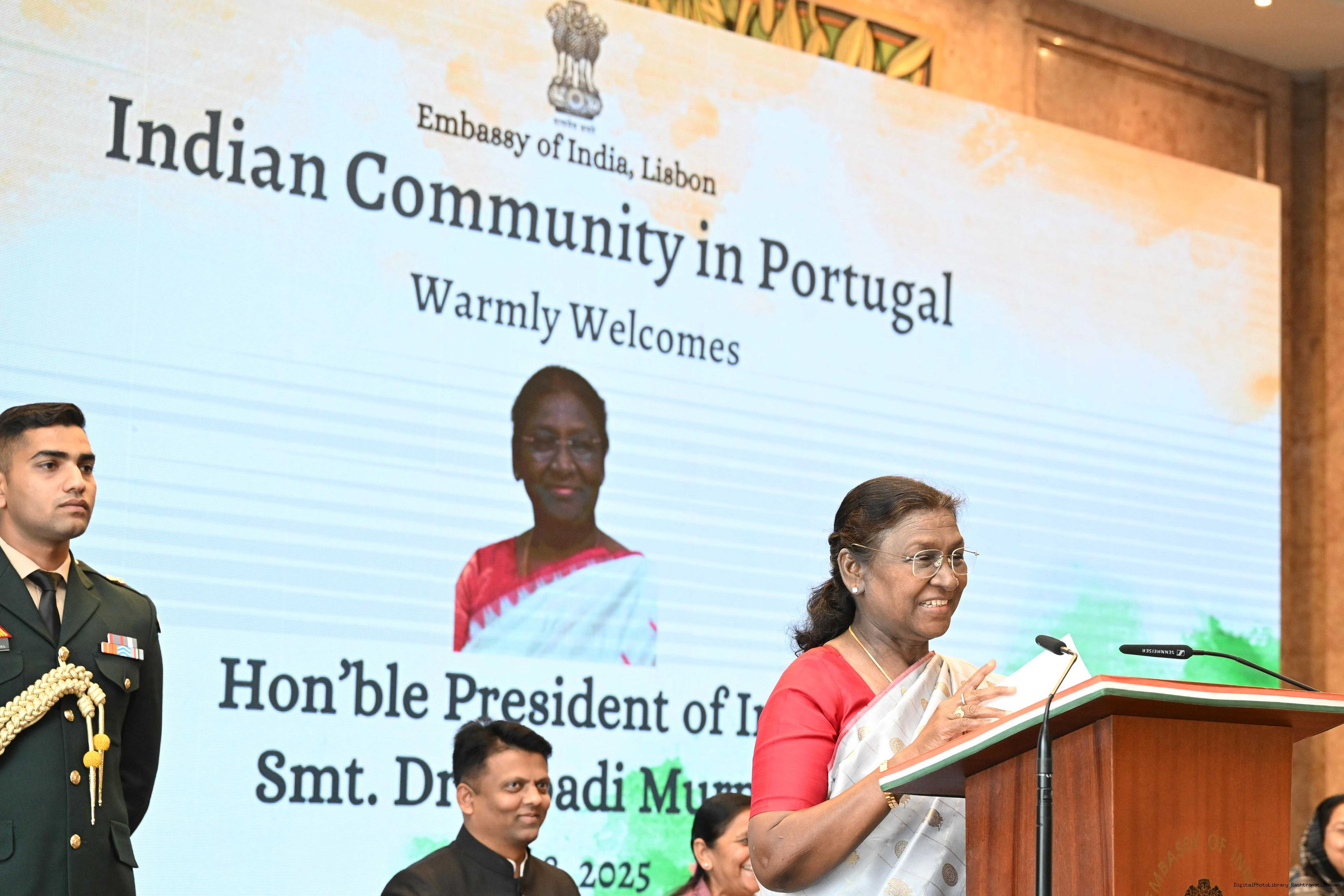 | Caption: | The President of India, Smt.Droupadi Murmu addressed the members of Indian Community at a Reception hosted by the Ambassador of India to Portugal at Lisbon on April 8, 2025. Vol-I |