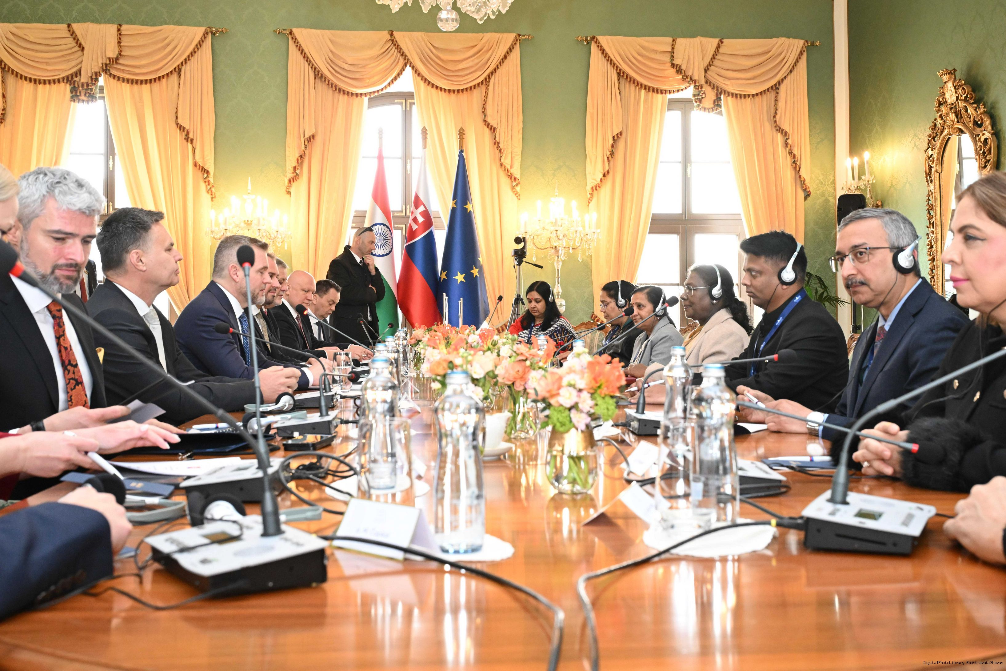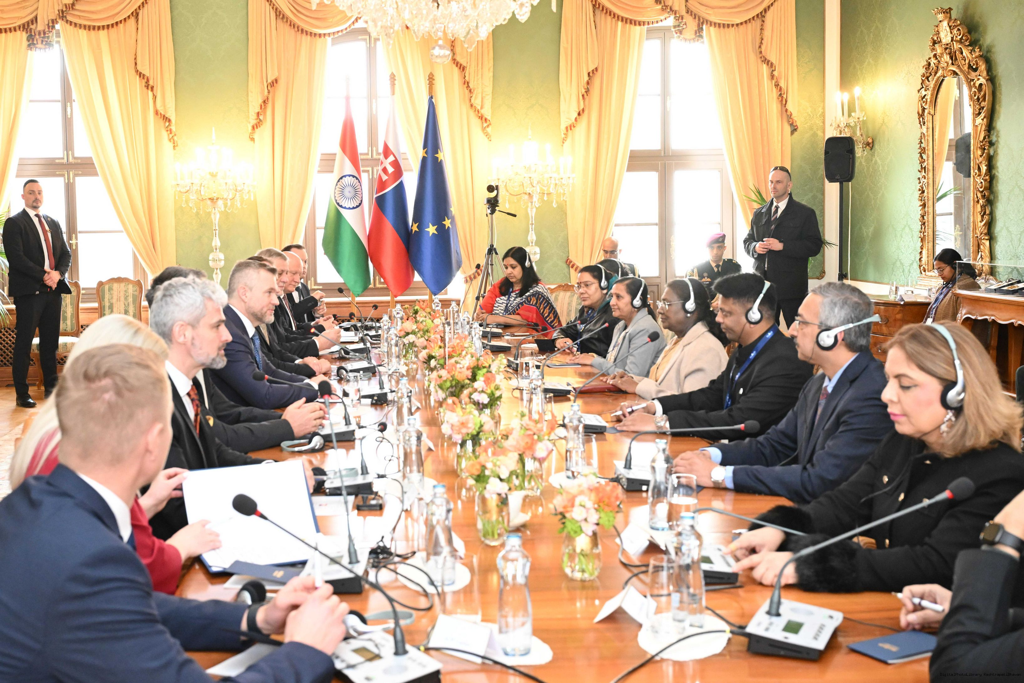 | Caption: | The President of India, Smt. Droupadi Murmu leads the Delegation Level Talks at the Presidential Palace in Bratislava, Slovak on April 9, 2025. |
