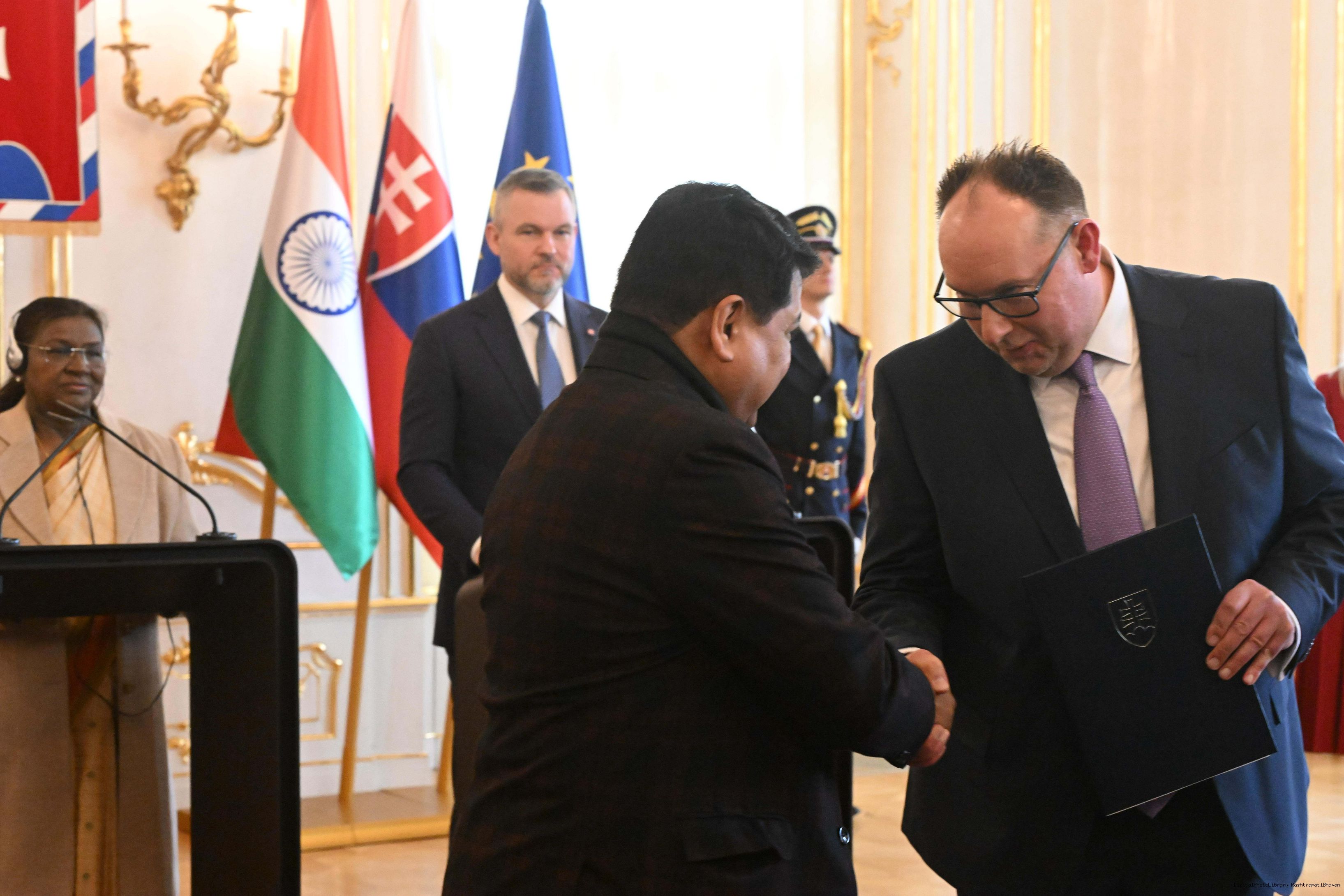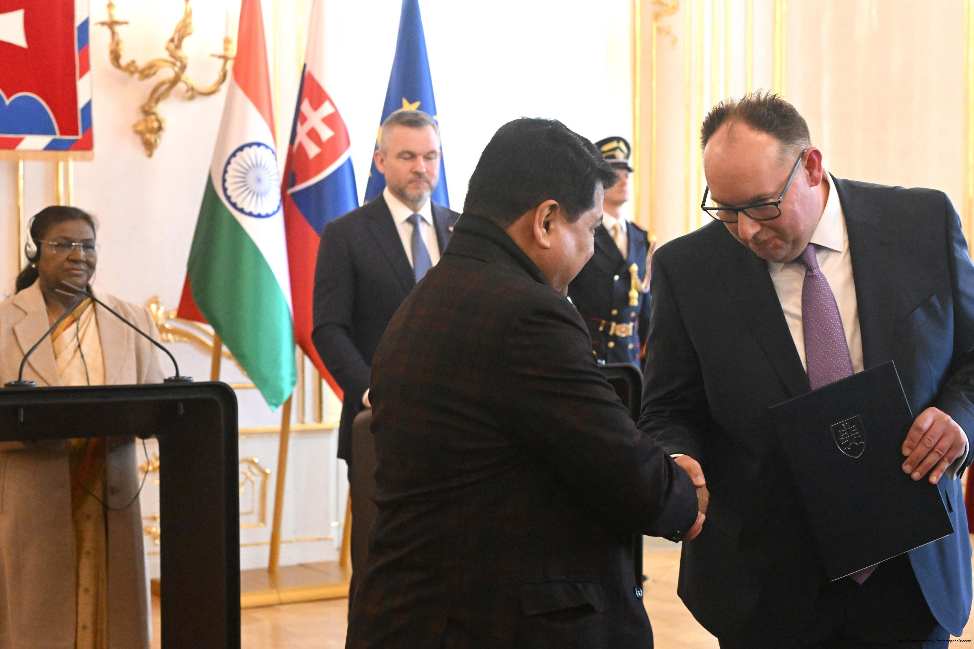 | Caption: | The President of India, Smt Droupadi Murmu Exchange of MOUs at the Presidential Palace in Bratislava, Slovak on April 9, 2025. |