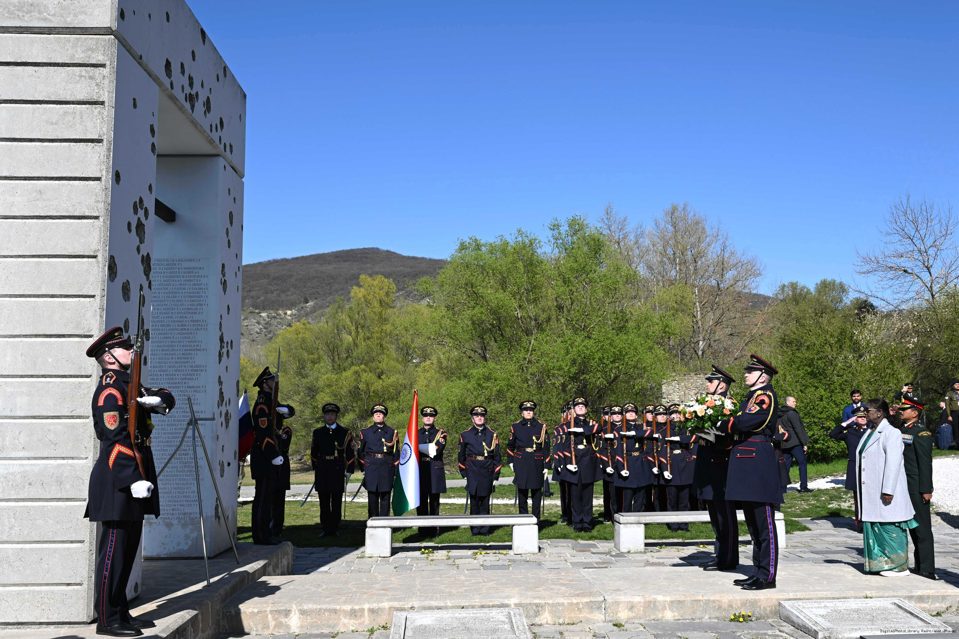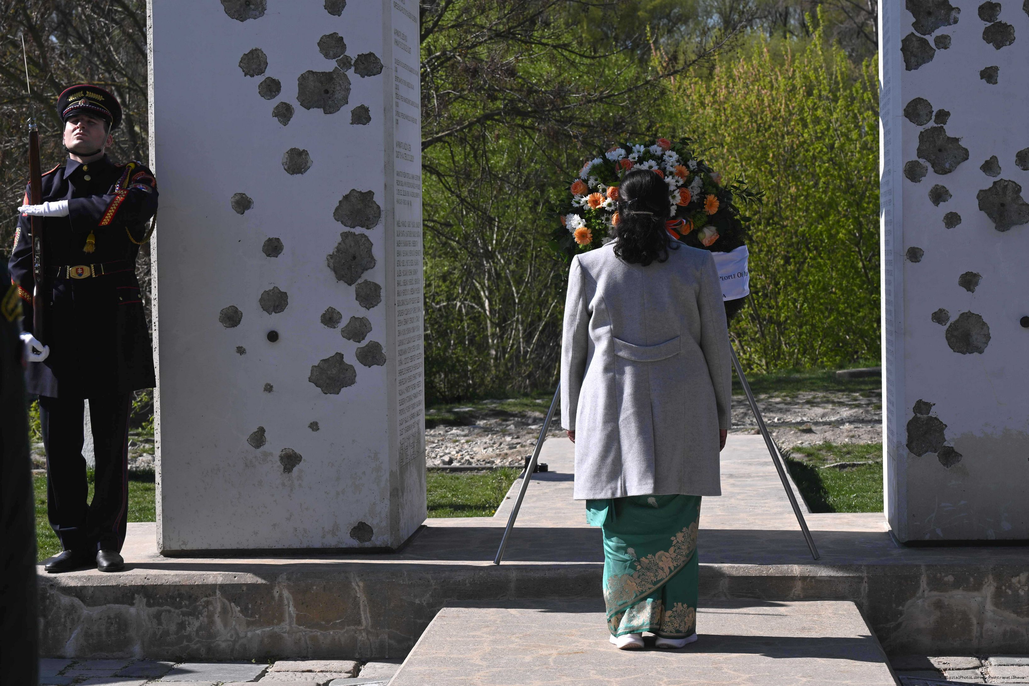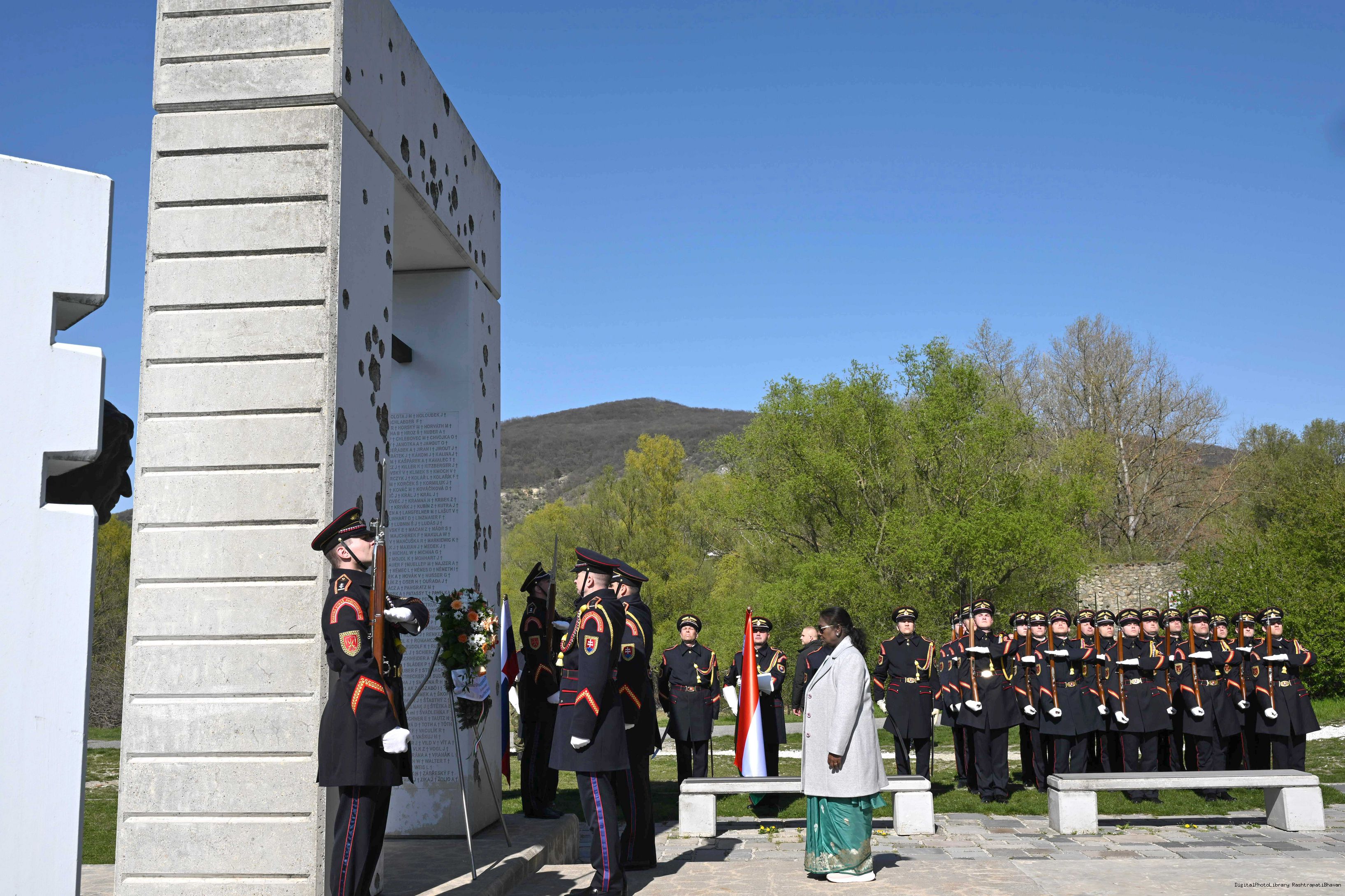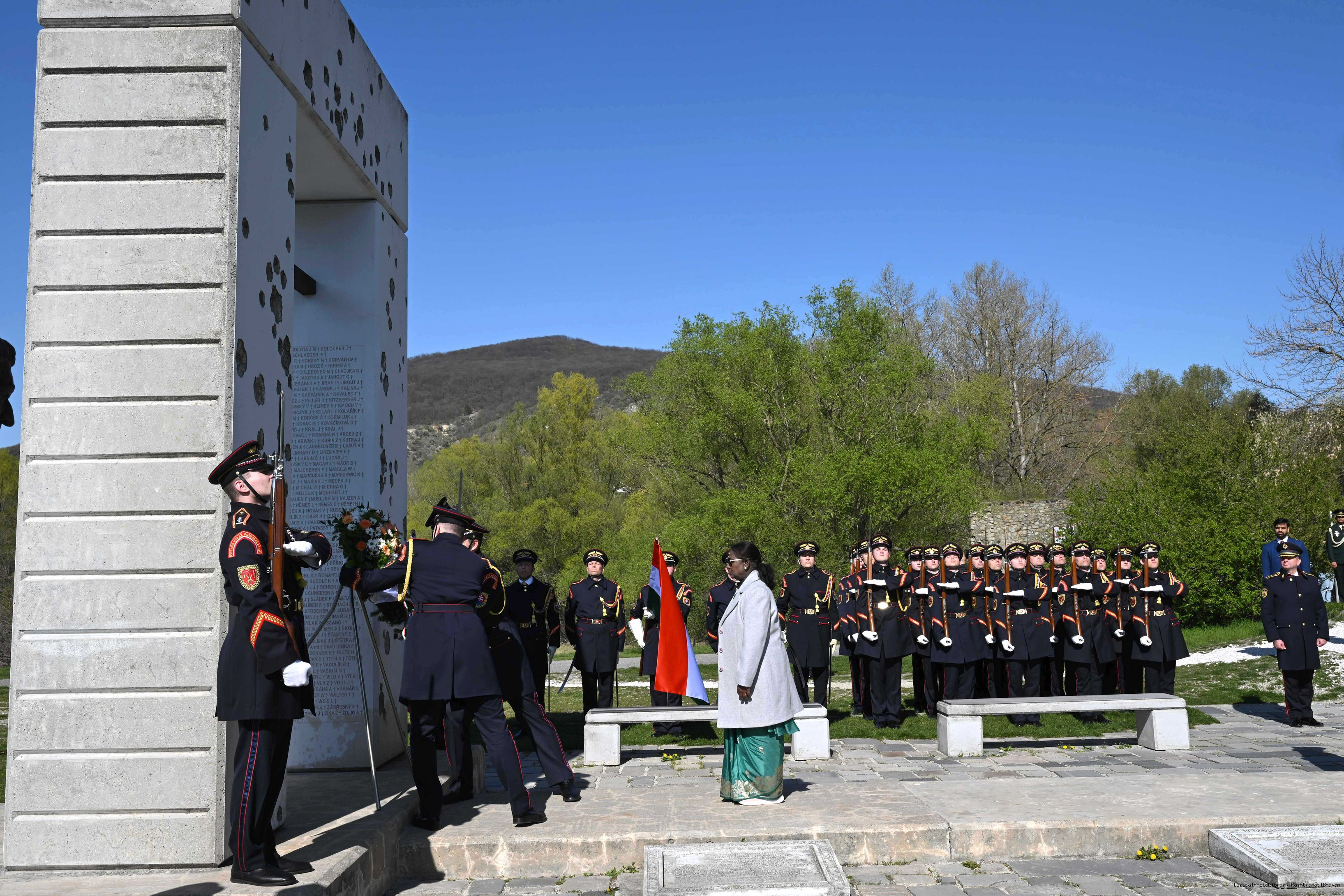 | Caption: | The President of India, Smt. Droupadi Murmu laid a wreath and paid her respects at the Gate of Freedom Memorial in Bratislava, Slovak on April 9, 2025. |