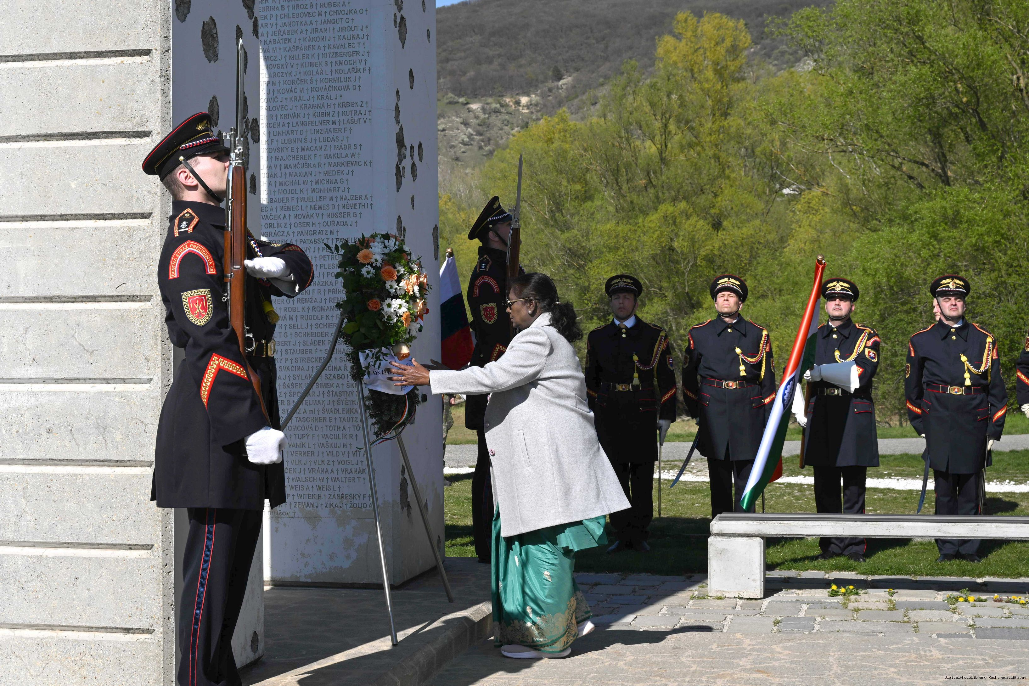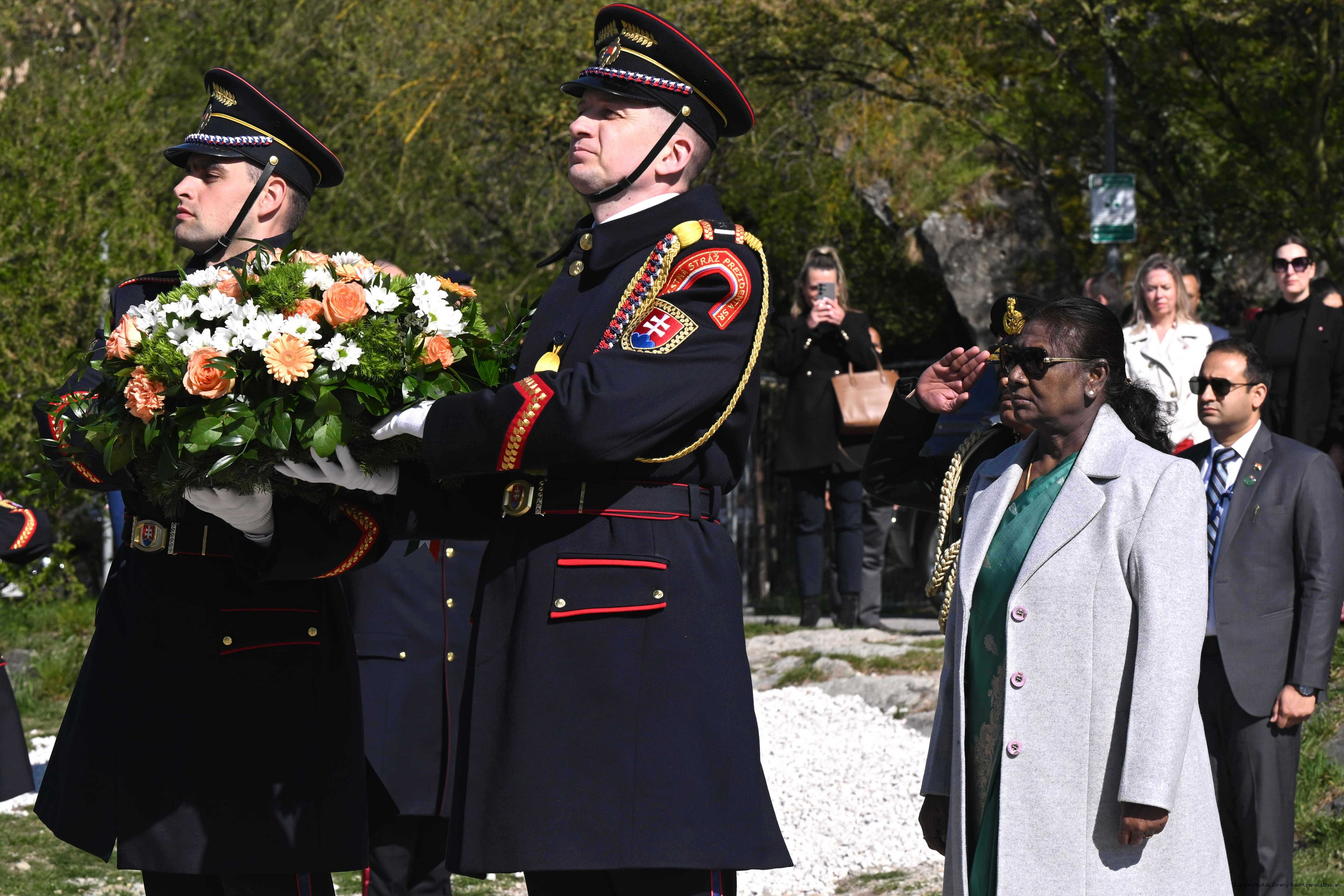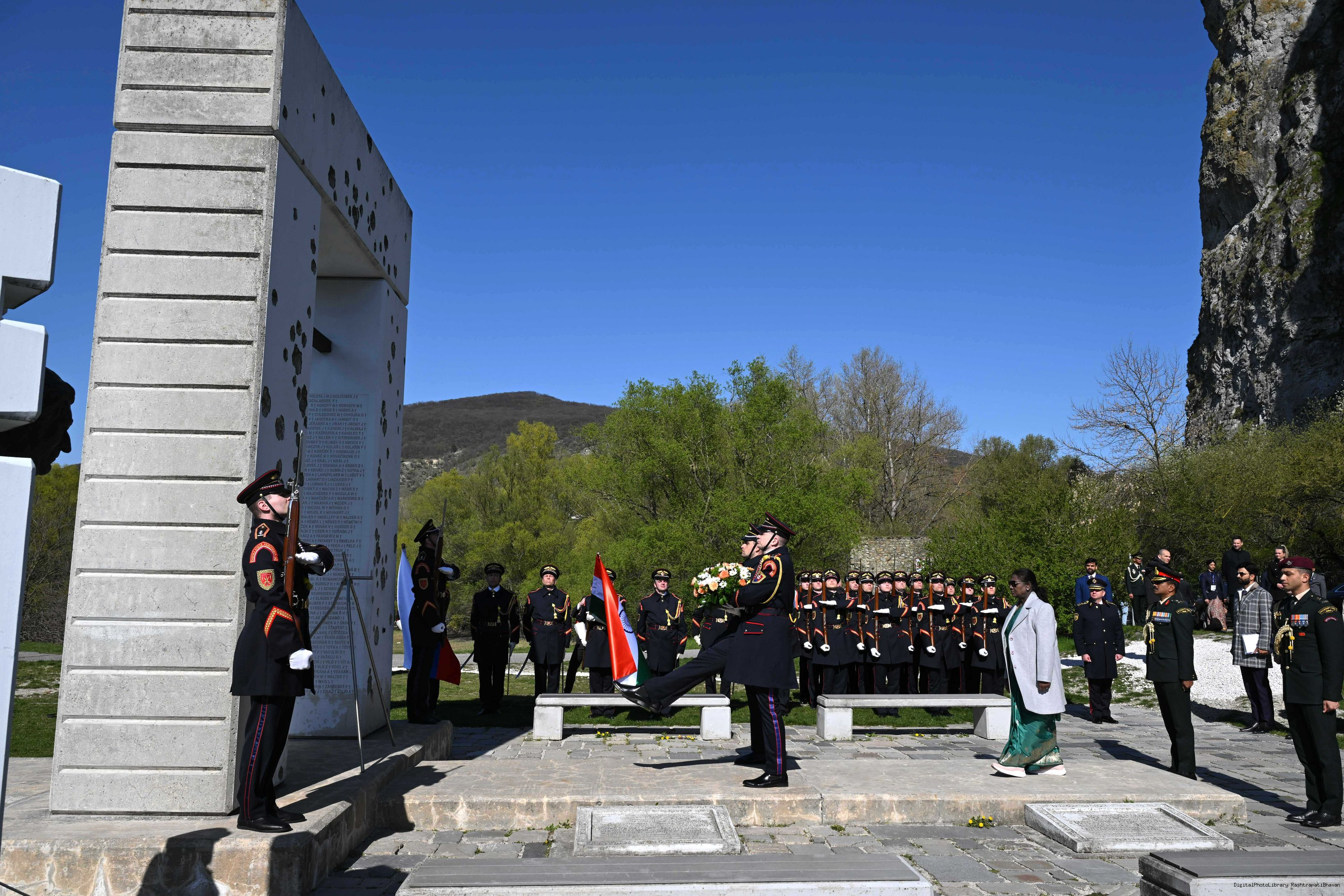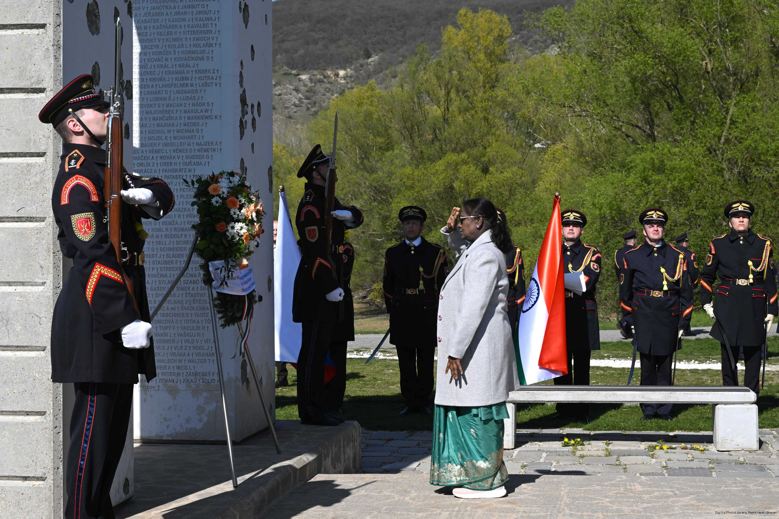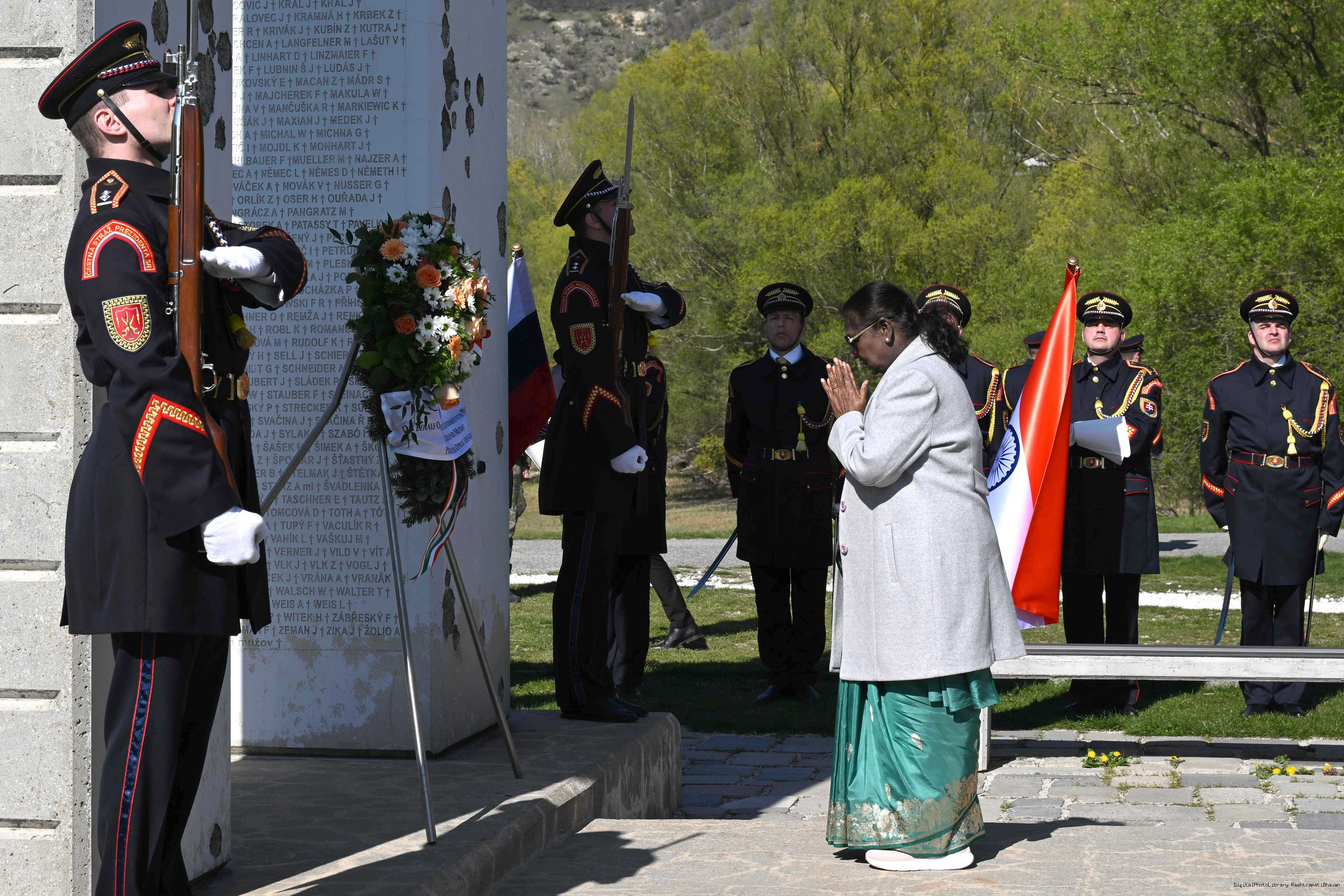 | Caption: | The President of India, Smt. Droupadi Murmu laid a wreath and paid her respects at the Gate of Freedom Memorial in Bratislava, Slovak on April 9, 2025. |