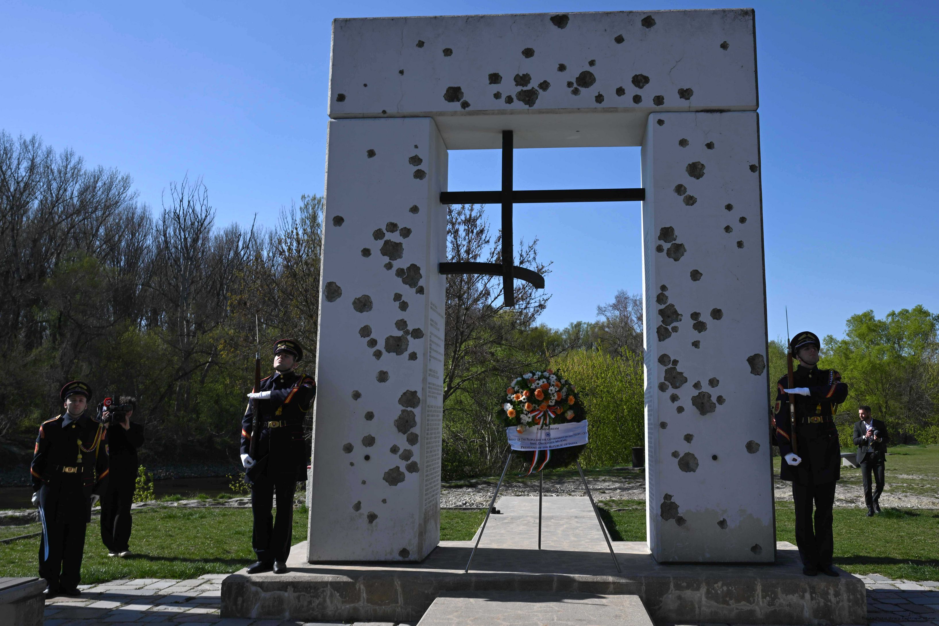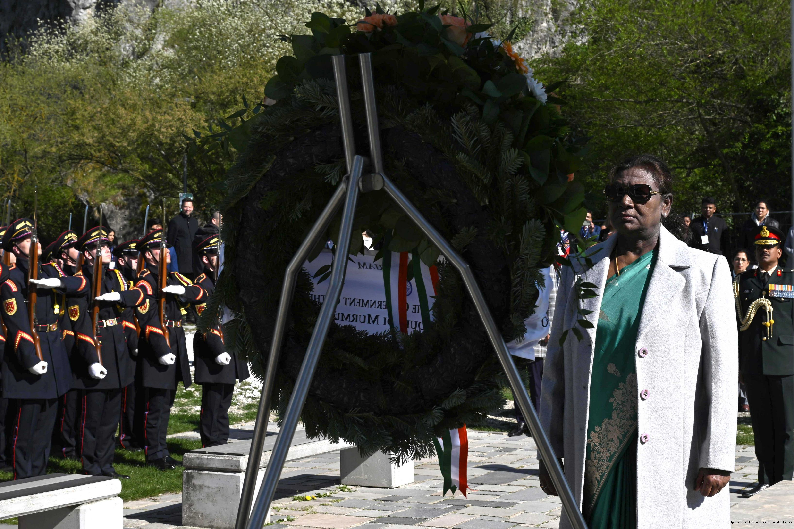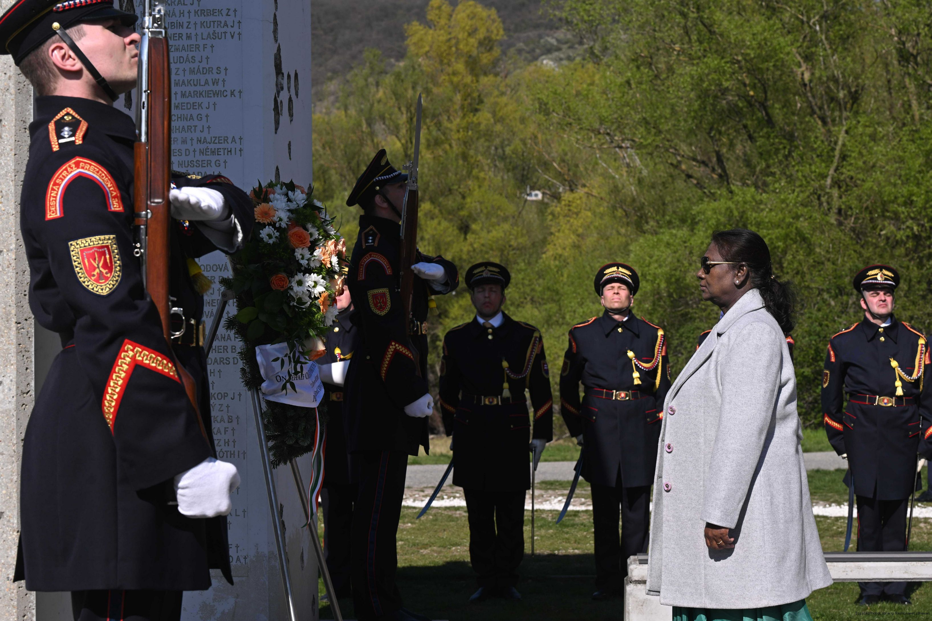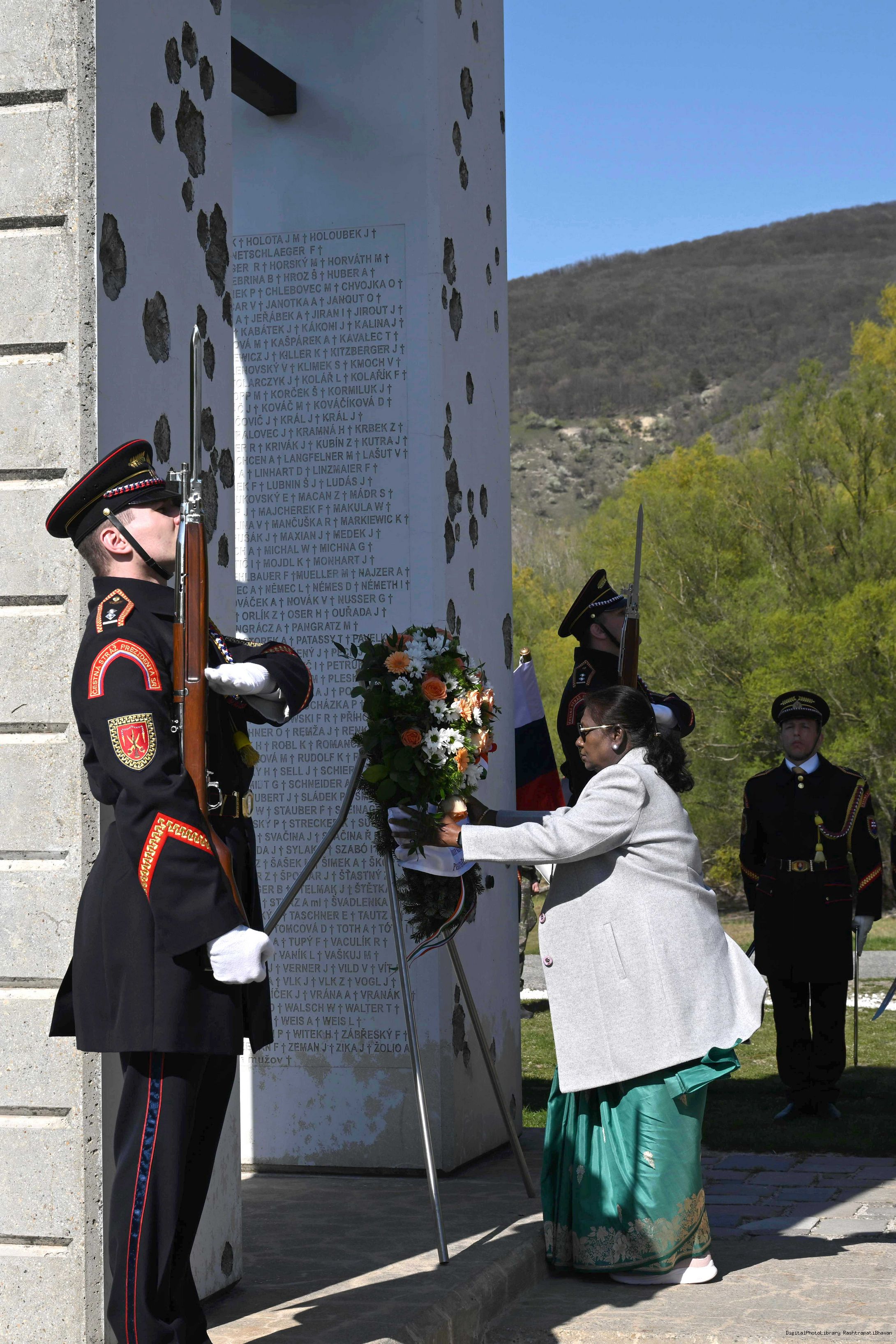 | Caption: | The President of India, Smt. Droupadi Murmu laid a wreath and paid her respects at the Gate of Freedom Memorial in Bratislava, Slovak on April 9, 2025. |