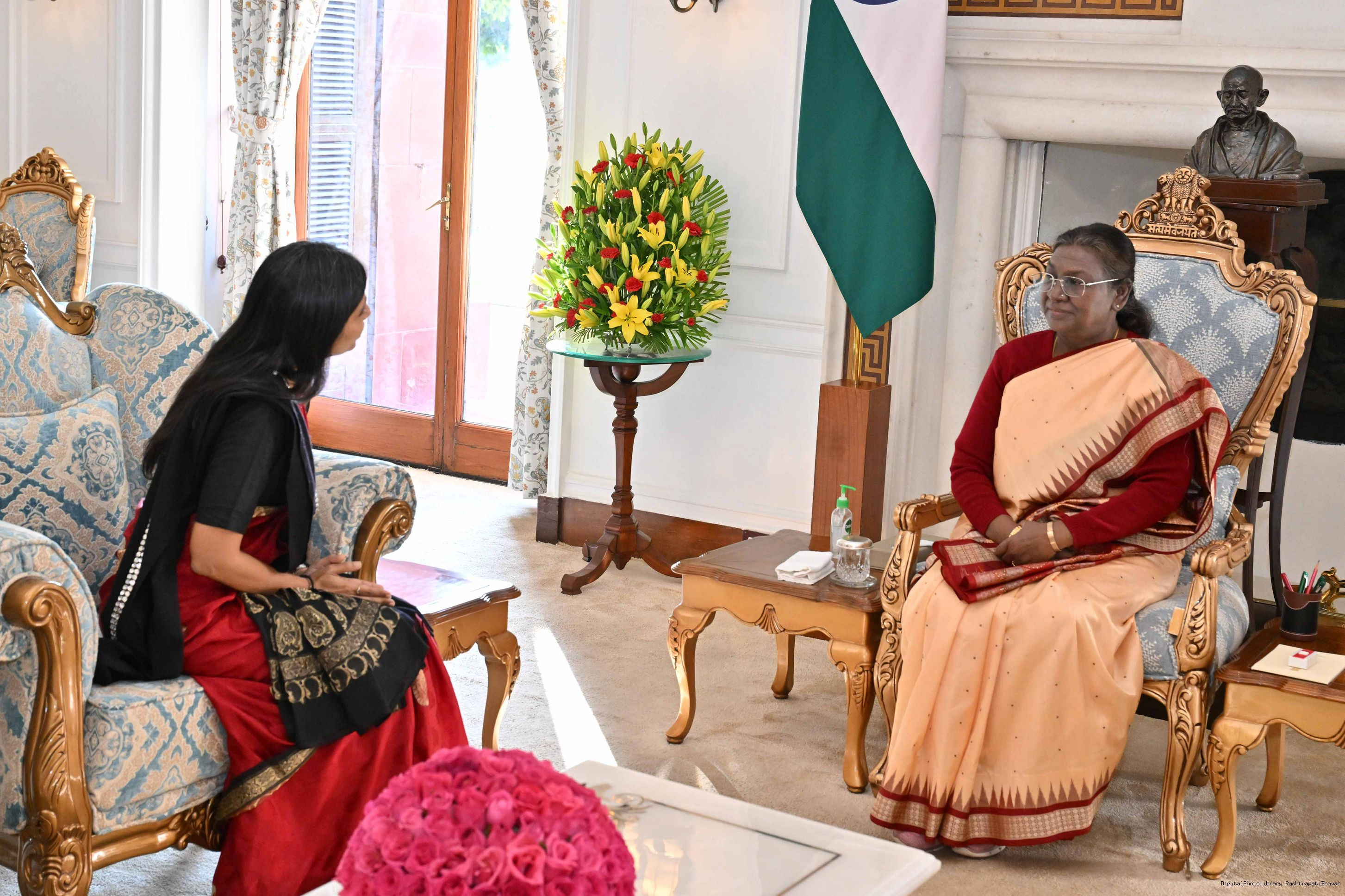 | Caption: | The Ambassador-designate of India to Tunisia, Dr. Devyani Khobragade meeting with the President of India, Smt. Droupadi Murmu at Rashtrapati Bhavan on January 23, 2025. |