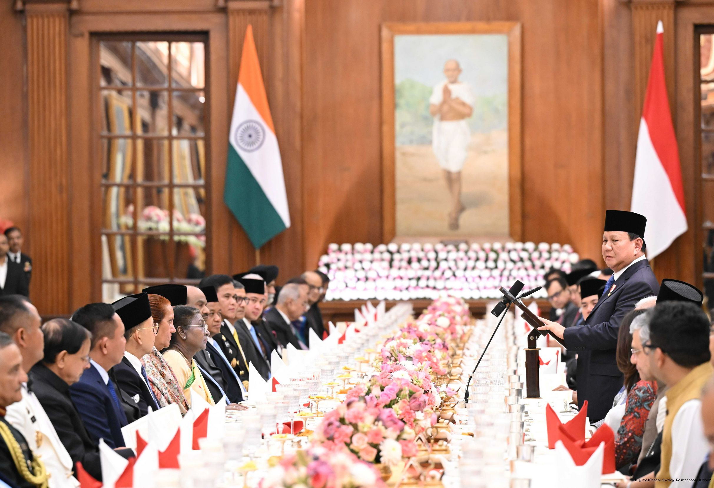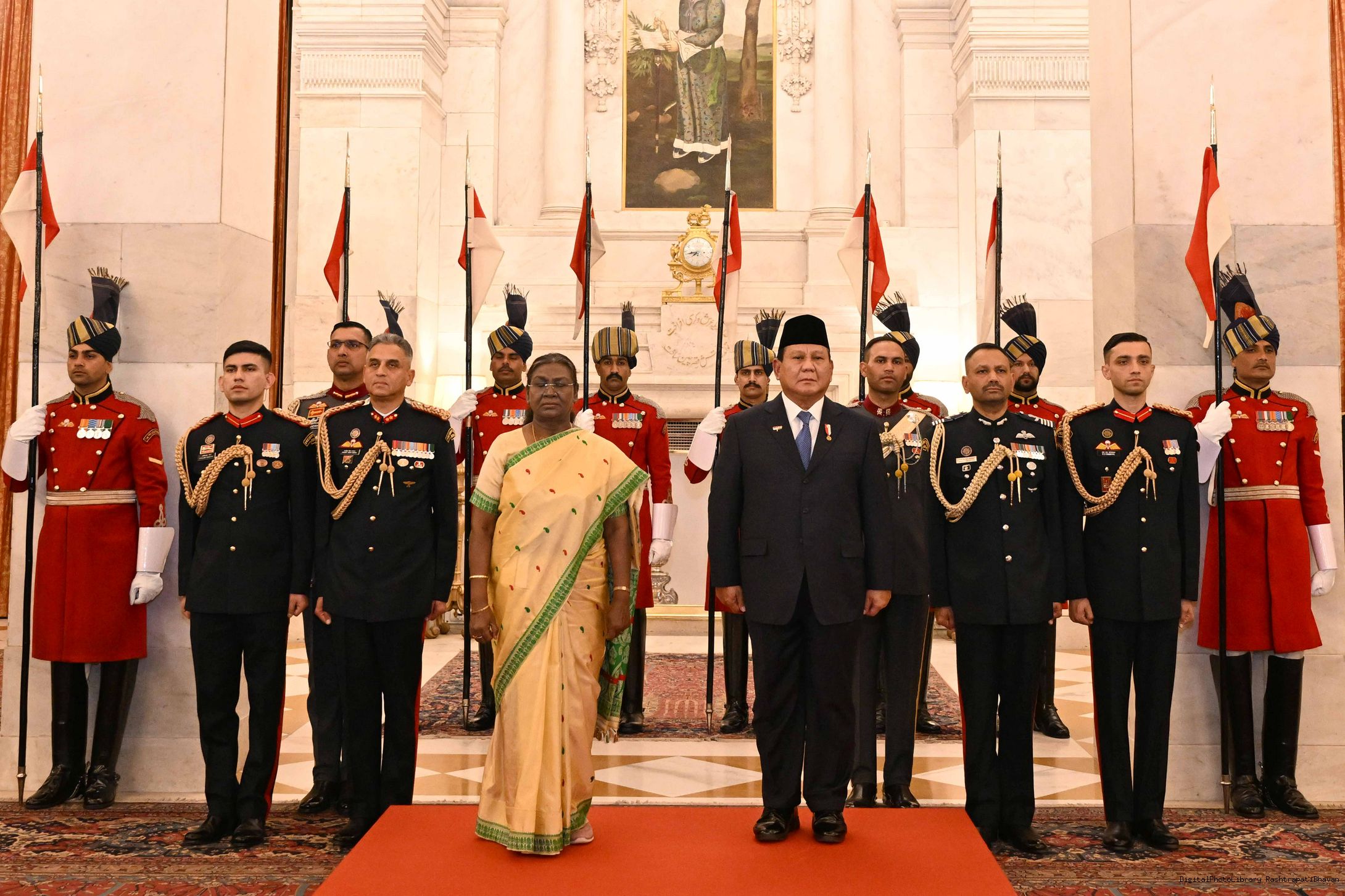 | Caption: | The President of India, Smt Droupadi Murmu hosted a banquet in his honour H.E. Mr Prabowo Subianto, President of the Republic of Indonesia at Rashtrapati Bhavan, New Delhi on January 25, 2025. |