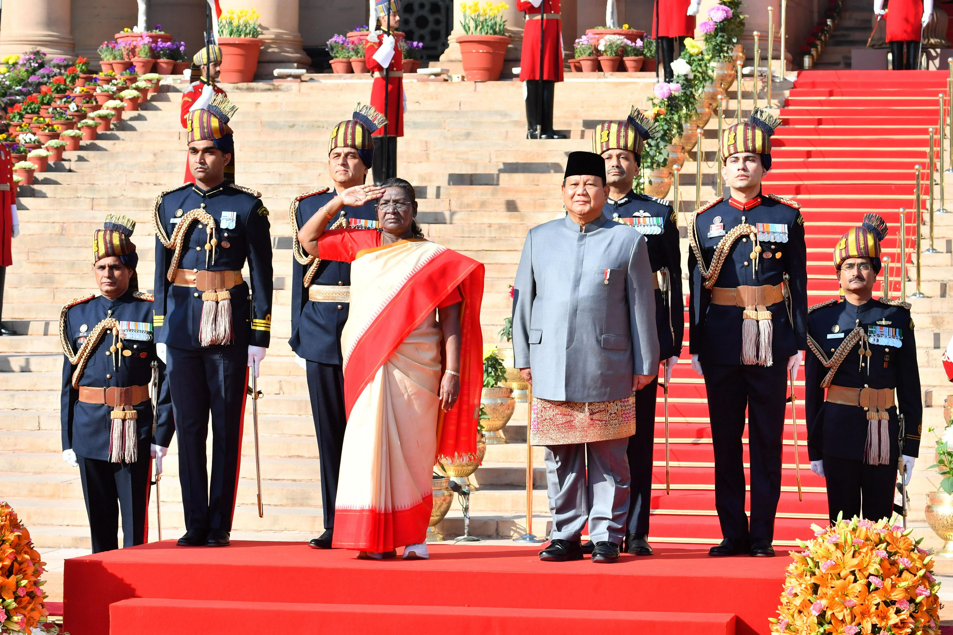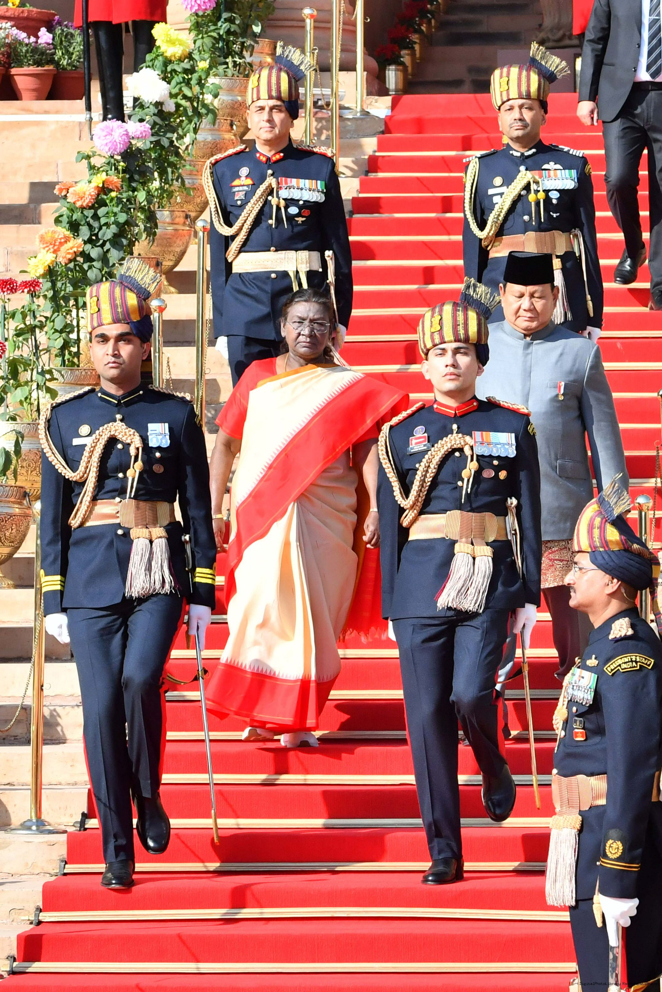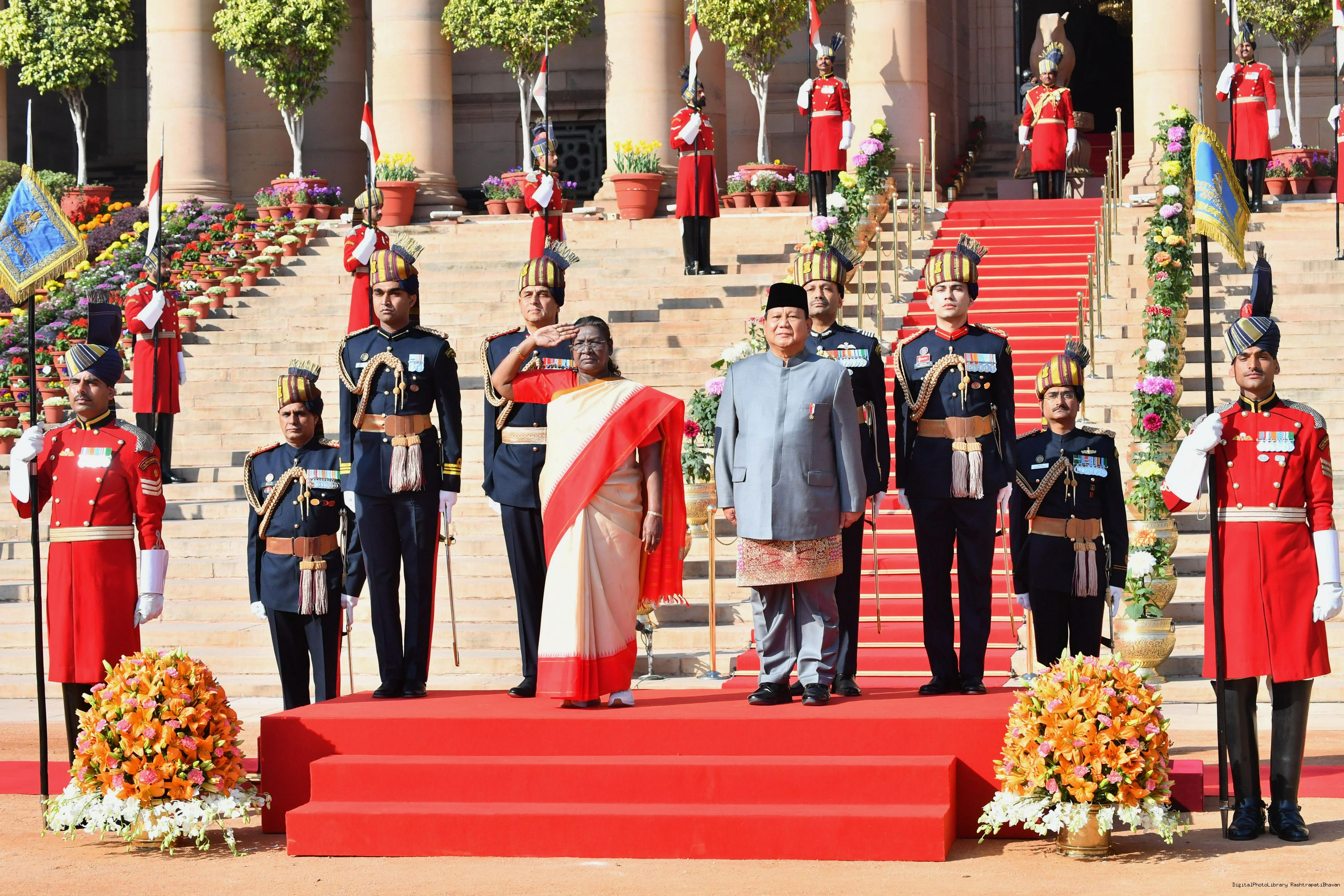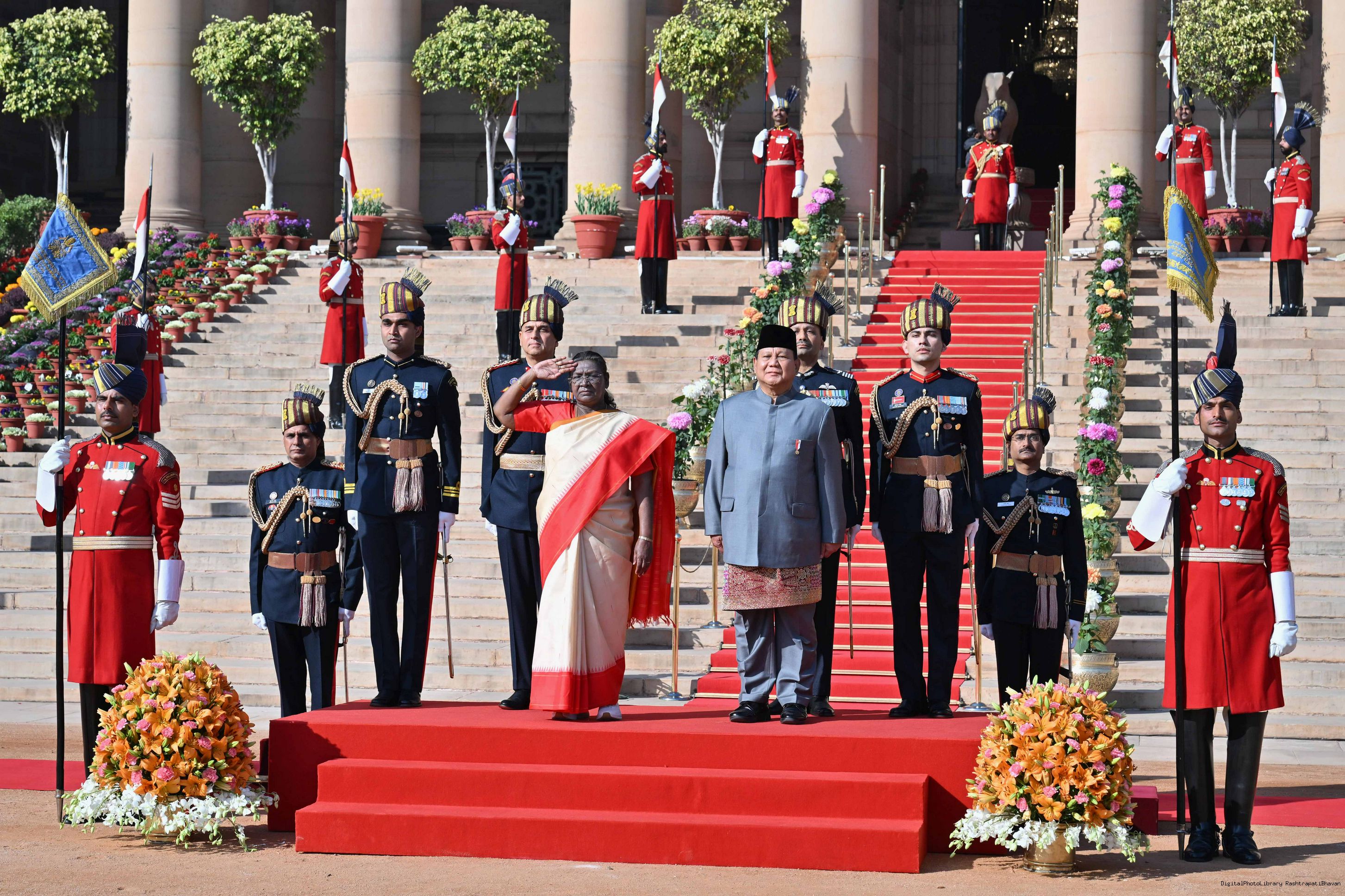 The PBG presenting the National Salute to the President of India, Smt. Droupadi Murmu at Rashtrapati Bhavan in New Delhi on January 26, 2025.