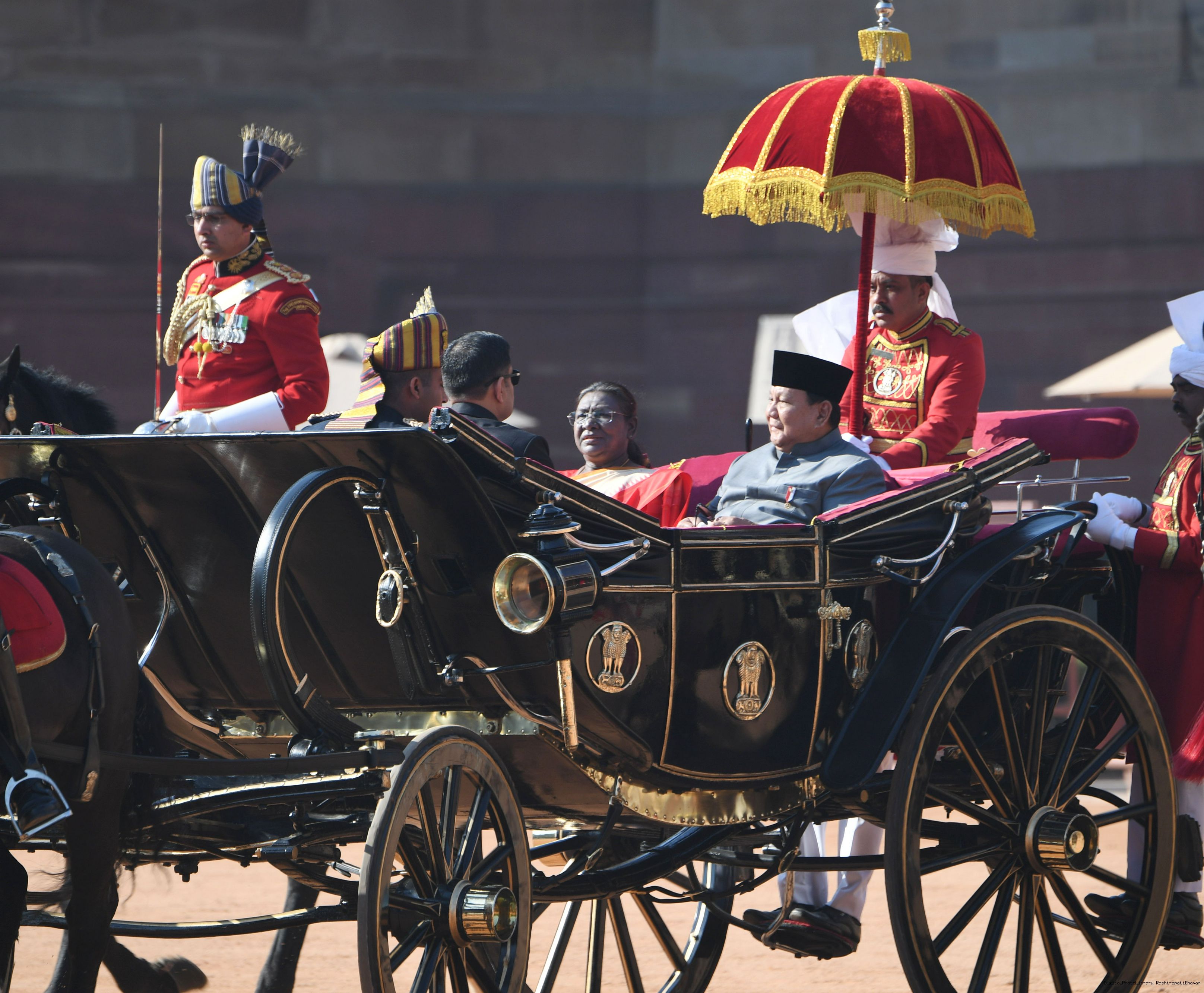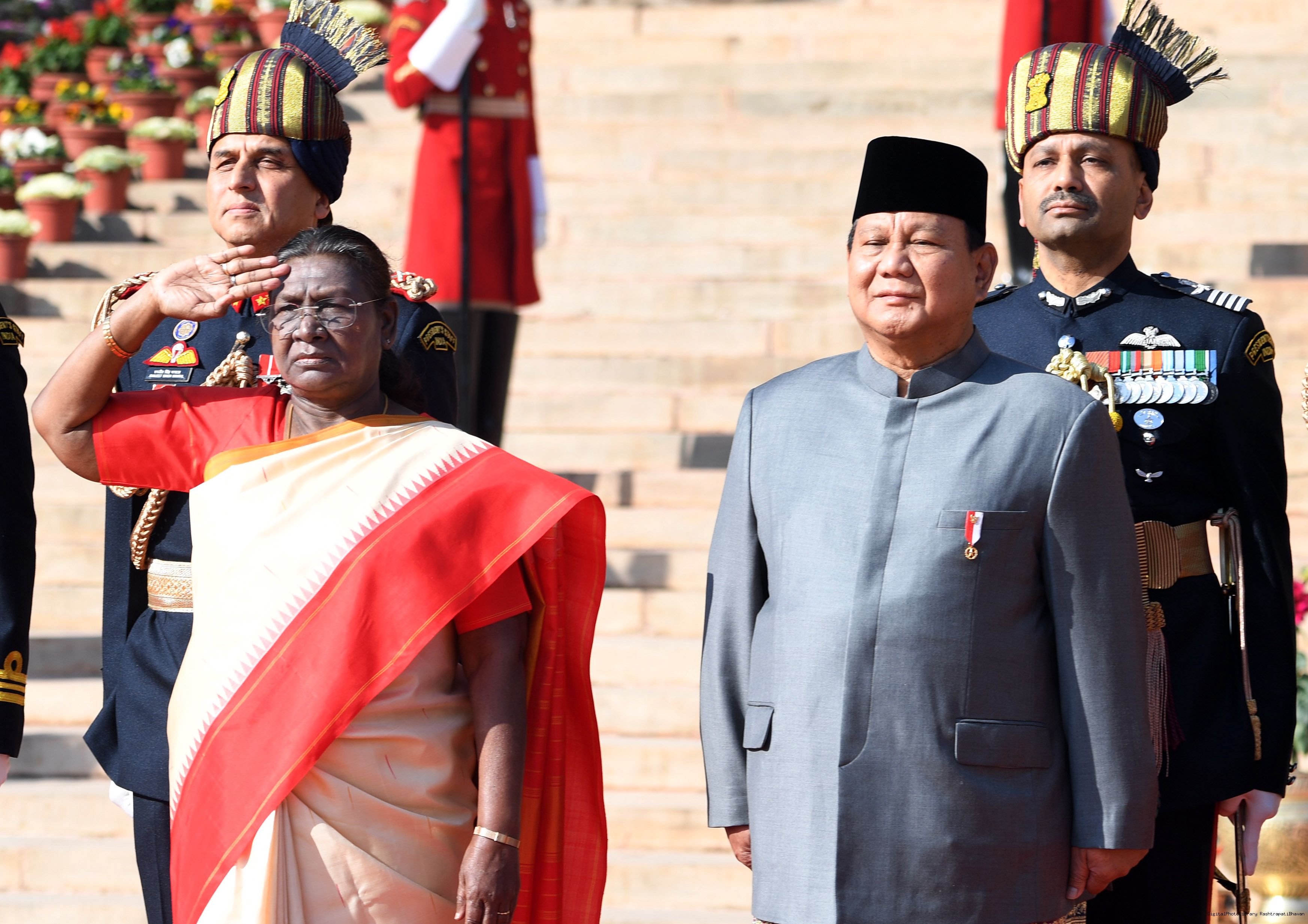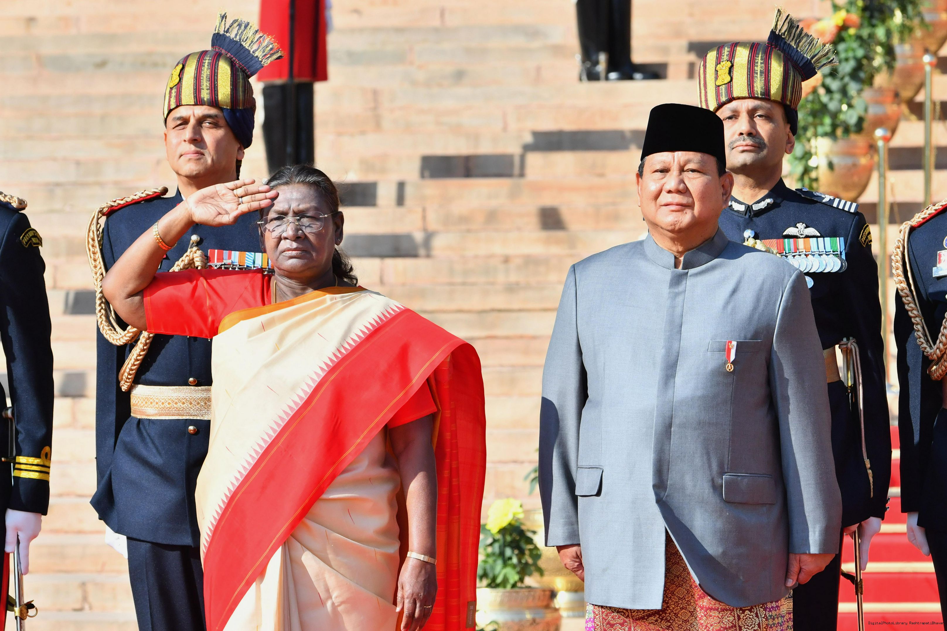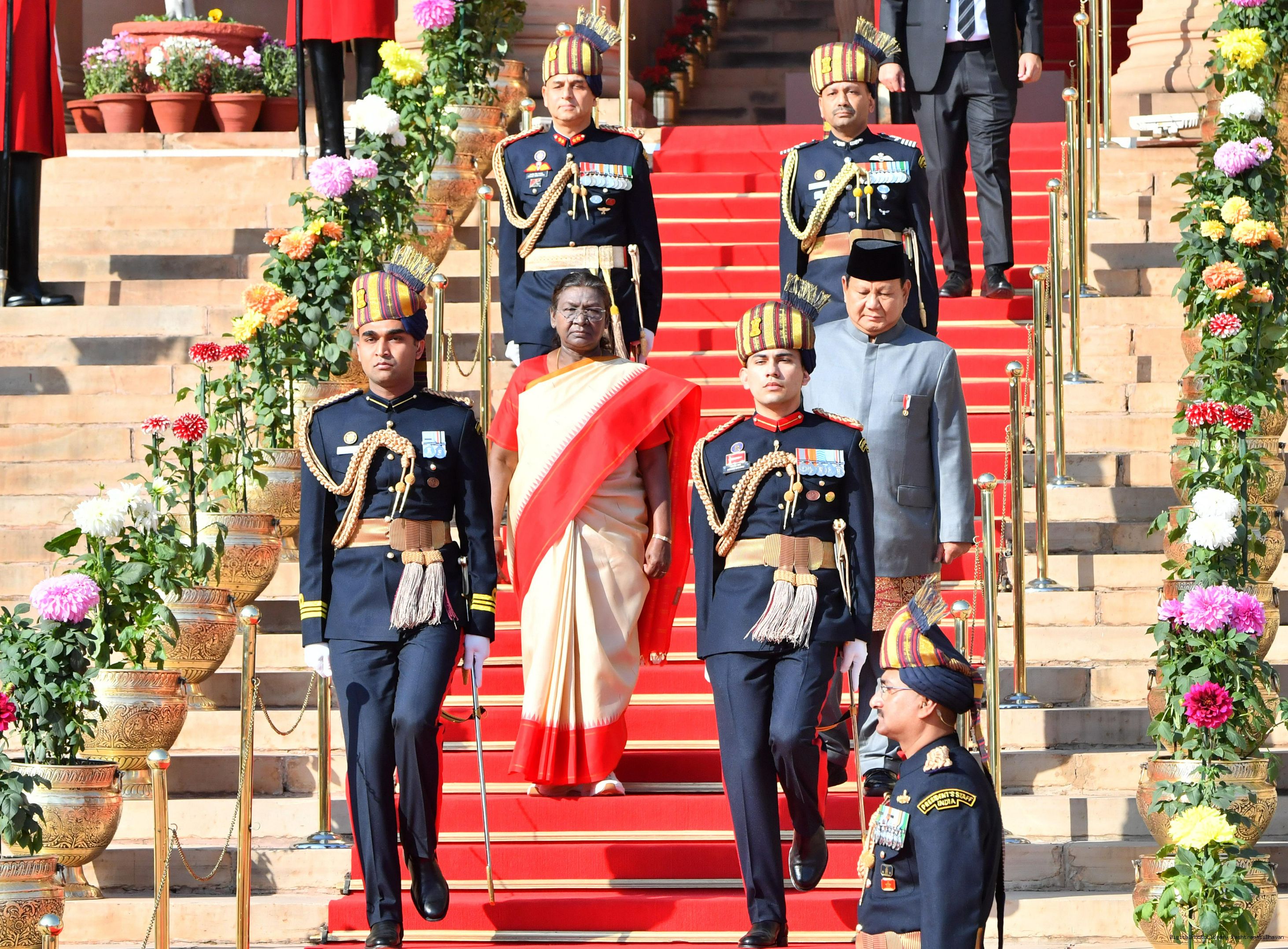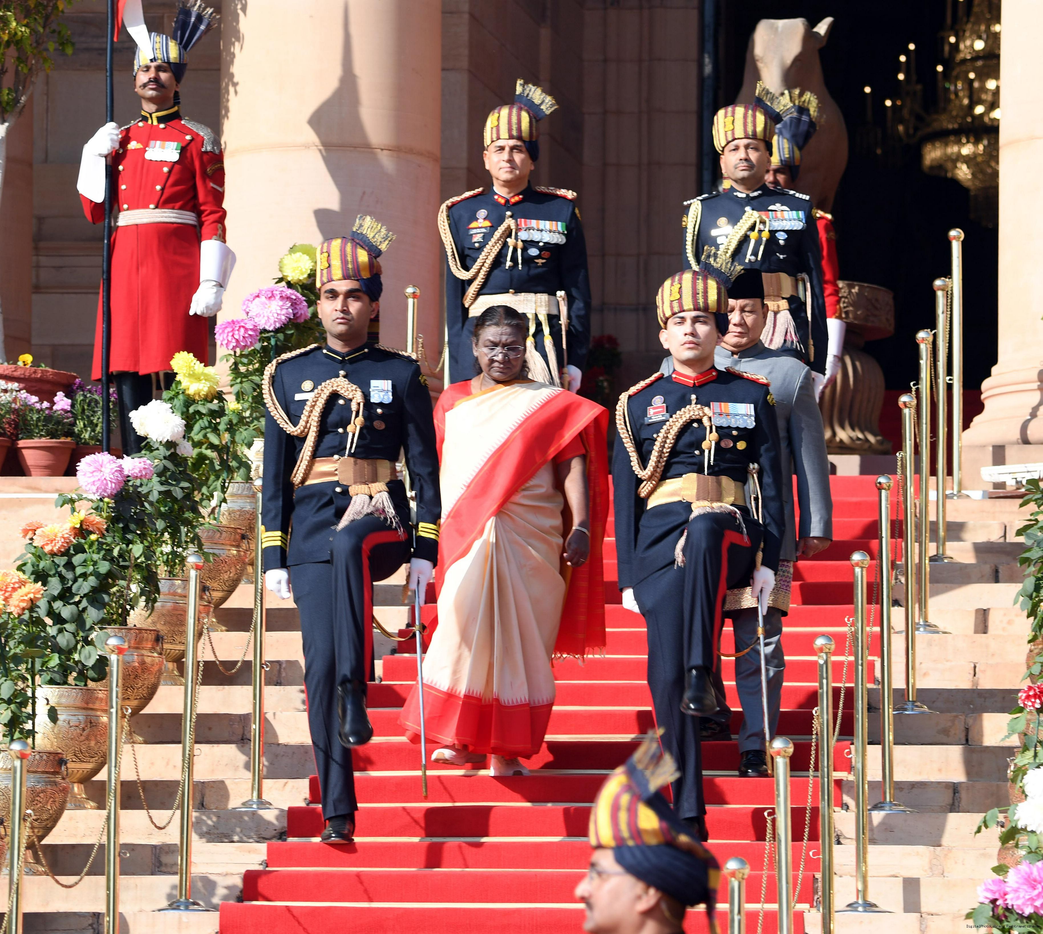 The PBG presenting the National Salute to the President of India, Smt. Droupadi Murmu at Rashtrapati Bhavan in New Delhi on January 26, 2025.
