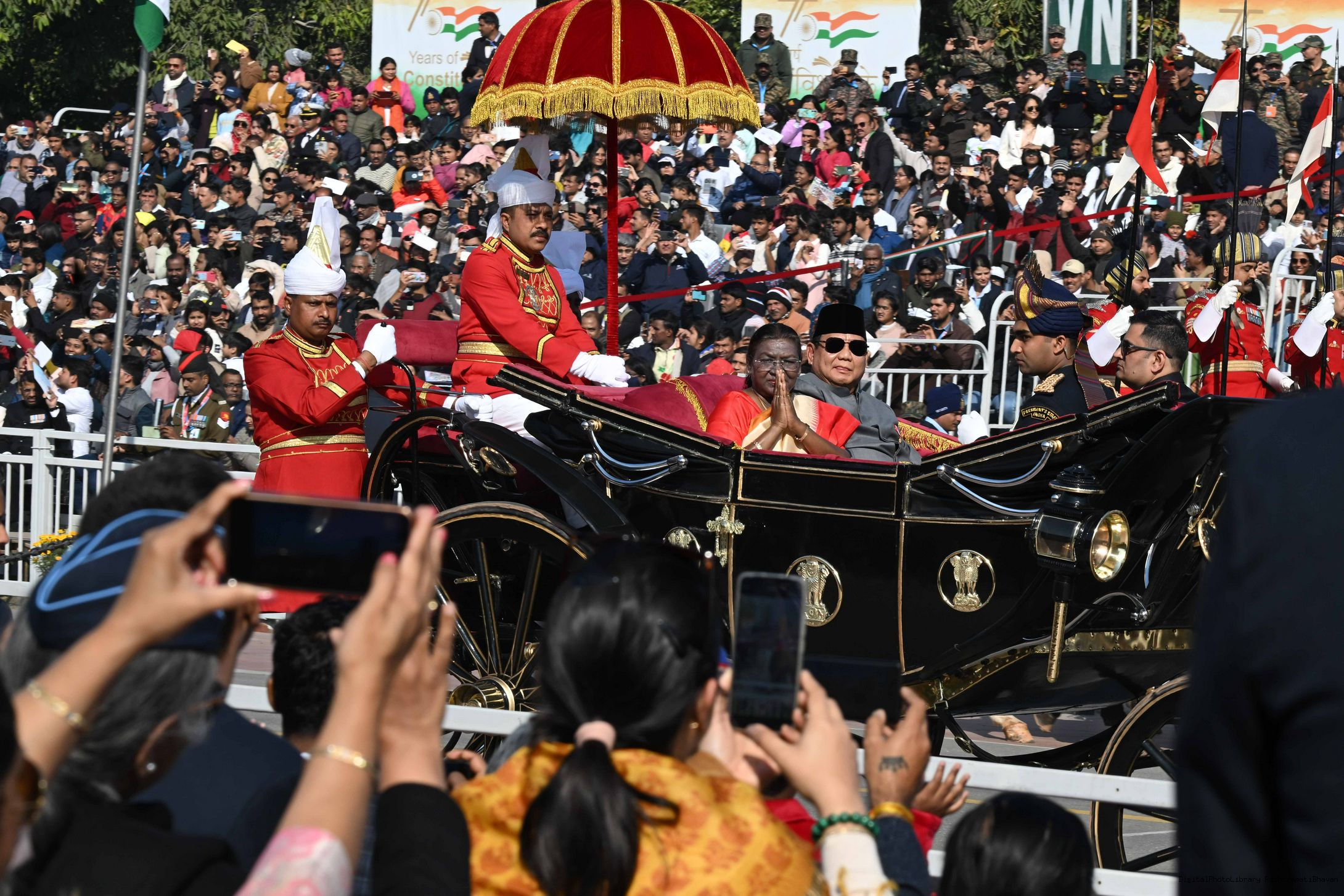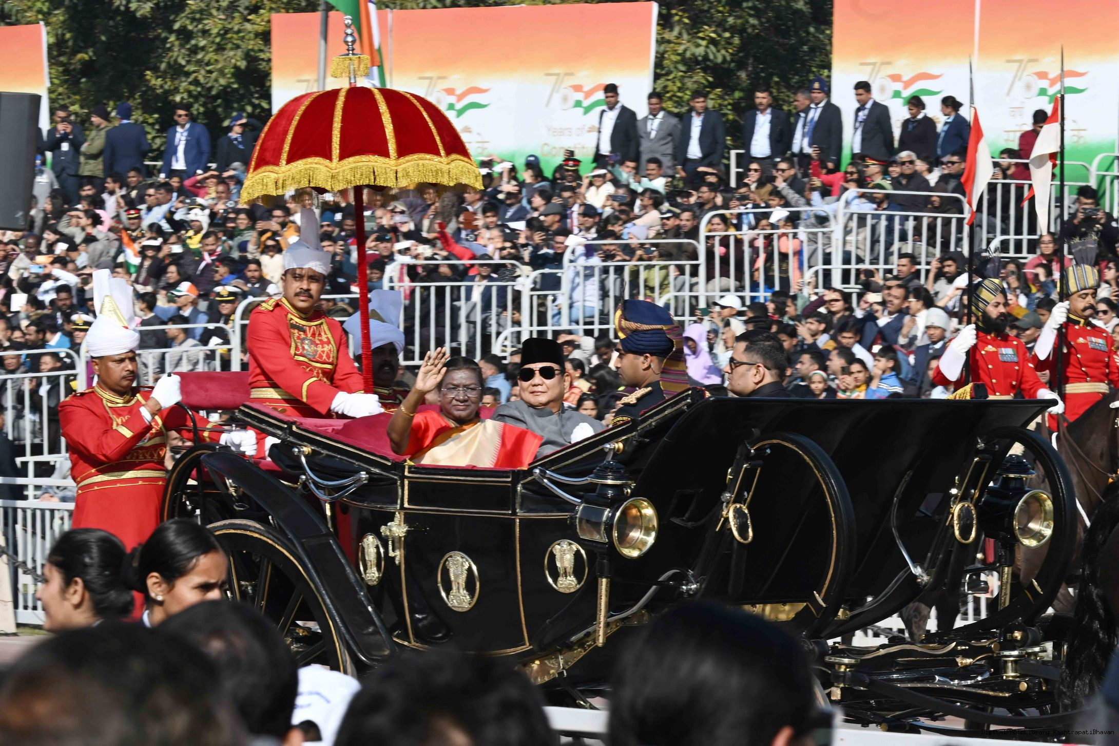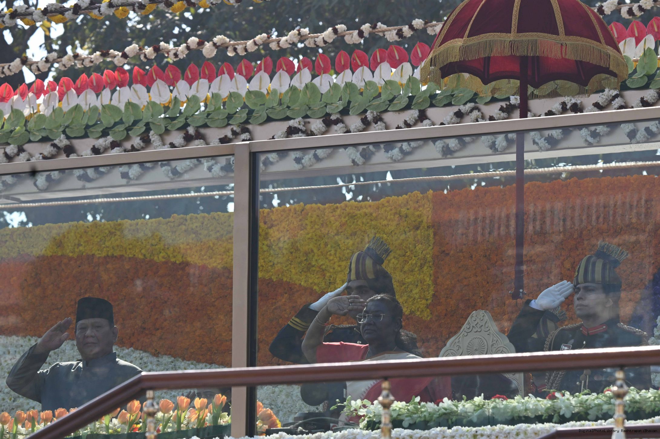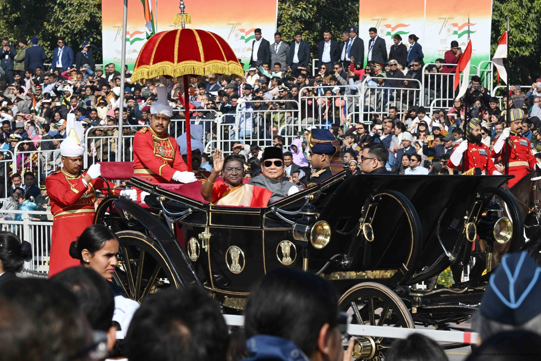 | Caption: | The President of India Smt. Droupadi Murmu and the Chief Guest of 76th Republic Day, the President H.E. Mr Prabowo Subianto of Indonesia, witnessed the Republic Day parade at Rajpath, in New Delhi on January 26, 2025. |