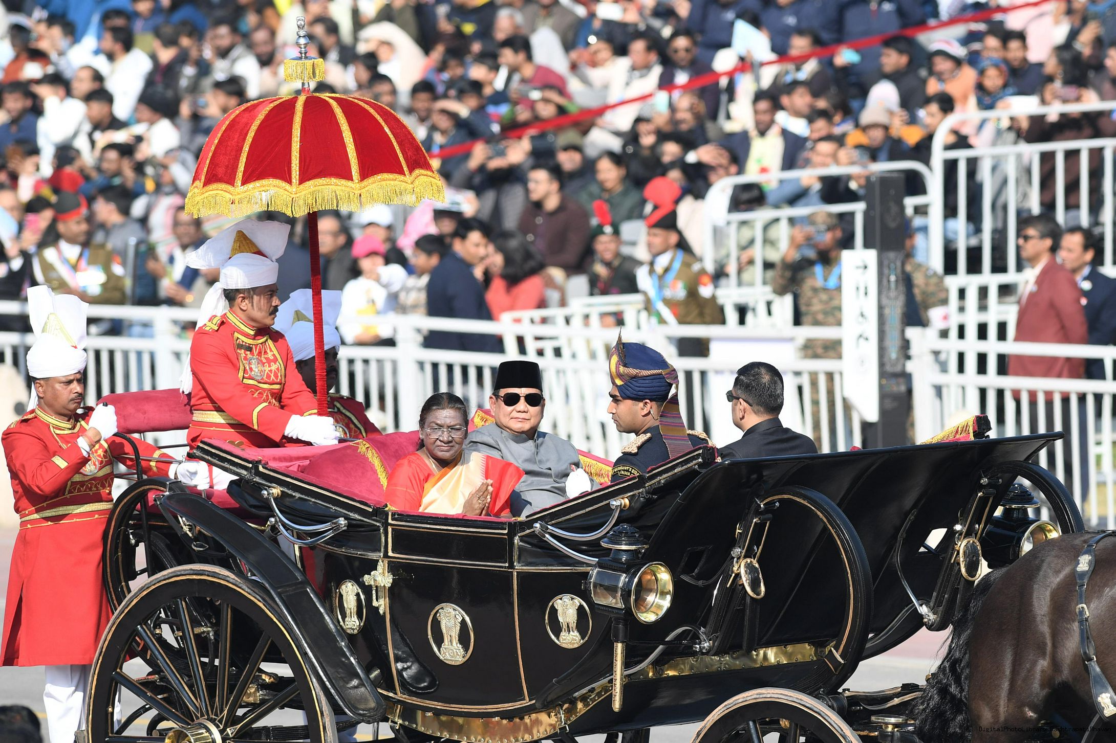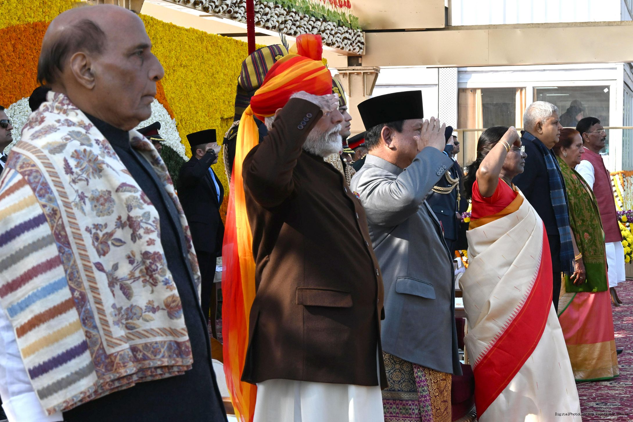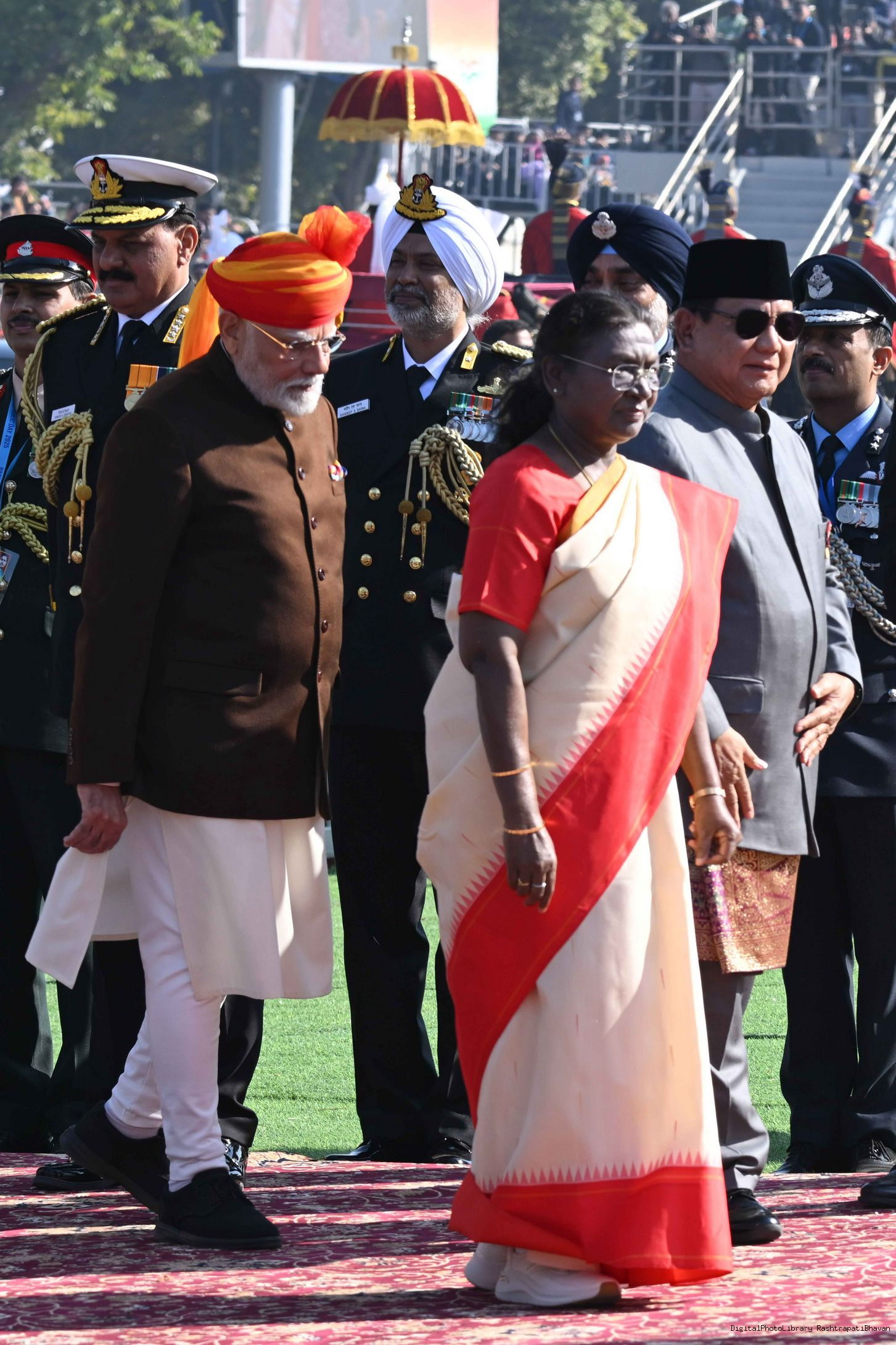 | Caption: | The President of India Smt. Droupadi Murmu and the Chief Guest of 76th Republic Day, the President H.E. Mr Prabowo Subianto of Indonesia, witnessed the Republic Day parade at Rajpath, in New Delhi on January 26, 2025. |