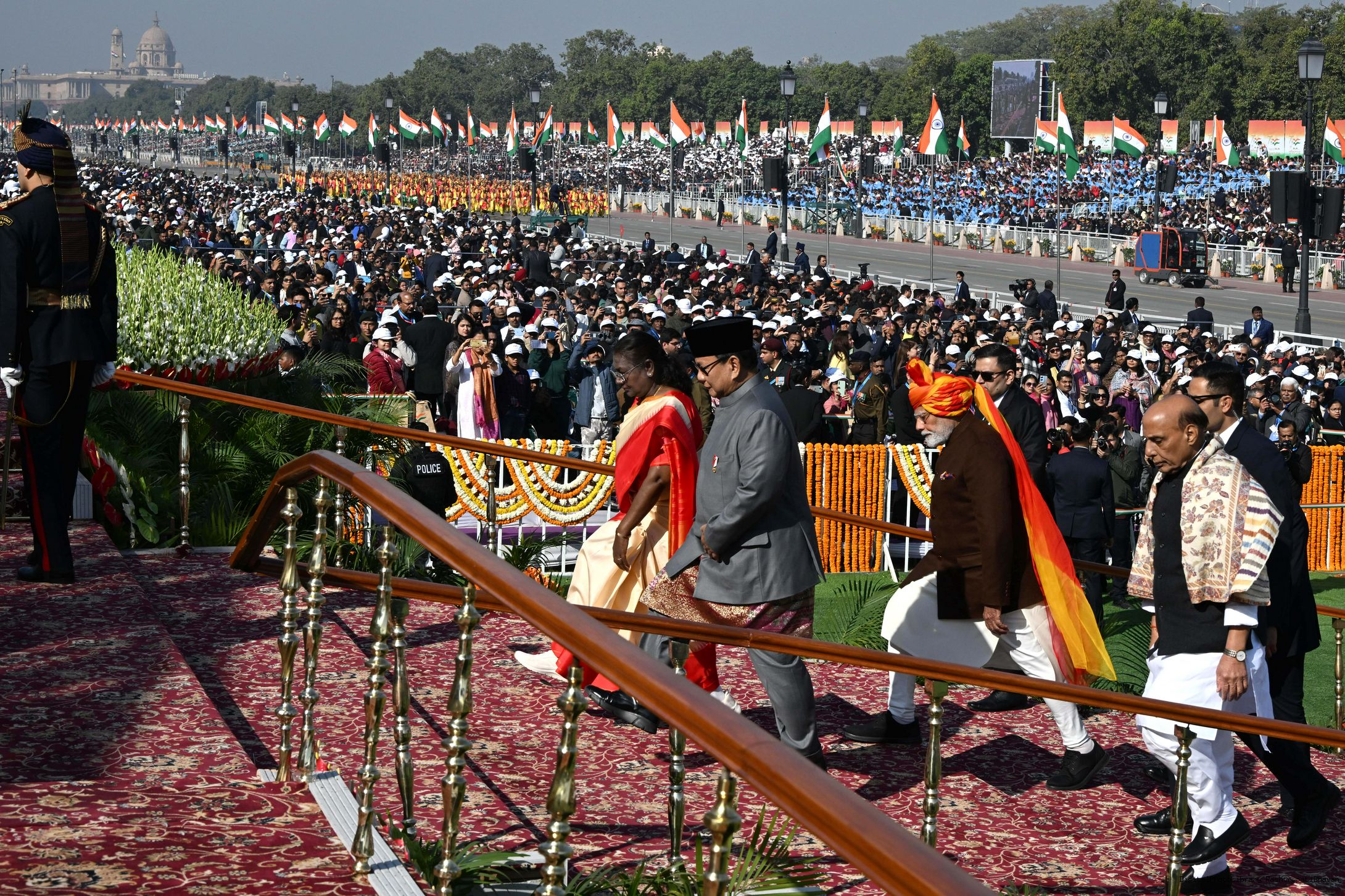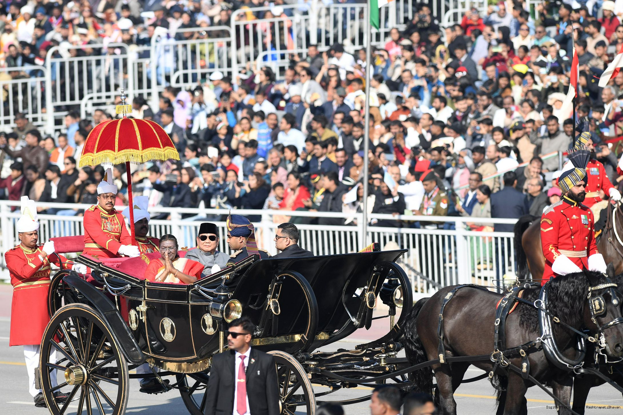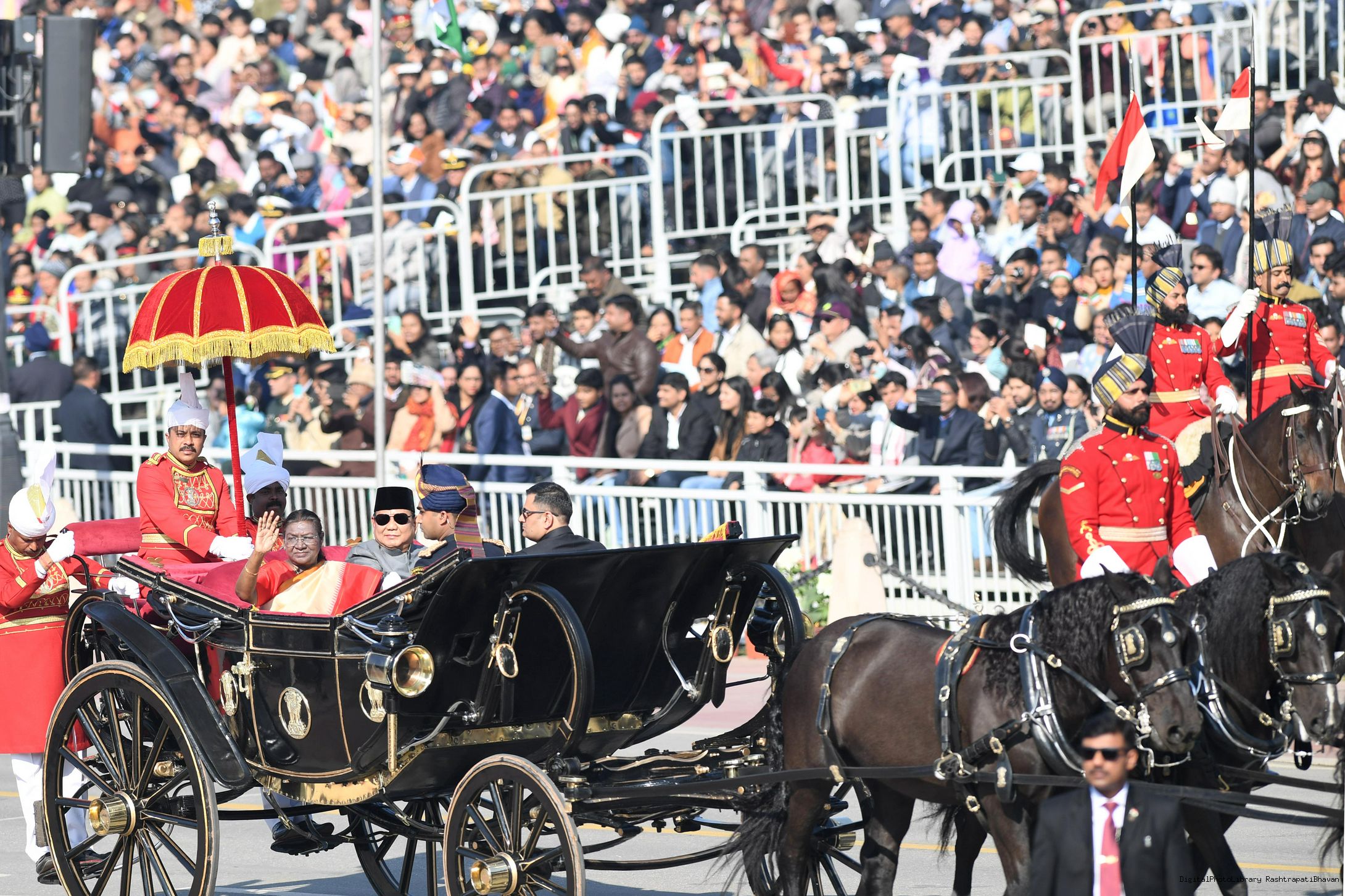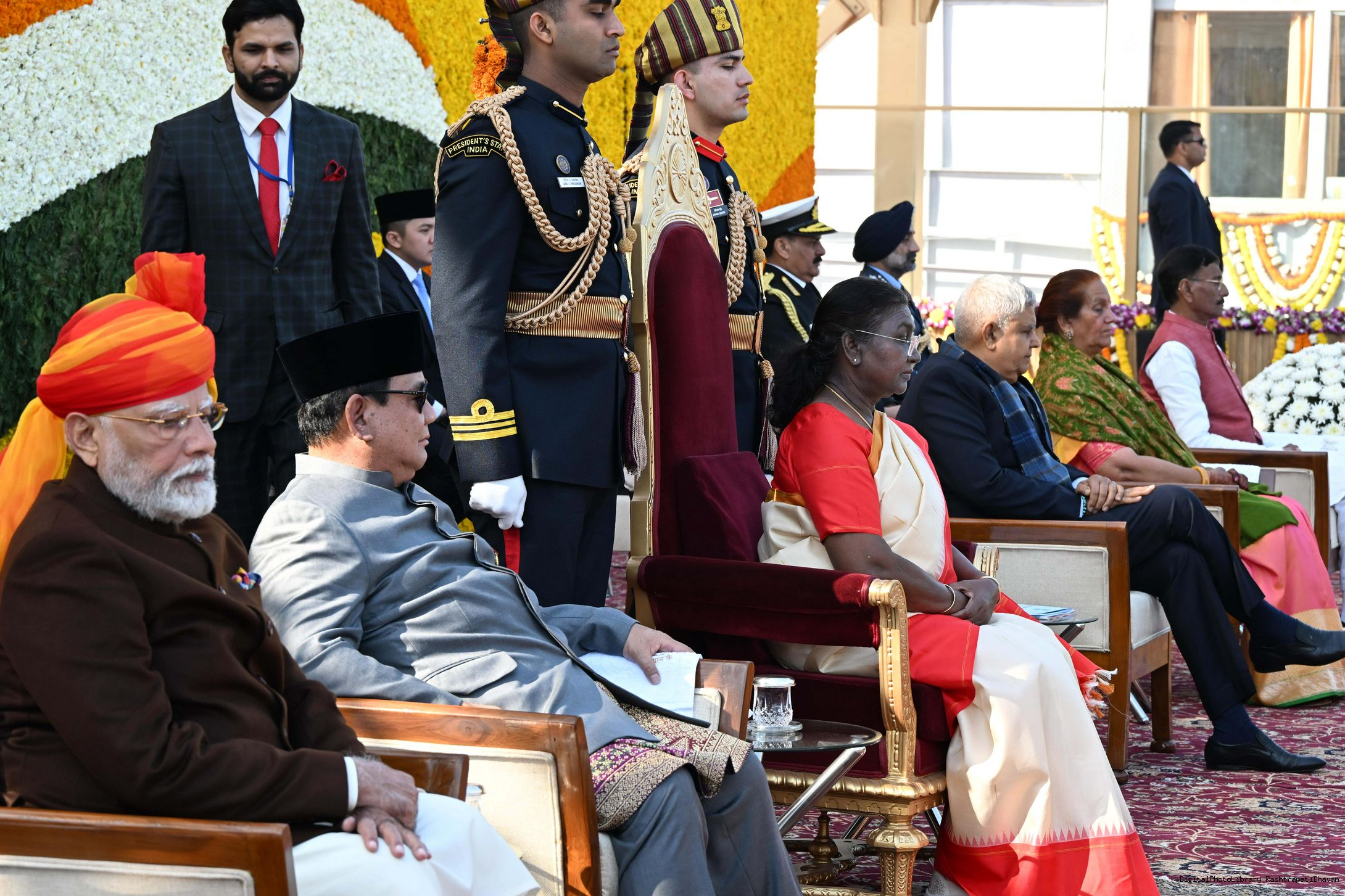 | Caption: | The President of India Smt. Droupadi Murmu and the Chief Guest of 76th Republic Day, the President H.E. Mr Prabowo Subianto of Indonesia, witnessed the Republic Day parade at Rajpath, in New Delhi on January 26, 2025. |