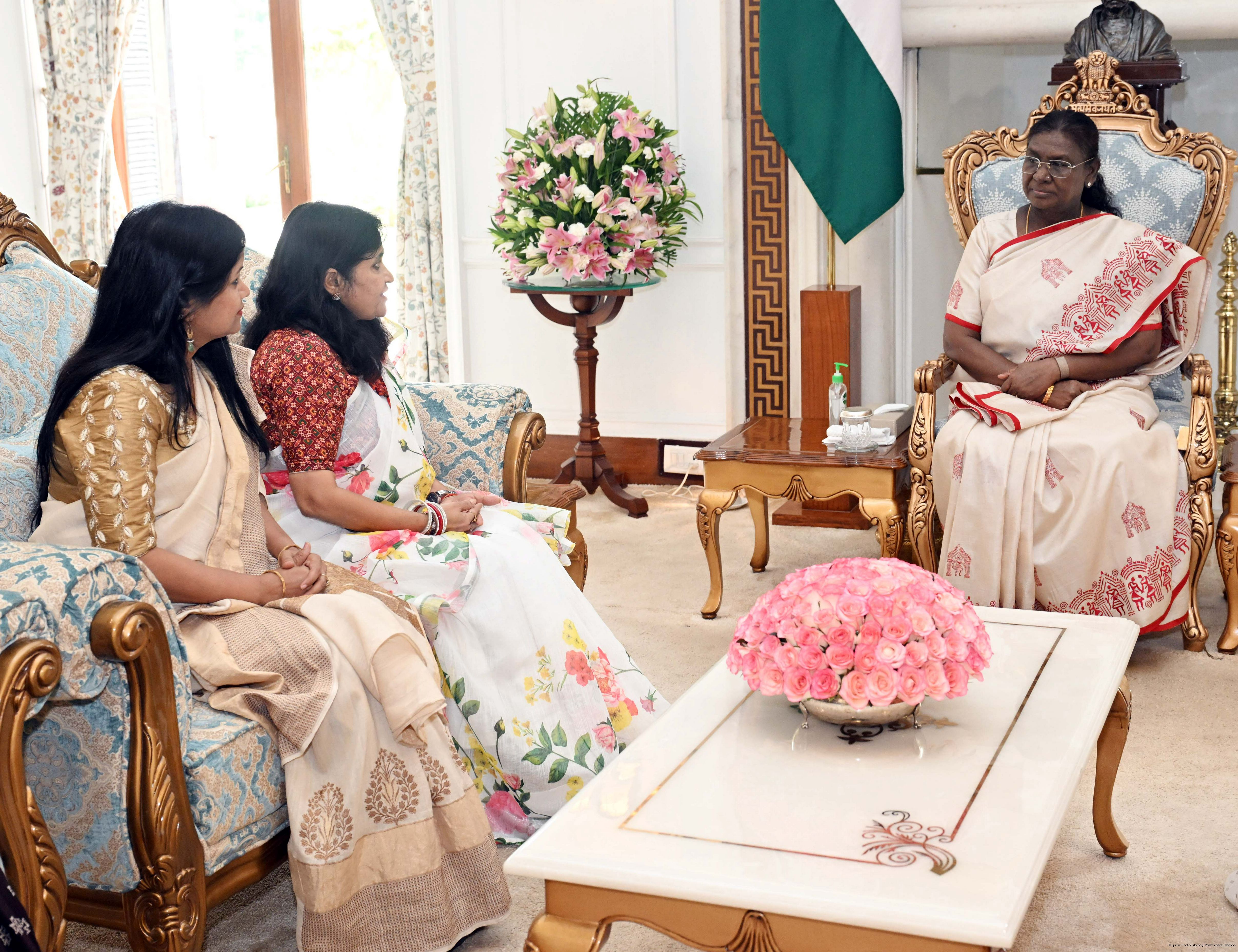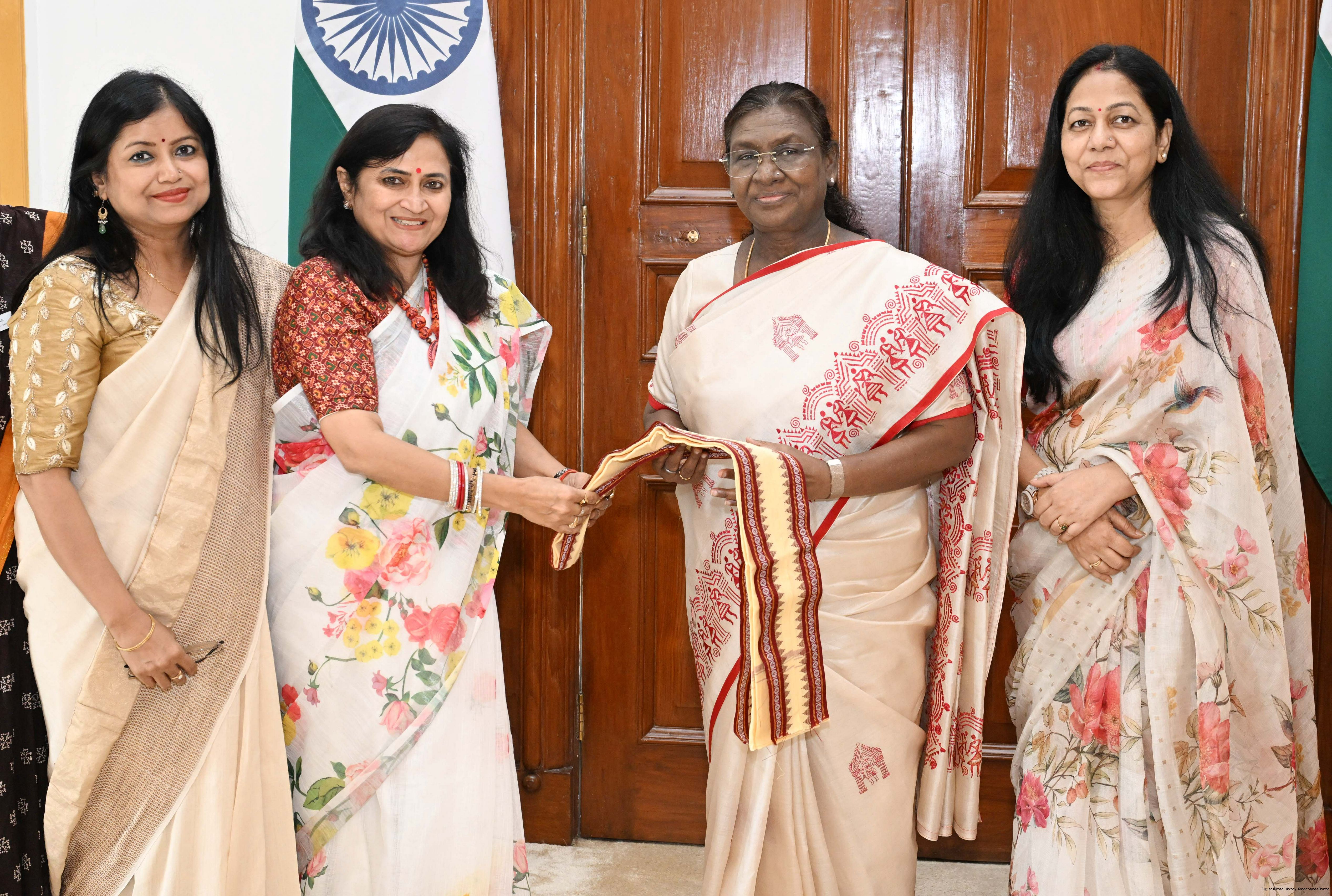 | Caption: | Dr. Rashmi Singh, President, Akanksha Samiti, Lucknow, UP, along with Smt. Pratibha Singh, and others meeting with the President of India, Smt Droupadi Murmu at Rashtrapati Bhavan on July 17, 2025. |