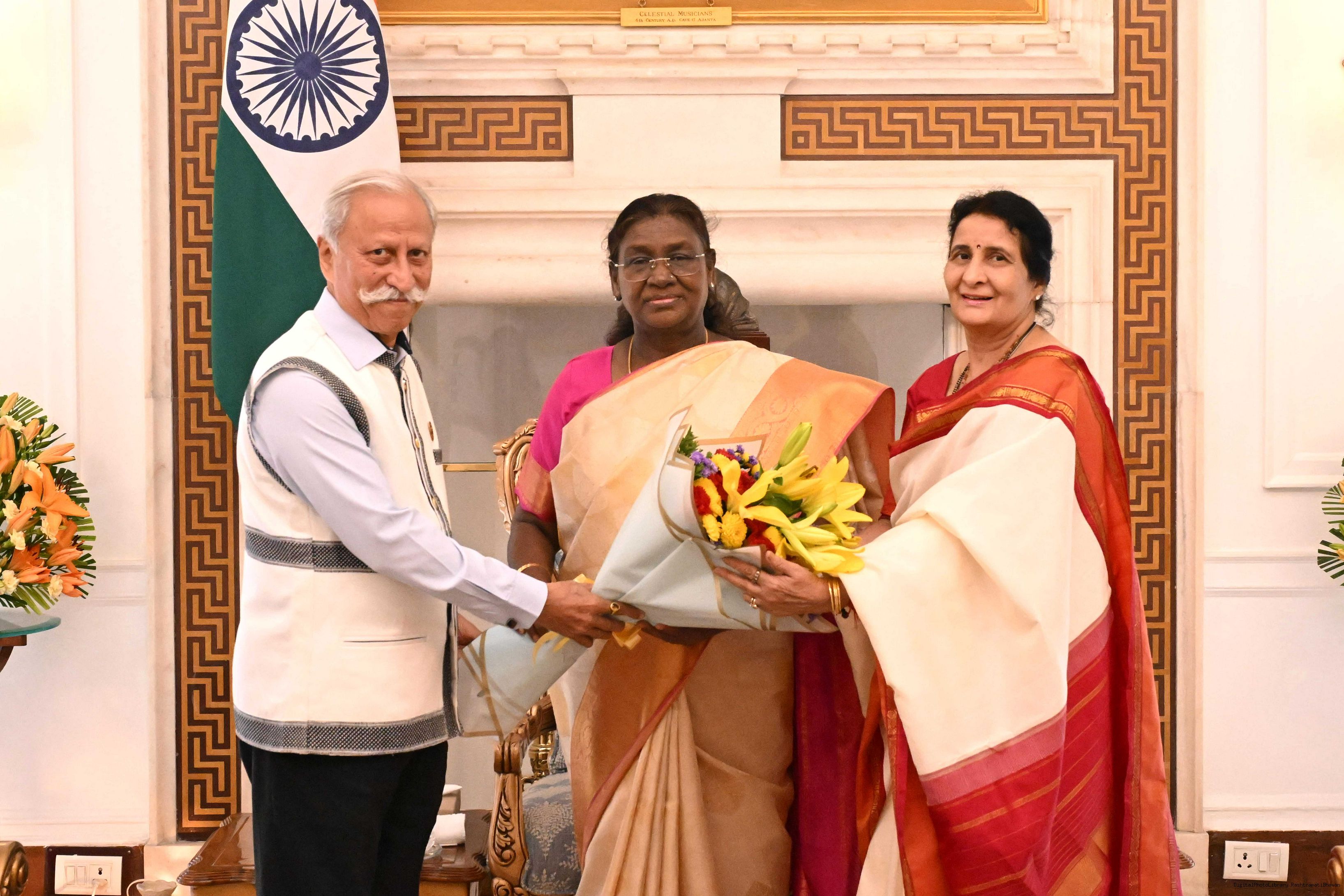 | Caption: | The Governor of Arunachal Pradesh, Lt General Kaiwalya Trivikram Parnaik (Retd), along with his wife, Smt. Anagha Parnaik called on the President of India, Smt Droupadi Murmu at Rashtrapati Bhavan |